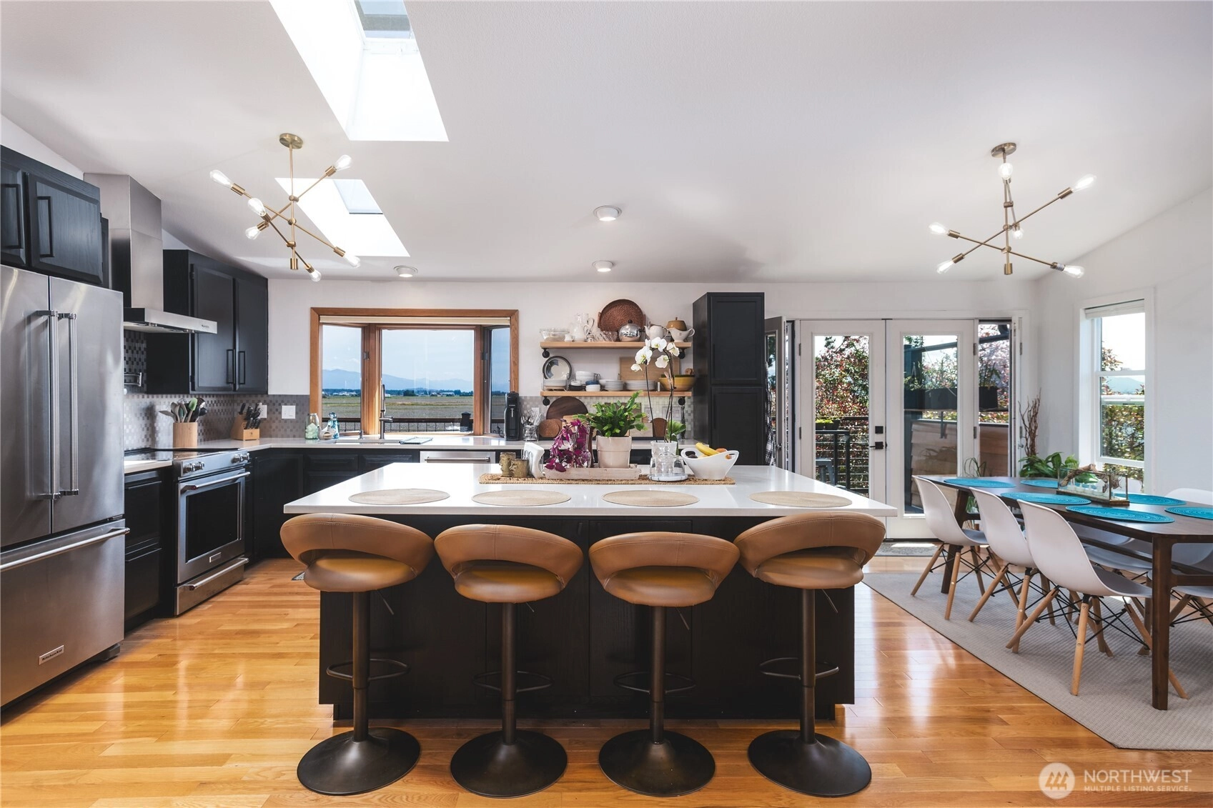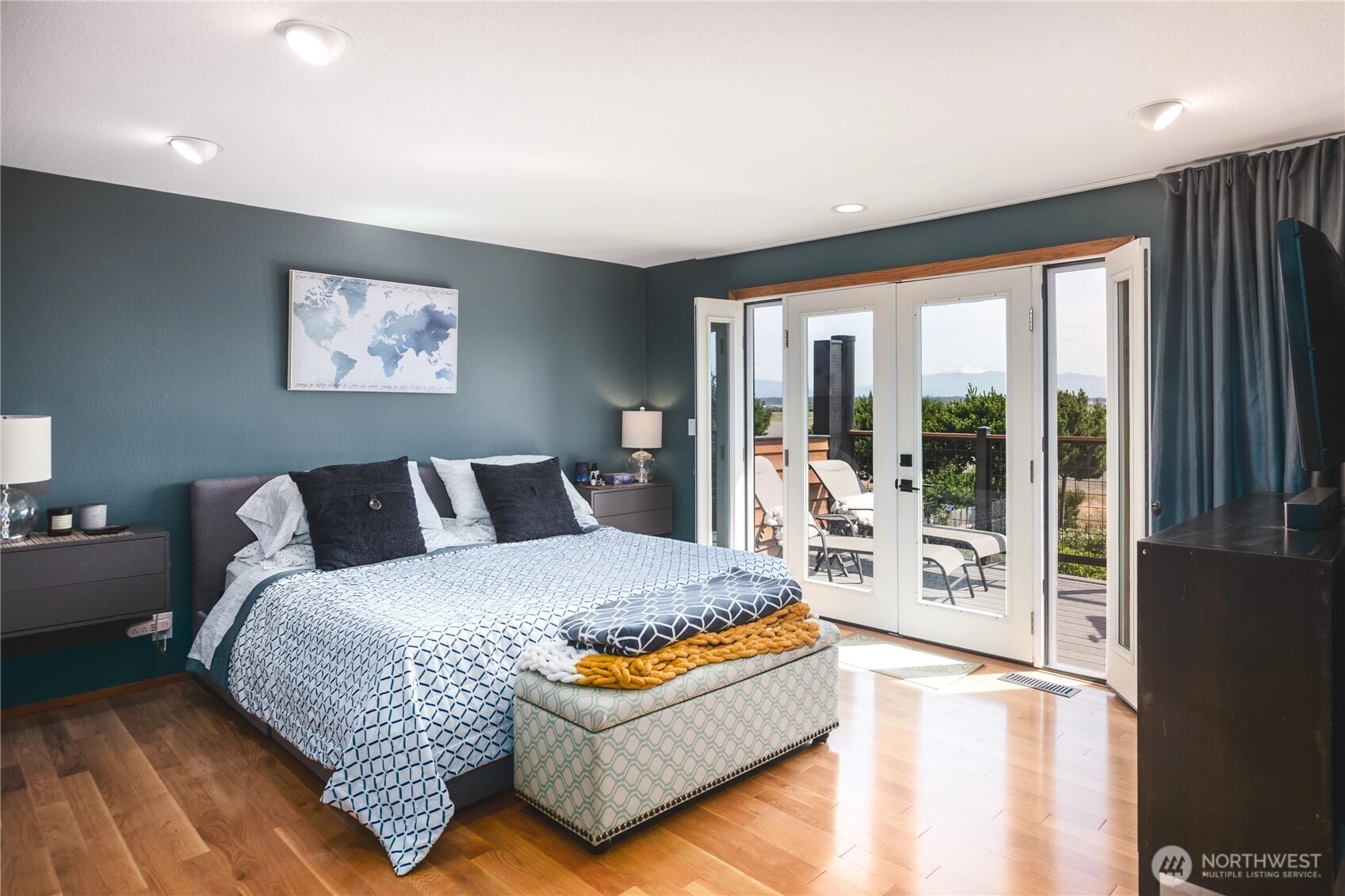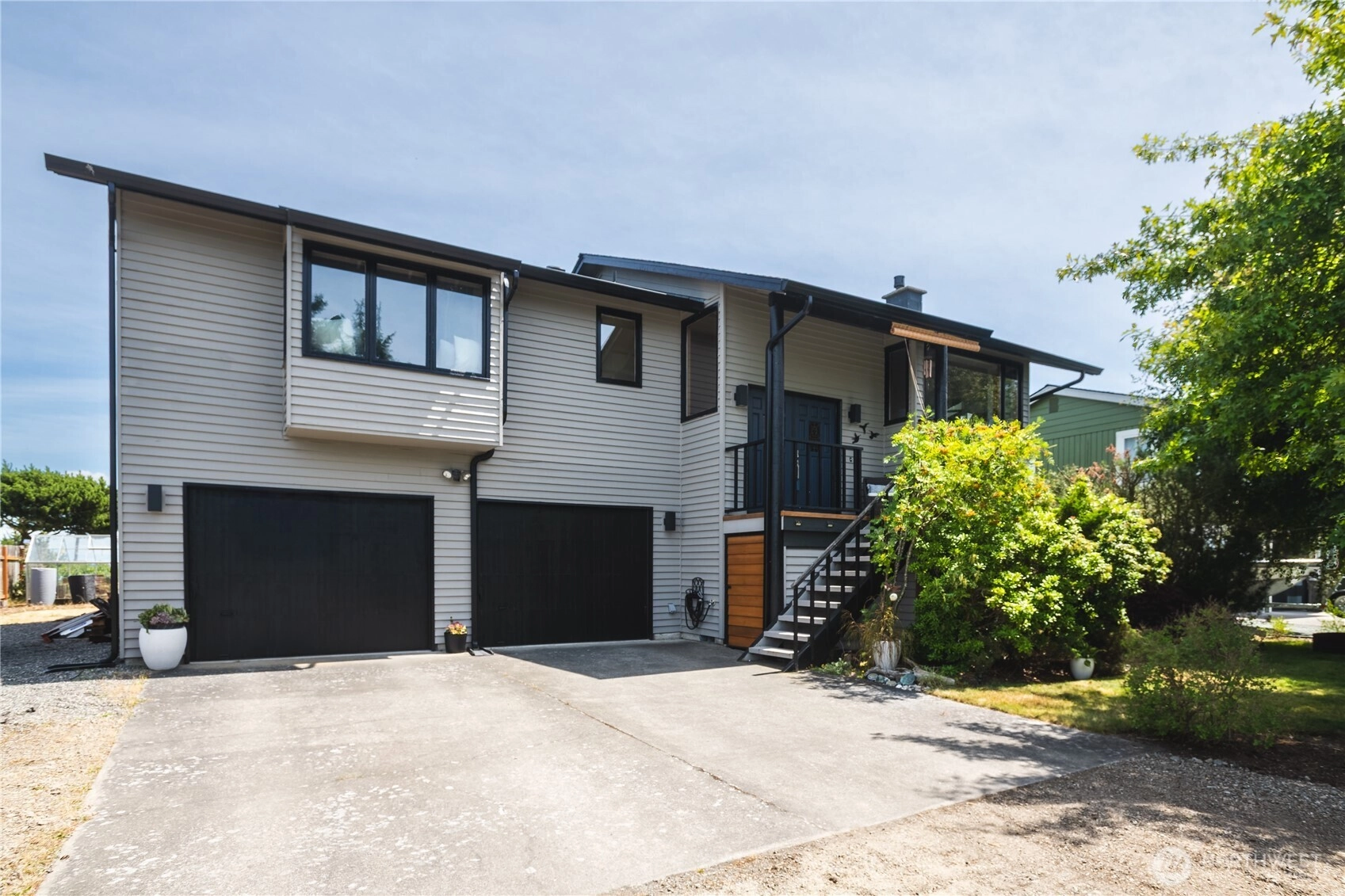 Beautifully updated home in desirable Skagit Beach nestled on a large lot between the Swinomish Channel & the quilted farmlands of Skagit County with views of majestic Mt. Baker. A welcoming entry leads to spacious, open living space, vaulted ceilings, kitchen with large island, wine frig, quartz counters, stainless appliances. Primary suite offers a spa-like feel w/soaking tub & walk-in shower. Take in the views from the expansive deck. An add'l bedroom and a full bath upstairs. Downstairs offers a bedroom, bath and utility room, plus family room w/gas fireplace. Walk out to the generous back yard with sundeck, greenhouse & garden space. RV Parking. Perfect for entertaining! Community beach access, boat ramp & RV parking. NOT leased land!