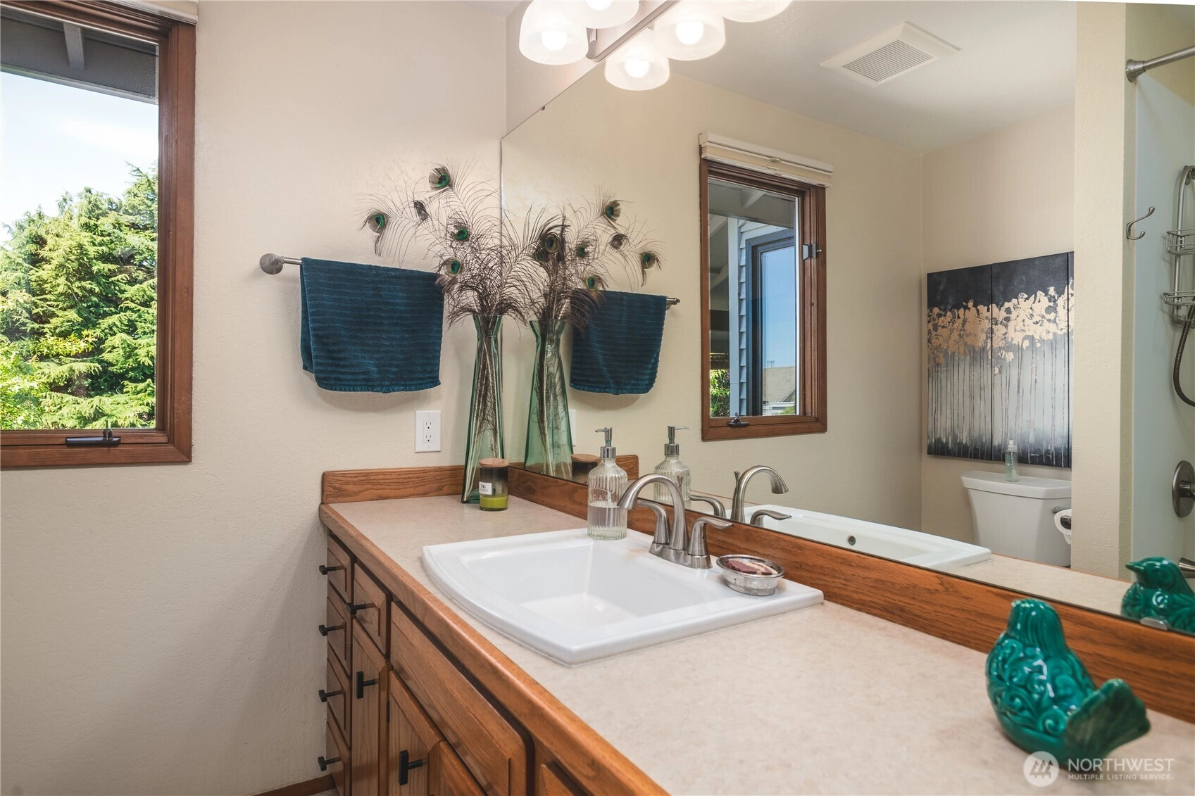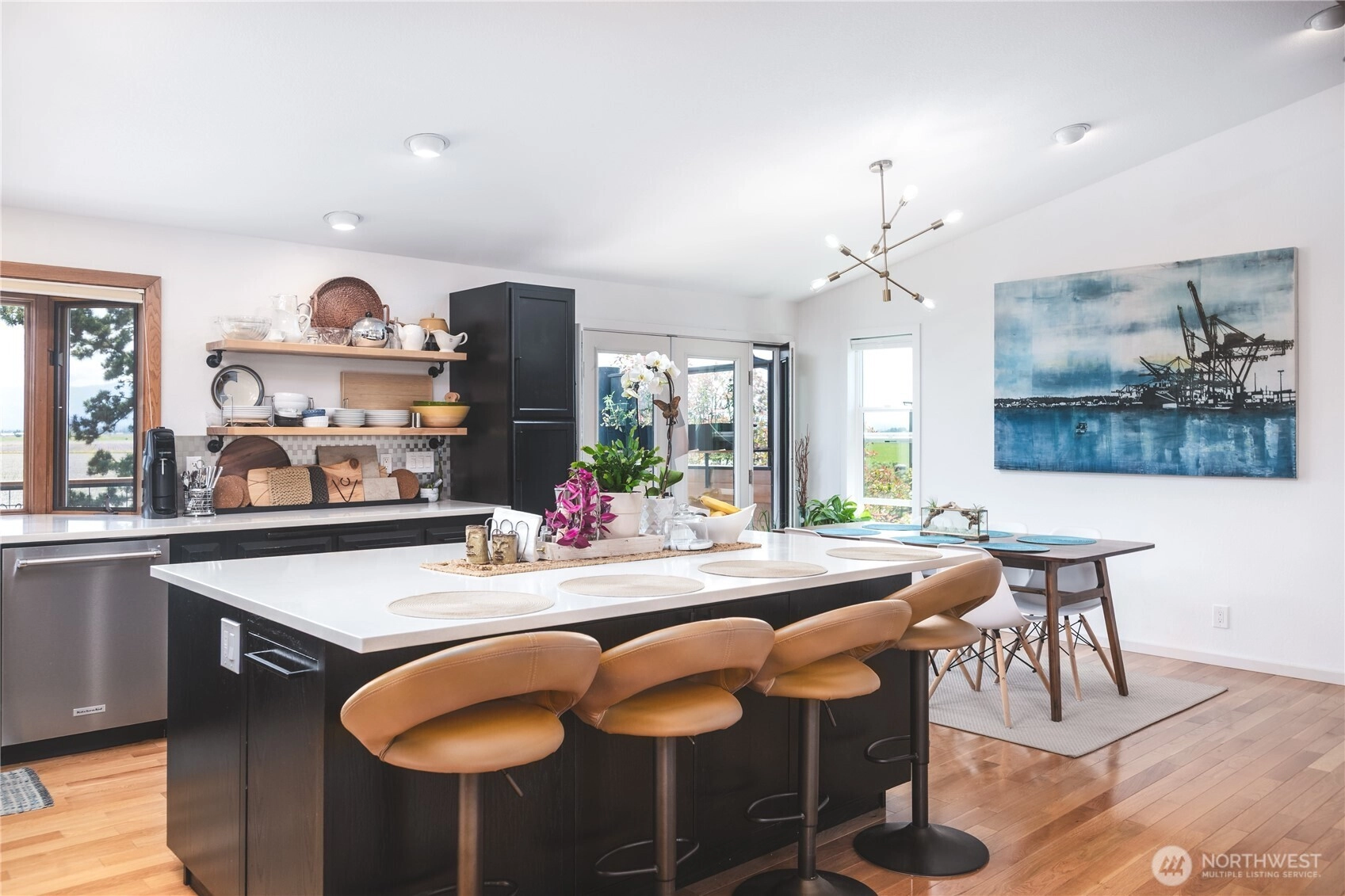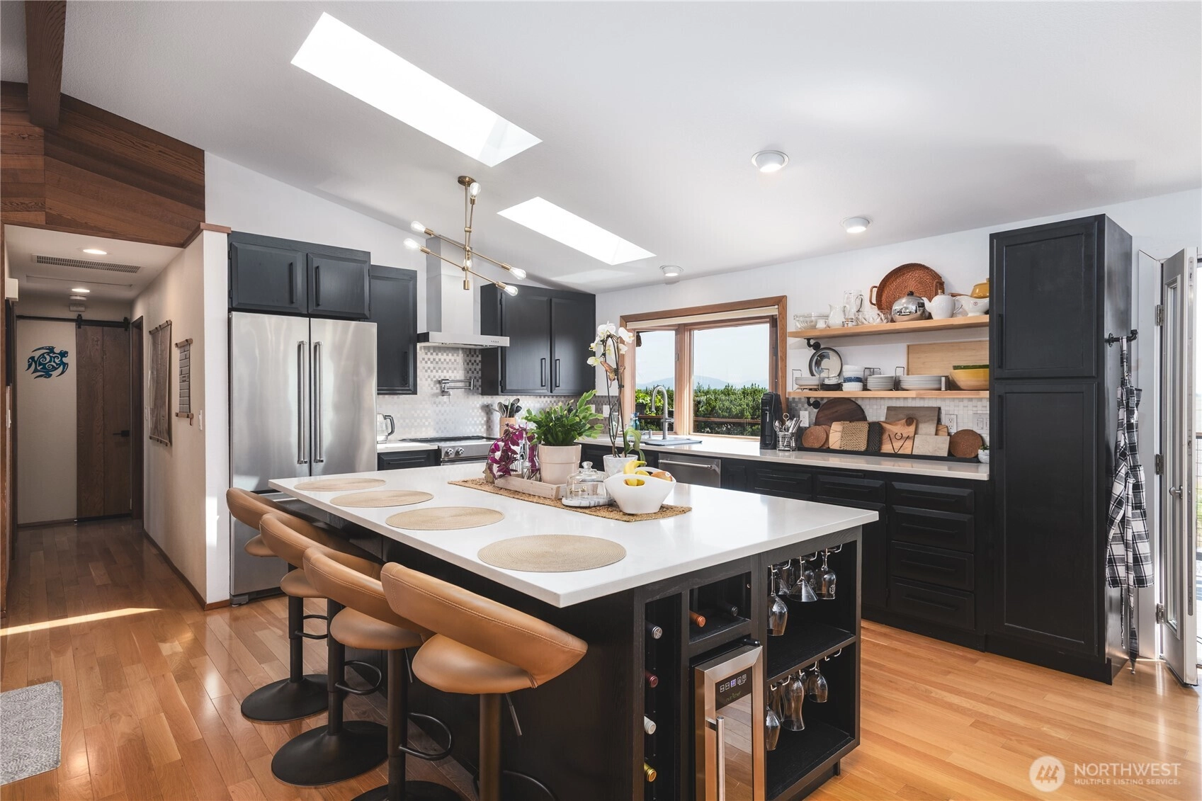 Beautifully updated home in desirable Skagit Beach nestled on a large lot between the Swinomish Channel & the quilted farmlands of Skagit County with views of majestic Mt. Baker. A welcoming entry leads to spacious, open living space, vaulted ceilings, kitchen with large island, wine frig, quartz counters, stainless appliances. Primary suite offers a spa-like feel w/soaking tub & walk-in shower. Take in the views from the expansive deck. An add'l bedroom and a full bath upstairs. Downstairs offers a bedroom, bath and utility room, plus family room w/gas fireplace. Walk out to the generous back yard with sundeck, greenhouse & garden space. RV Parking. Perfect for entertaining! Community beach access, boat ramp & RV parking. NOT leased land!