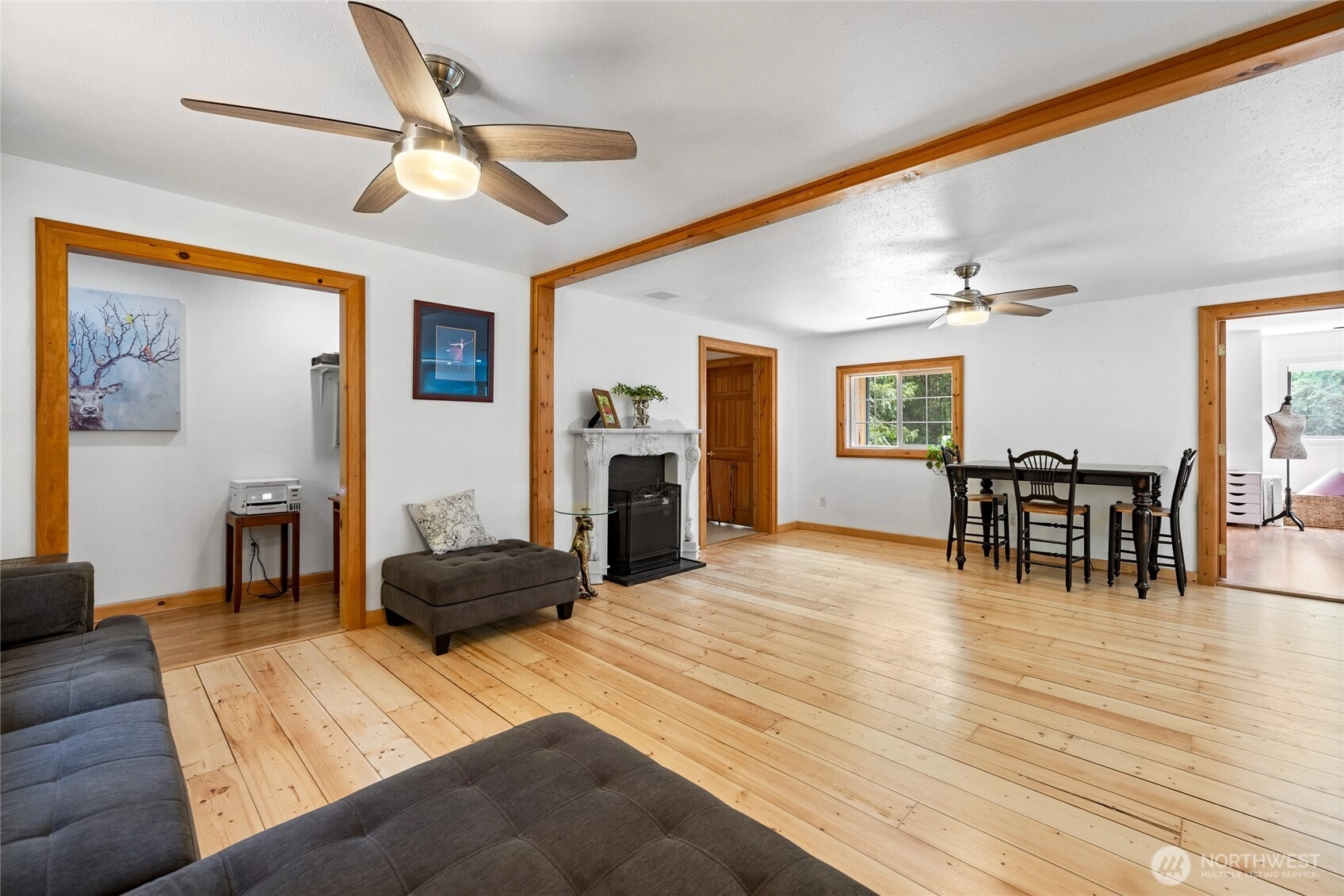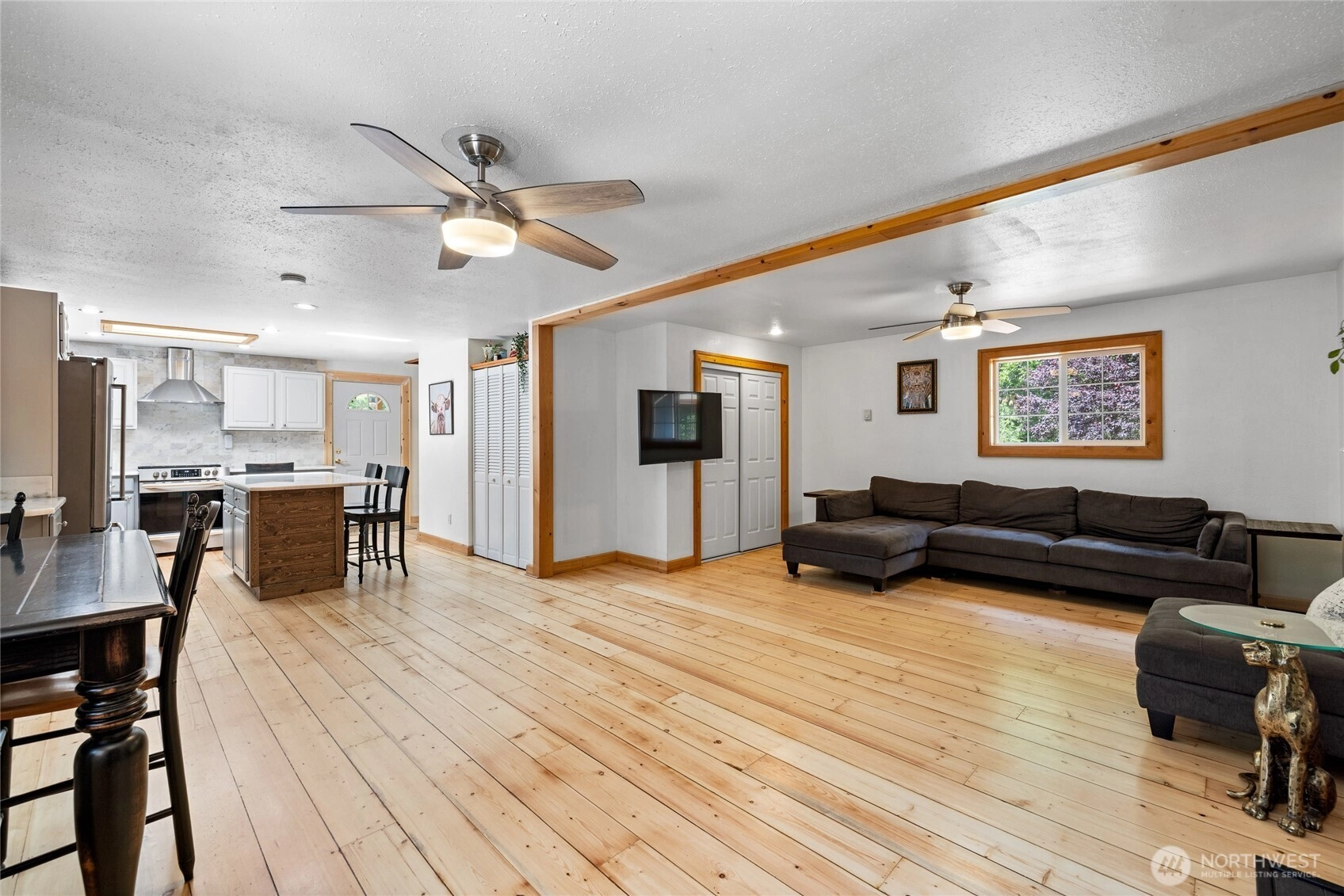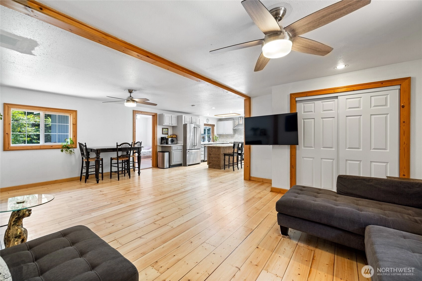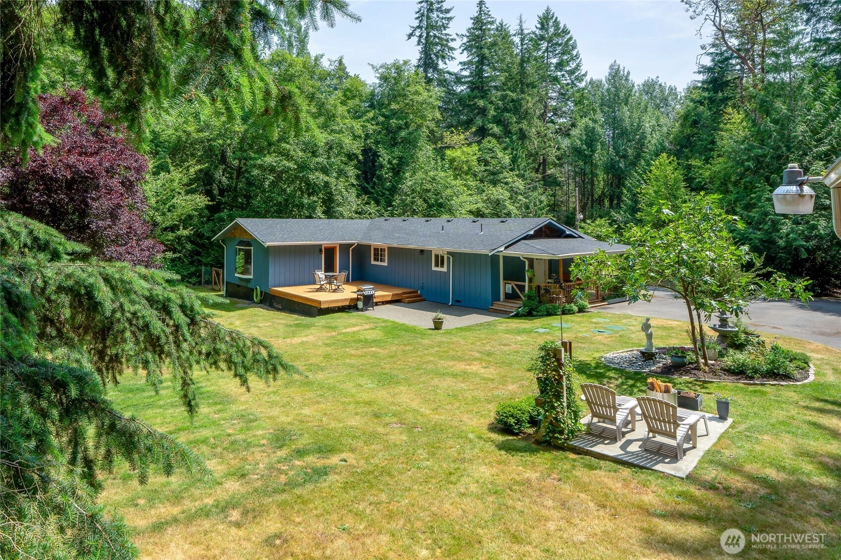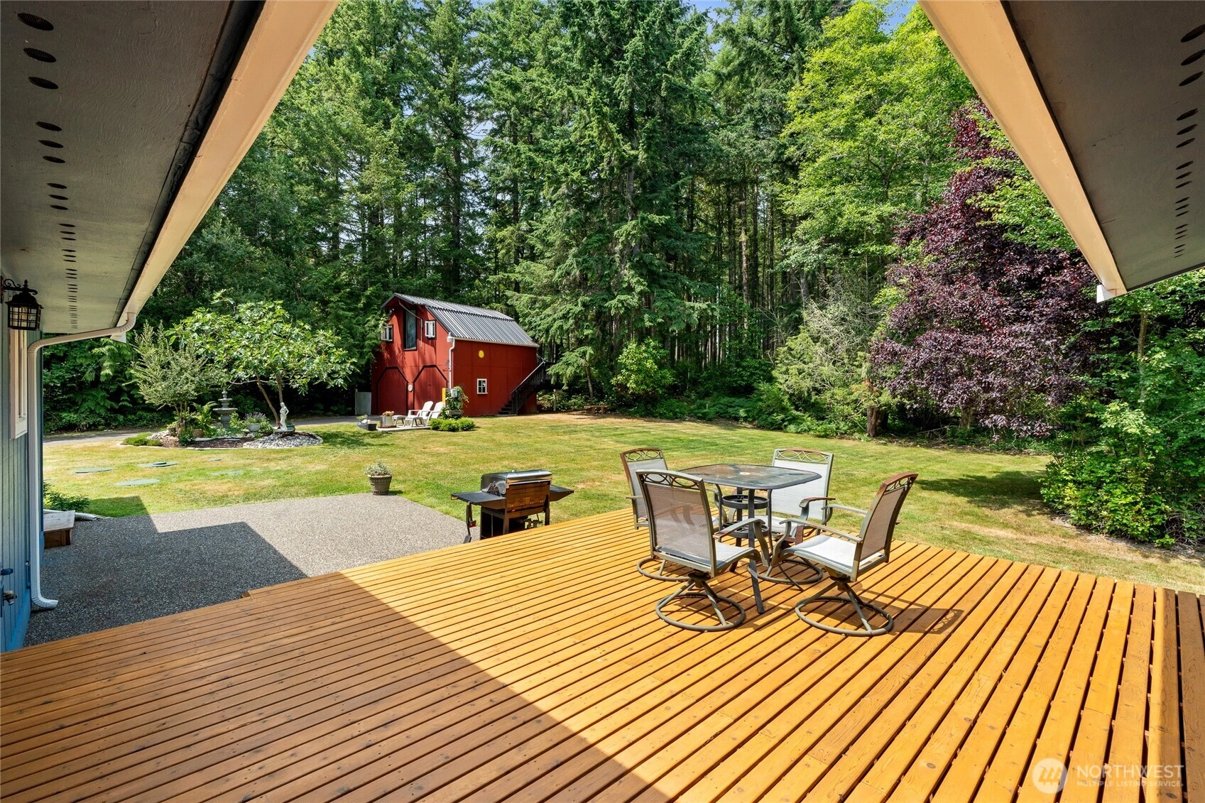 Welcome to your dream one-level rambler perfectly situated with space to breathe while being just minutes away from all your amenities. Home features freshly redone hardwood floors throughout providing an inviting atmosphere. Three extra-large bedrooms including primary suite complete with a brand-new updated bathroom. Plenty of room for relaxation and privacy. Poured cement foundation under deck allows for future expansion. Spacious open layout for privacy and comfort. Sitting on just over an acre the lot is partially fenced ideal for your furry friends. Office space or fun getaway above the barn for work or leisure. Host gatherings on the oversized private patio and deck. Home truly offers the best of both worlds space and convenience.