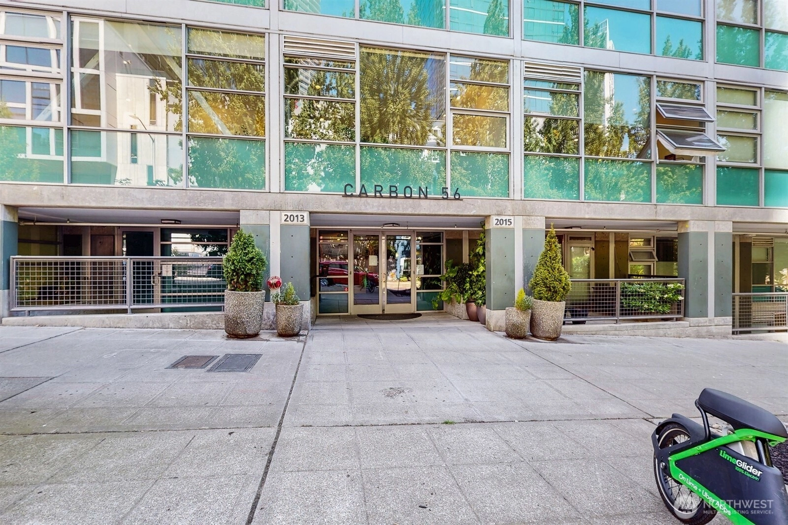 Experience refined loft-style living in this spacious open one-bedroom at Carbon 56. Set in the center of Denny Triangle, this modern industrial condo showcases dramatic high ceilings, exposed architectural details, and expansive windows overlooking a peaceful, tree-filled backdrop—an unexpected dose of green in the city. The adaptable floor plan easily accommodates everyday living, a home office, and entertaining, while the open kitchen features contemporary finishes and stainless steel appliances. Additional conveniences include in-unit laundry, secure garage parking, a fitness center, and the option to install an EV charger with HOA approval. With a near-perfect walk score and South Lake Union, Amazon, Whole Foods, and Light Rail just moments away, this home delivers effortless urban living.