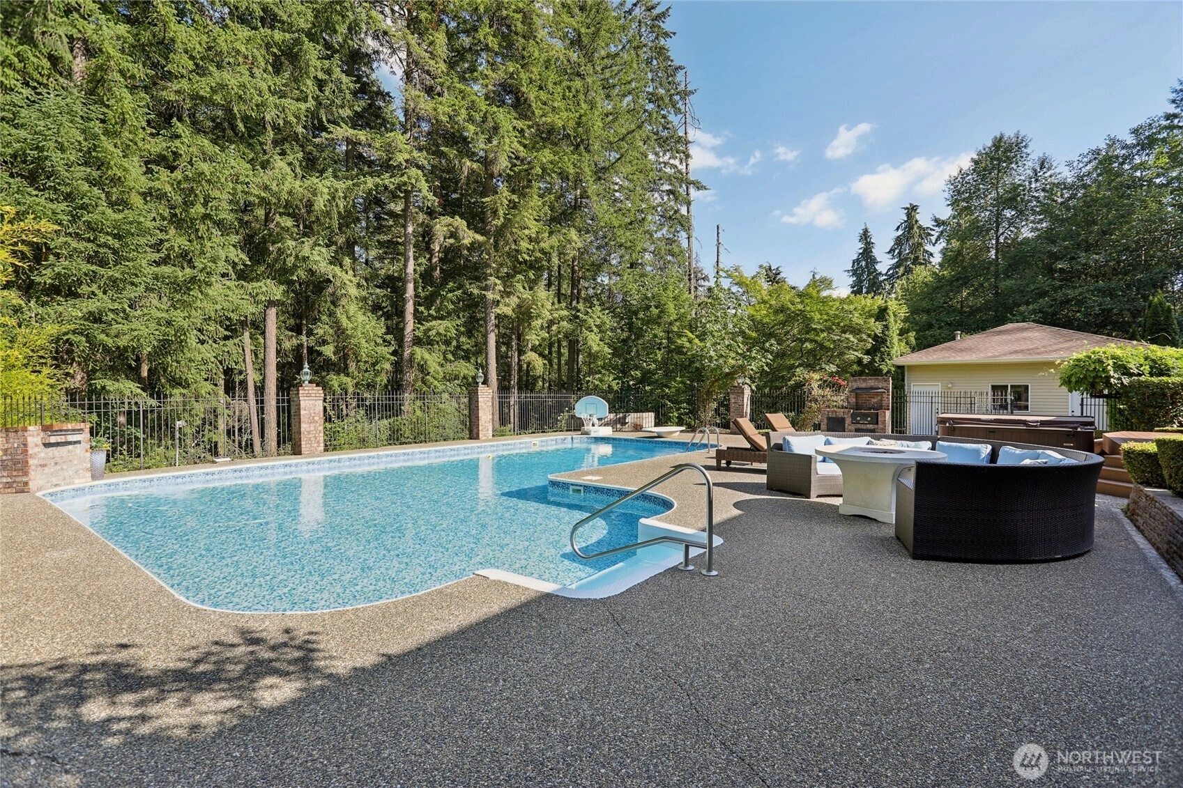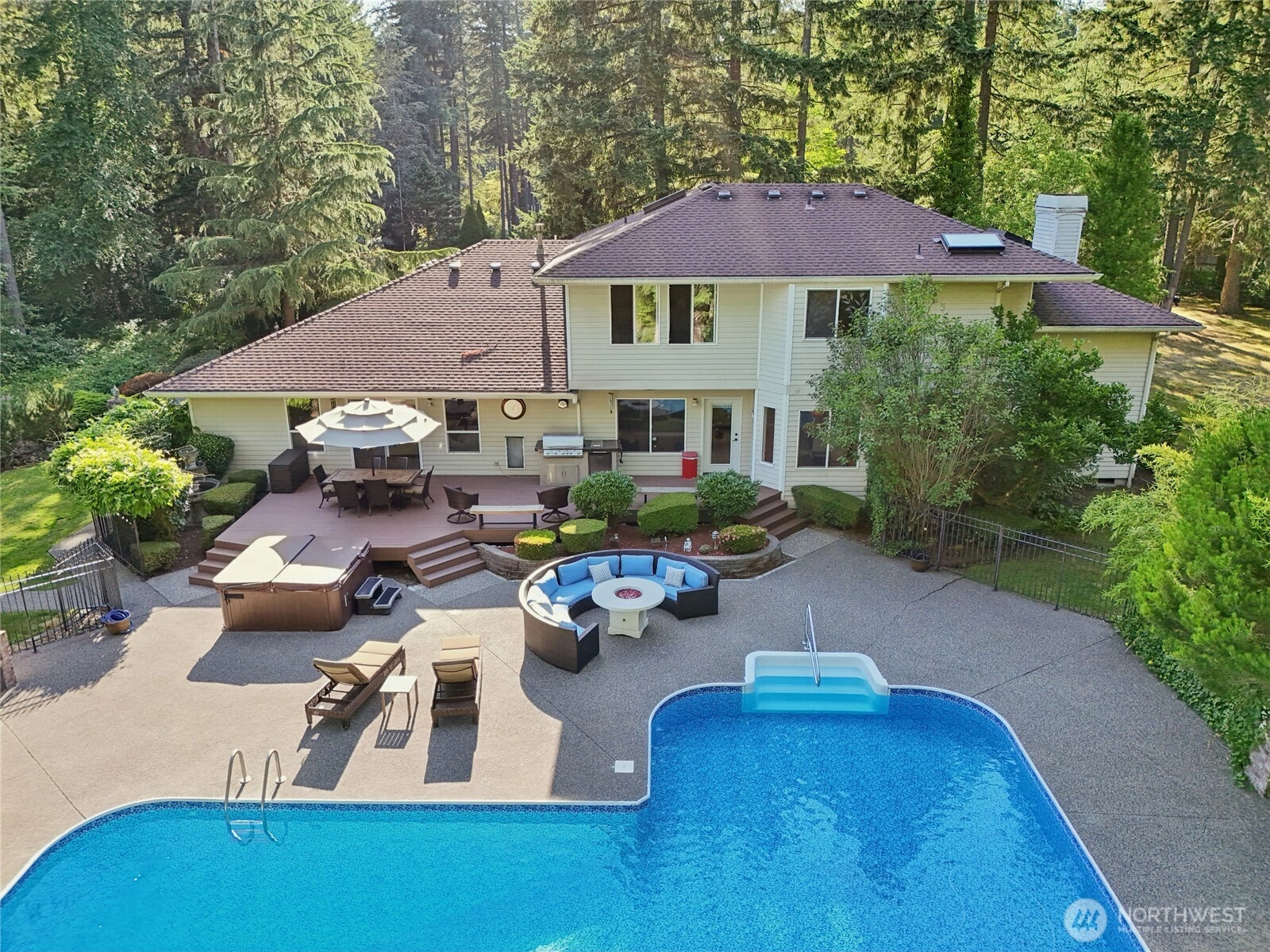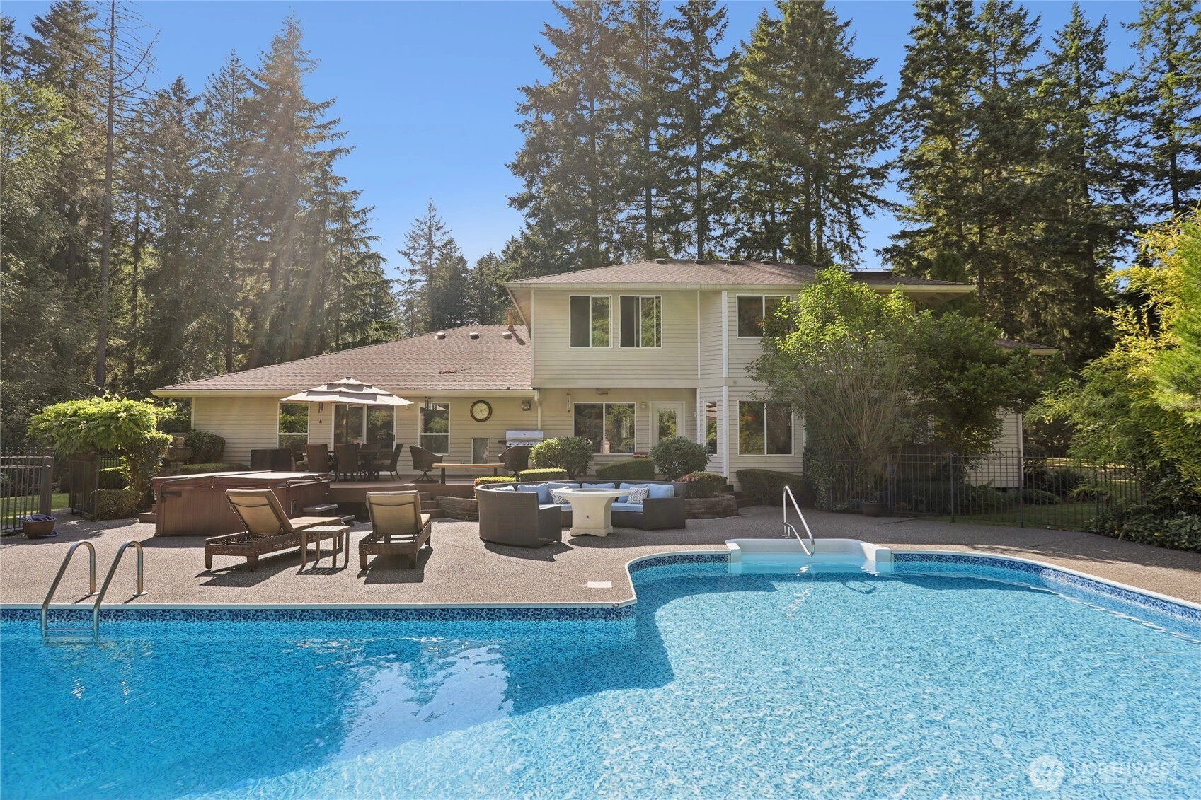 Welcome to this stunning custom estate nestled on a private 5-acre lot, offering seclusion, space & luxury. A long gated driveway leads to an impressive home featuring 4 bedrooms, custom flooring, designer lighting, spacious family room perfect for entertaining. The gourmet chef’s kitchen is equipped for culinary excellence. The primary suite includes spa-like bath w/jetted tub. Step outside to your own backyard paradise w/ a huge heated pool, waterfall feature +diving board. Enjoy expansive decking for all your outdoor furniture & gatherings. A heated pool house w/bathroom & ample storage adds function & convenience. The oversized 4+ car garage & new roof round out this incredible property. Too many upgrades to list—this one is a must see!