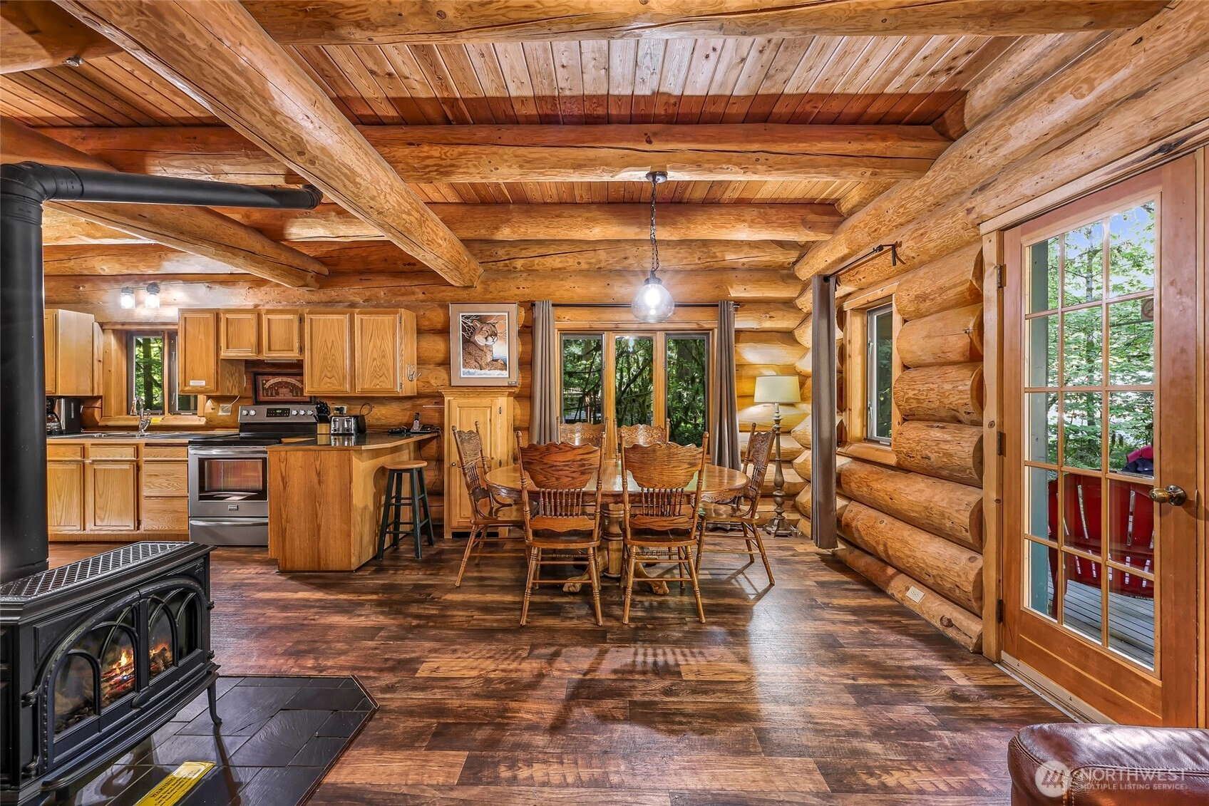 First time on the market, this log cabin is nestled in the tranquil foothills of Glacier. Come find comfort, privacy & a true Pacific Northwest lifestyle. Set on a generous lot surrounded by towering evergreens, the property features a large deck perfect for relaxing or entertaining. Inside, you'll find a warm, tongue & groove pine interior with an efficient layout, a wood-burning stove for those chilly mountain evenings & plenty of natural light. Just steps away from the amenity center & Chair 9, this is a convenient base for outdoor adventures including hiking, skiing & fishing. Whether you're looking for a full-time residence, vacation home, or investment opportunity, this meticulously maintained mountain hideaway is full of potential.