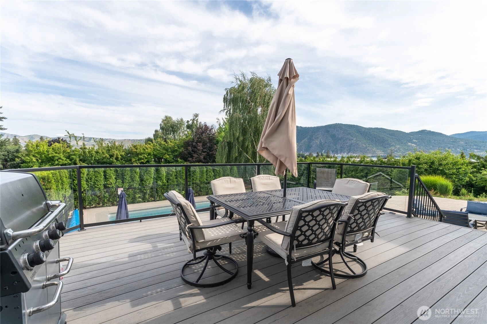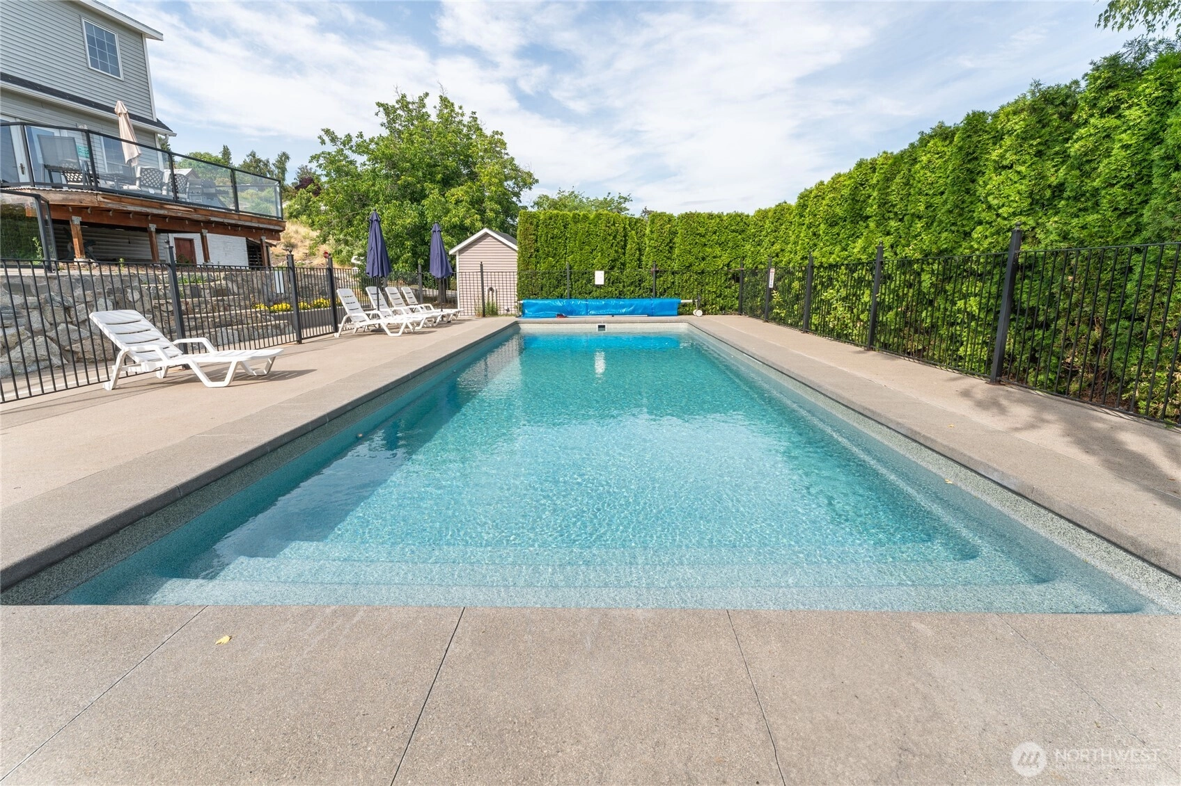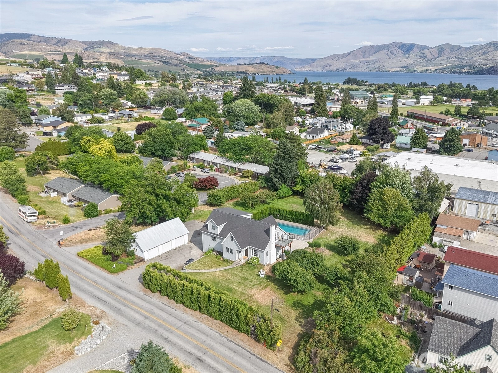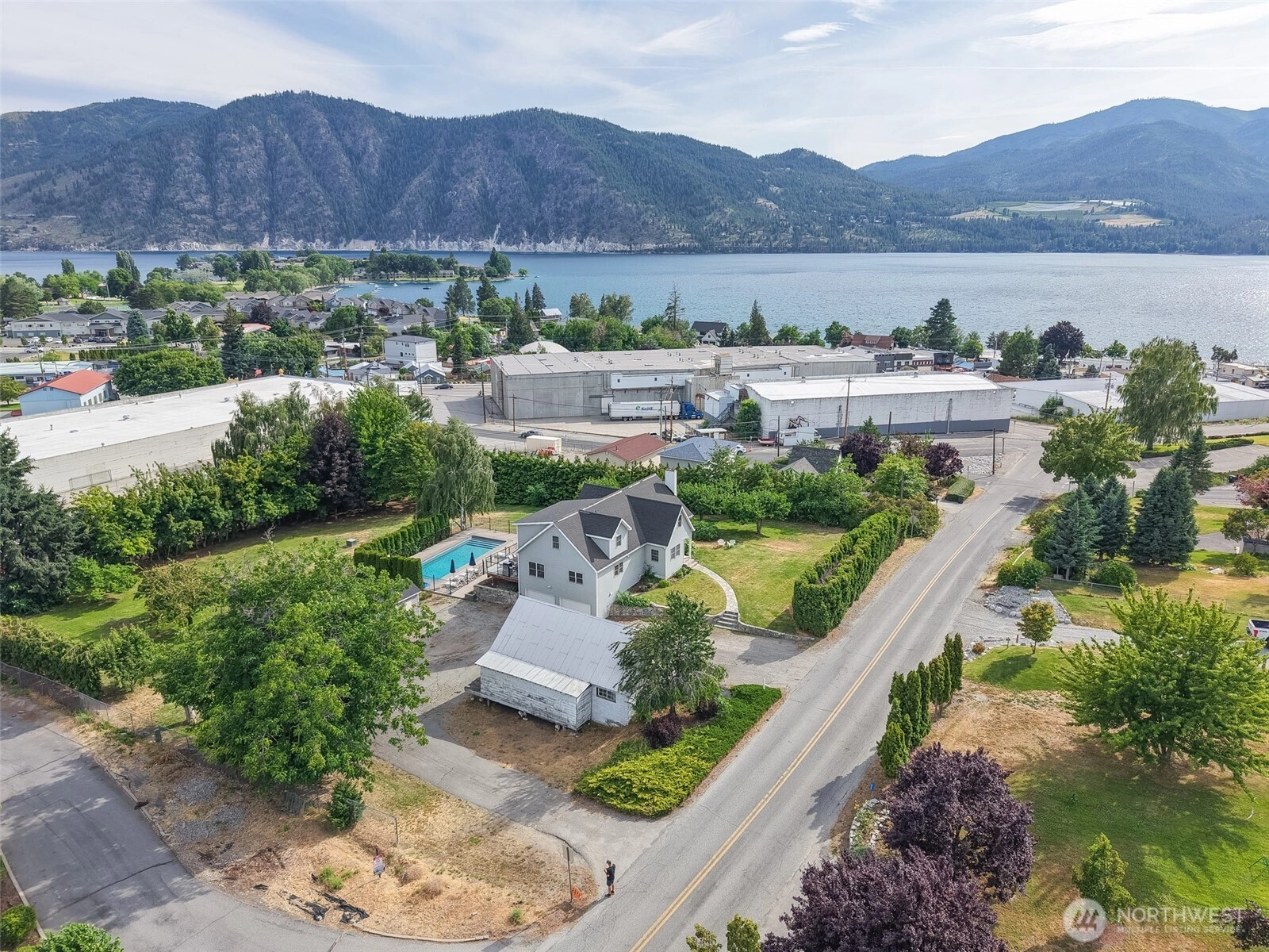 Beautifully appointed 1+ acre property just a short walk to downtown Manson and Lake Chelan! This fully furnished, turn-key home offers comfort, privacy, and luxury with a spacious master suite featuring a jetted tub and a custom body spray shower system. Original hardwood floors add timeless charm, while the expansive new patio and deck—over 1,000 sq ft—are perfect for outdoor living and entertaining. Take in stunning lake views from the private bedroom balcony or relax by the heated pool, safely enclosed with an elegant iron fence. The property includes a 3-car shop, 2-car garage, irrigation, fruit trees, and a privacy hedge. Zoned UR3, offering subdivision potential. Ideal as a personal retreat or investment opportunity!