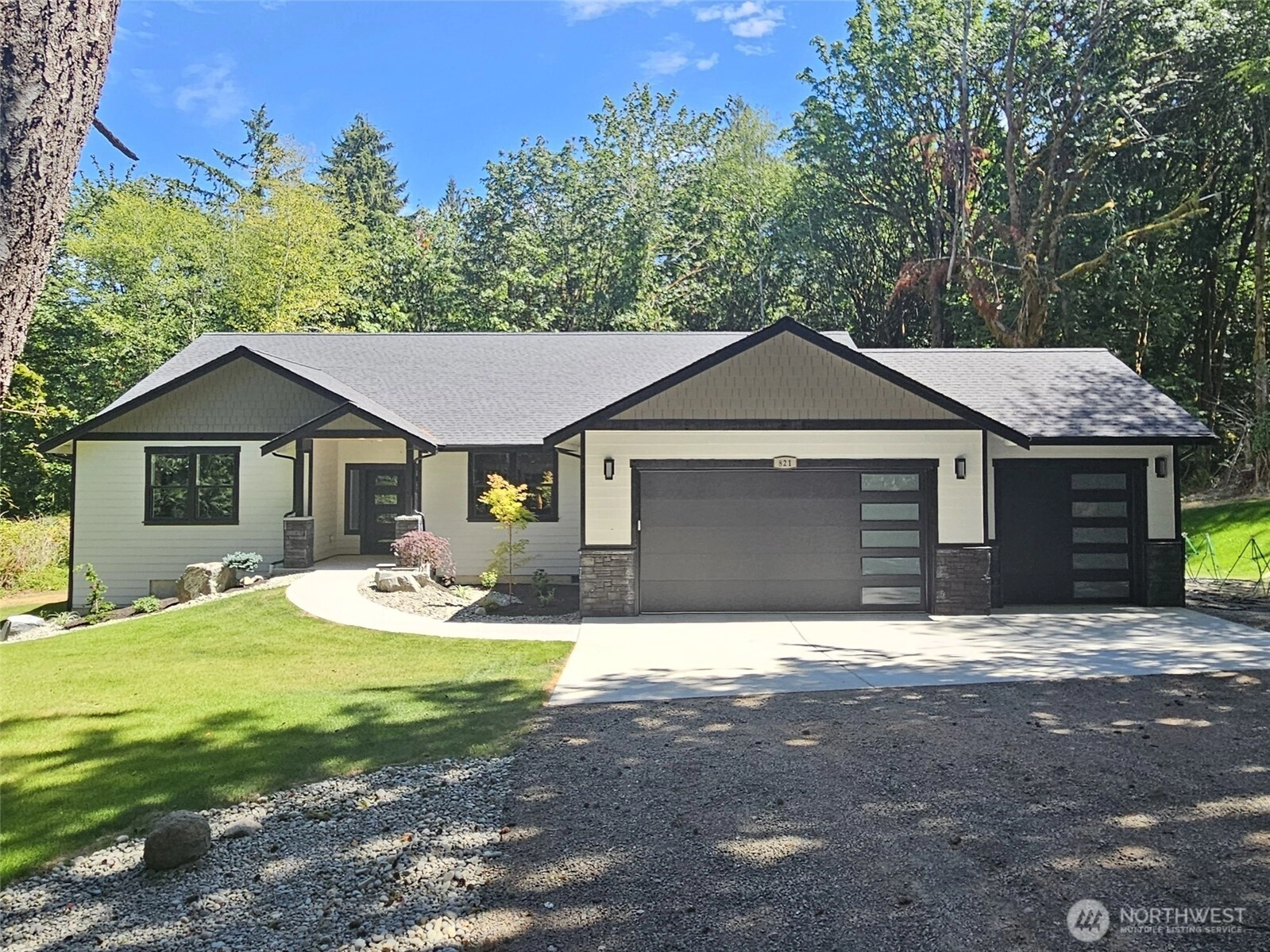All the amenities you want in a brand new home, without the neighbors or HOA! The build quality of this rambler is top notch with durable LVP floors, all SS appliances, luxury oversized stone in the bathrooms, & vaulted ceilings. The kitchen is massive with a giant island featuring quartz countertops and a walk-in pantry. The spacious master suite has a 5 piece bath with enormous walk-in closet and views of your verdant property when you wake up. Two flex spaces offer endless possibilities. Outside you live in a natural playground with a seasonal creek running through it all. Nature sightings are constant & the beach and boat launch in Von Geldern Cove are literally 1 min away! 1 year builder's warranty included! Fence negotiable.