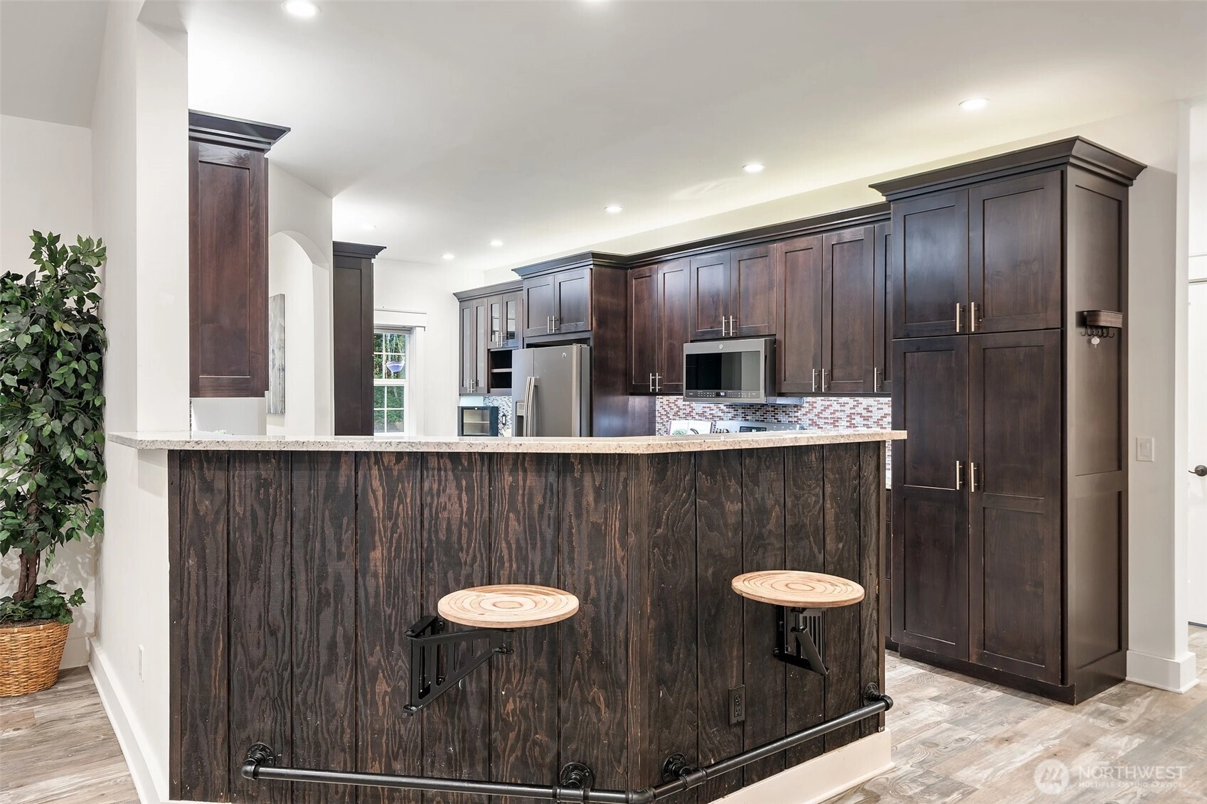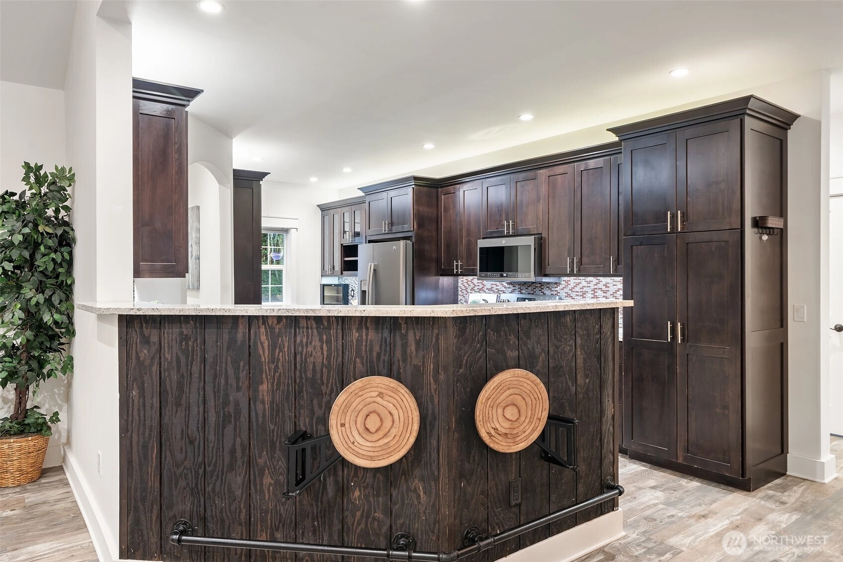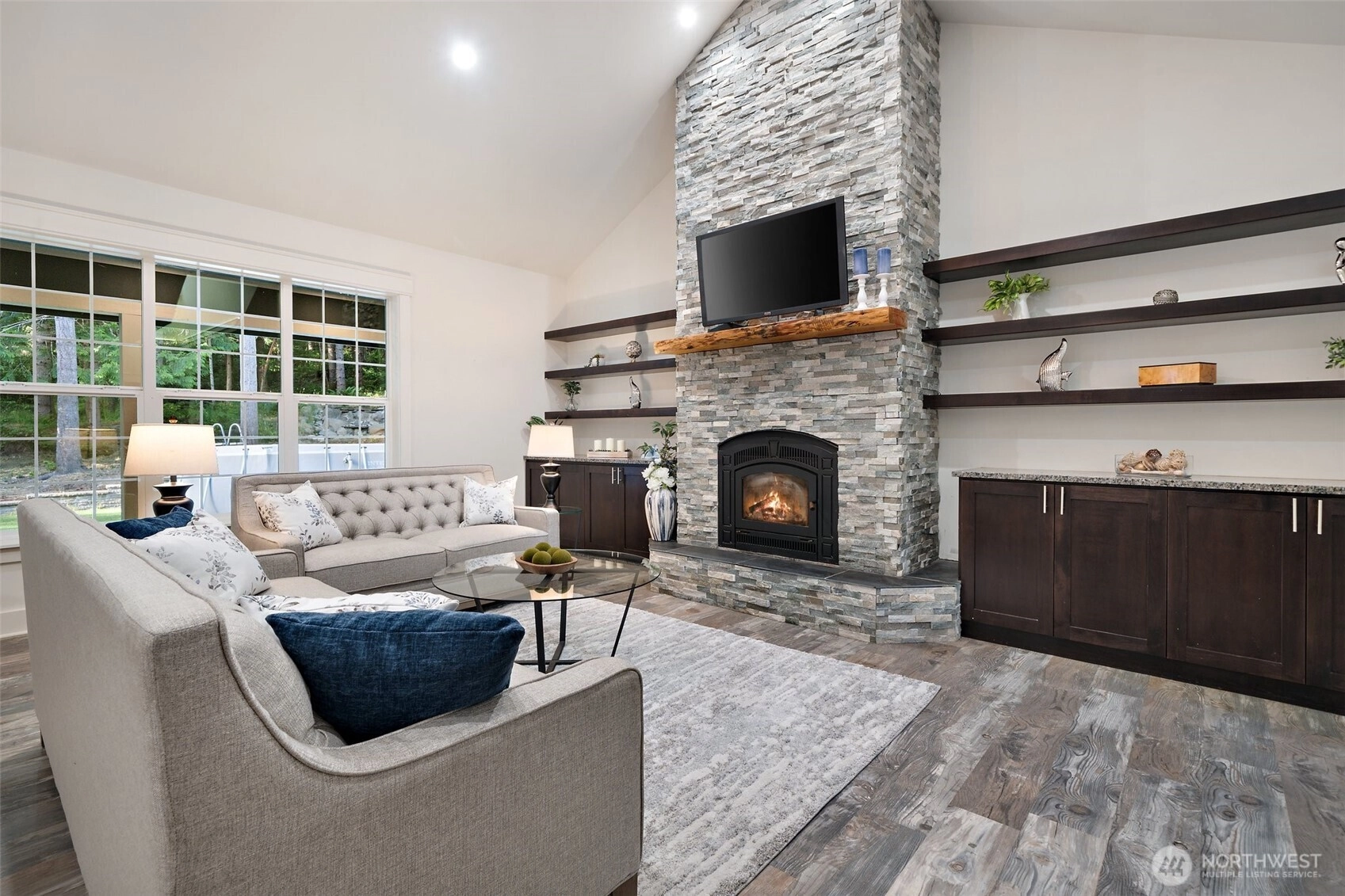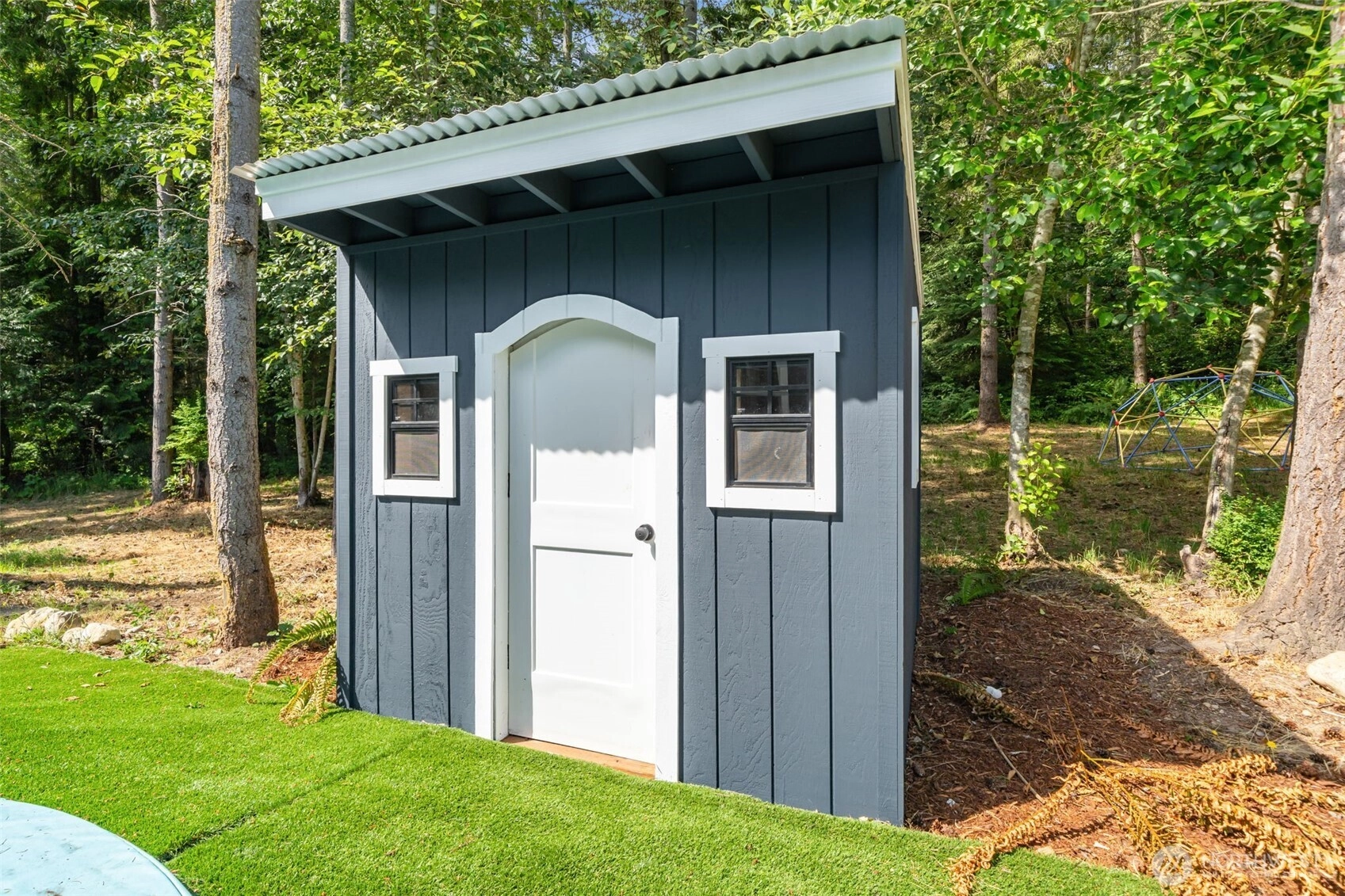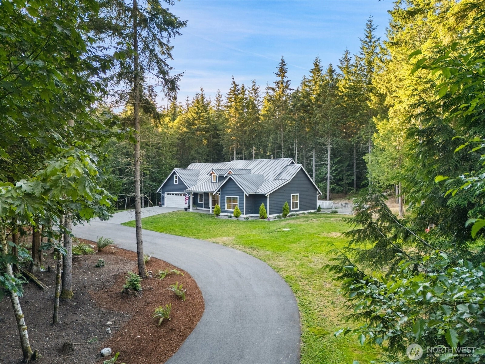 Welcome to this private 9.46-acre PNW retreat just 25 mins from the Bainbridge Island ferry and minutes from the Kingston ferry! This 2019 custom built 4BD/2.5BA, 2843' home blends luxury and off the grid readiness with a whole-house generator, a 250 gallon propane tank, private well, nine foot ceilings, radiant in-floor heating, a rock wall fireplace and chef’s kitchen with granite countertops. There's a Spacious primary suite with ensuite and walk-in closets. Outside you will find an above-ground pool, in-ground trampoline, garden space, a greenhouse, chicken coop, and detached a shop/garage—ideal for hobbies or home business. Gated entry, paved driveway, walking trails, metal roof, and custom finishes. Privacy and acreage can be yours.