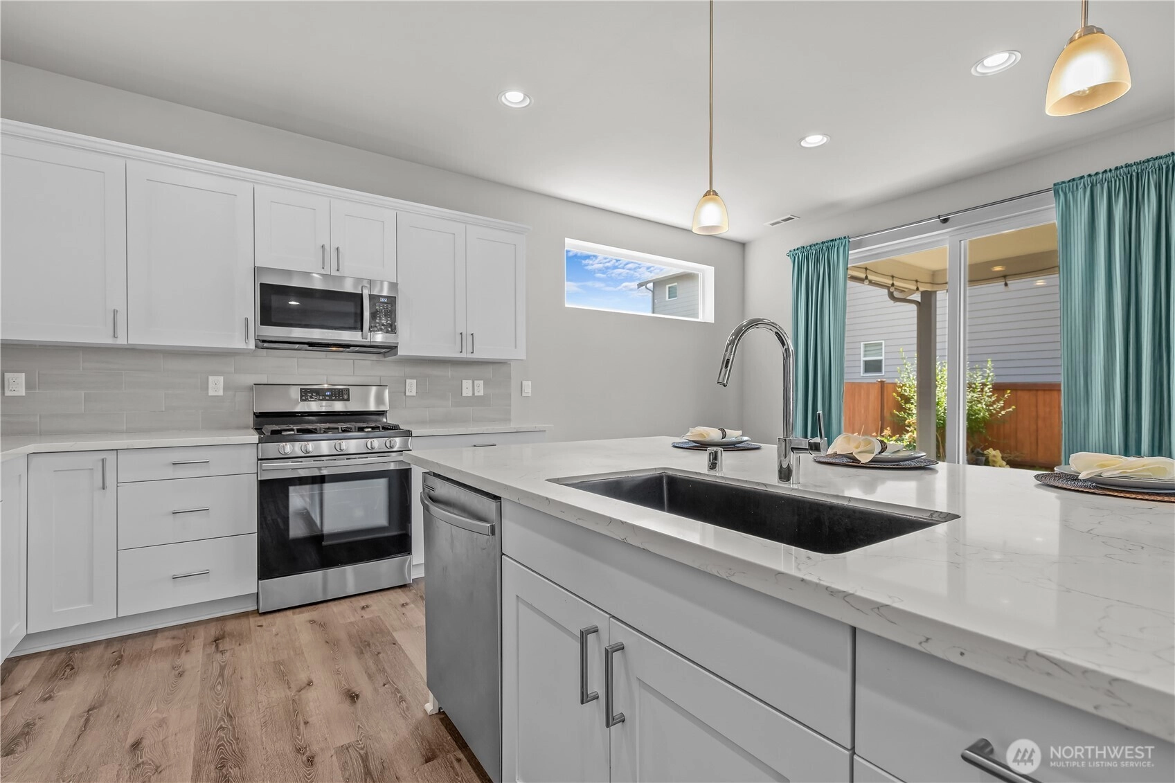New asking price $690,000 and lender credit up to $10,000 toward closing costs! Welcome to this beautiful and move-in. ready 3-bedroom, 2.5-bath home with a spacious upstairs loft. This 2,010 sq. ft. home features a bright and open floor plan that seamlessly connects the kitchen, dining, and living areas—complete with a cozy gas fireplace. The large primary suite offers a vaulted ceiling and a sleek, modern bathroom. Quality interior finishes include white cabinetry, quartz countertops, stainless steel appliances, and a tankless hot water heater. Recently installed new air conditioner. Step outside to a fully fenced, well maintained landscaped backyard—ideal for relaxing, entertaining, or enjoying time with friends. Don't miss this one!