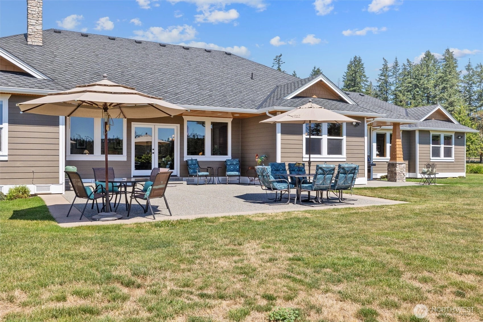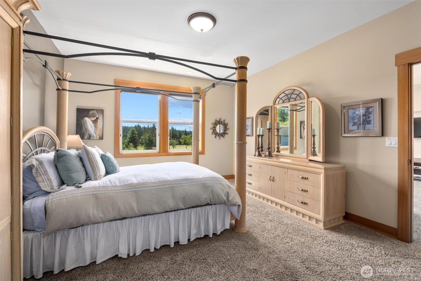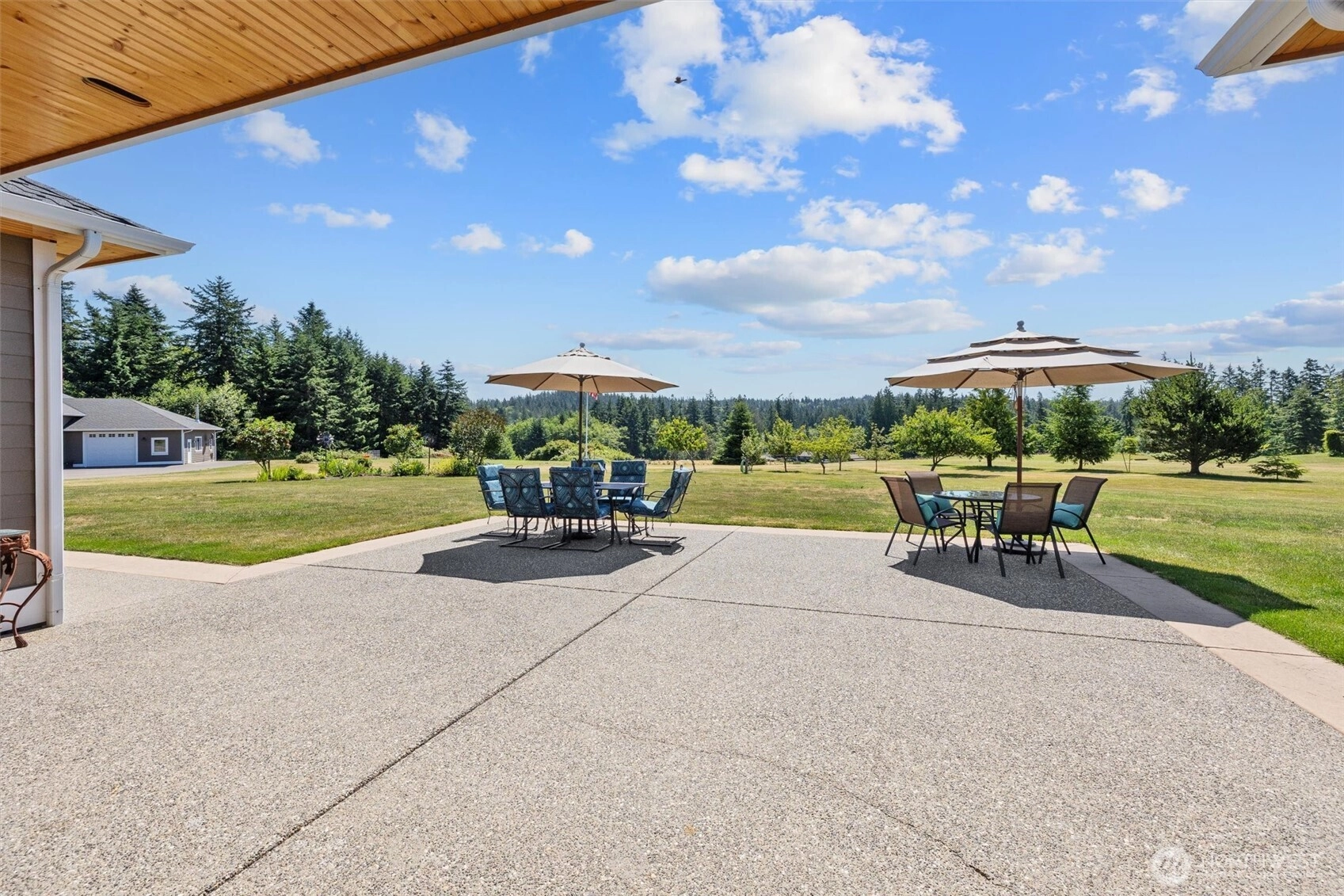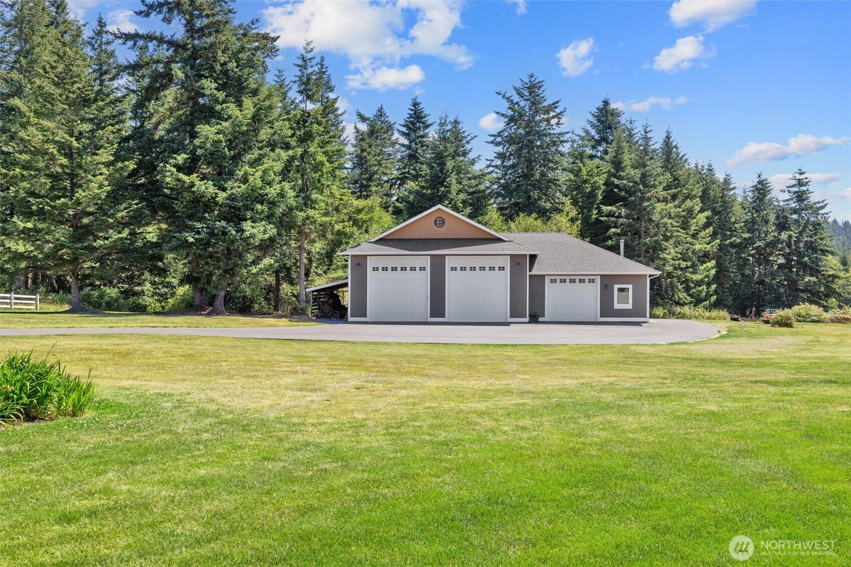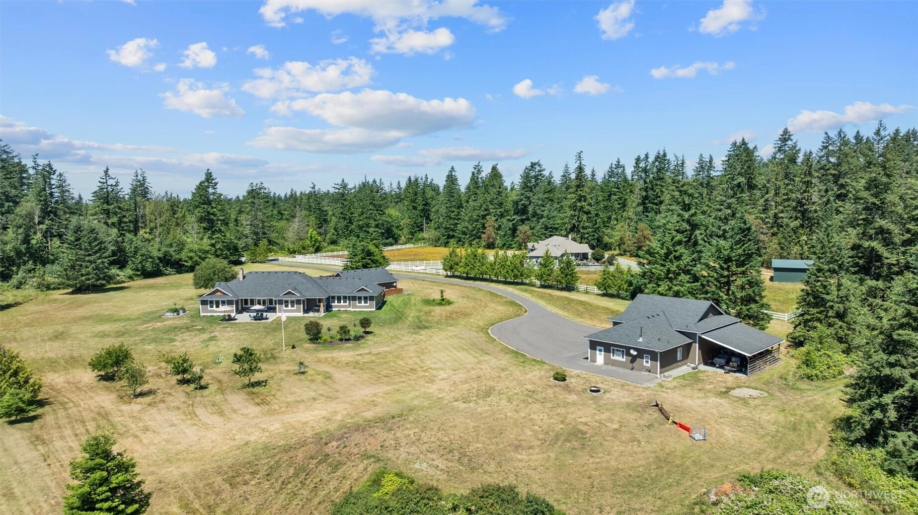 Welcome to your westside Camano Island sanctuary! Set on 10 acres of sunny fields & evergreens, this nearly 4,000 sq. ft. craftsman rambler blends elegance w/relaxed island living. Oak floors w/inlays & coffered ceilings frame a gourmet kitchen w/granite counters, prep island, stainless appliances & wine bar. Entertain in the formal dining room, enjoy the grand stone fireplace, or relax in the den/rec room. The spa-like primary suite is a private retreat, while 2 more bedrooms PLUS a large office offers versatility! Main house has it's own 3-car gar. + there is a HUGE 2,200 sq. ft. shop w/14’ ceilings-fits an RV & includes a studio area for extended use/guests. Fruit trees, sprinklers & manicured grounds complete this exceptional property!