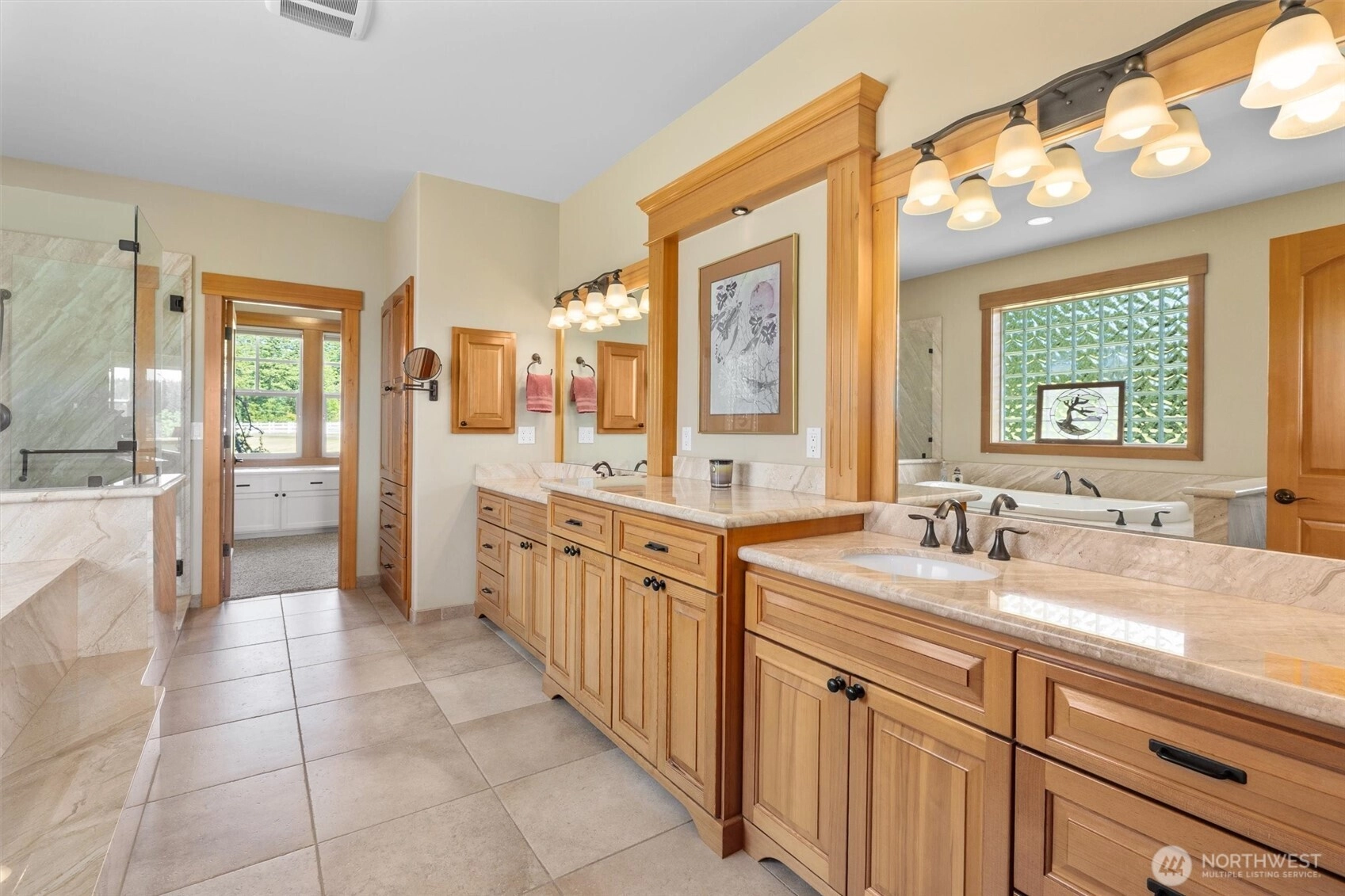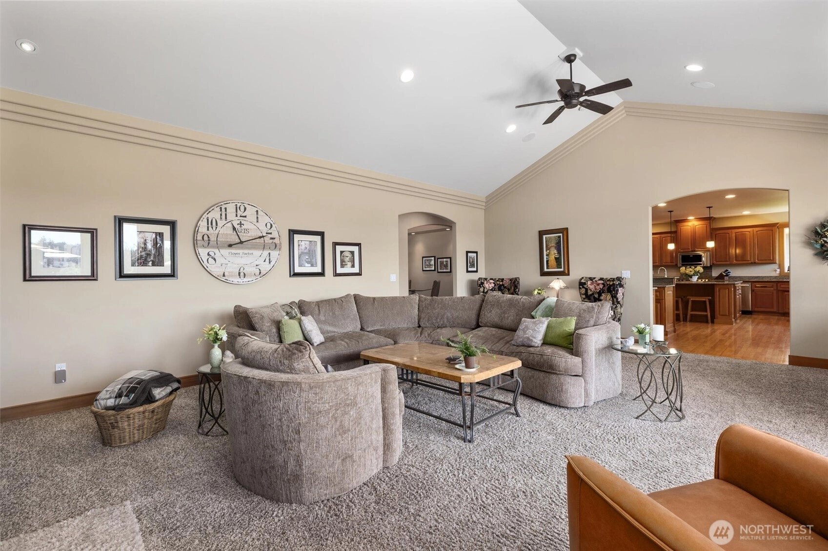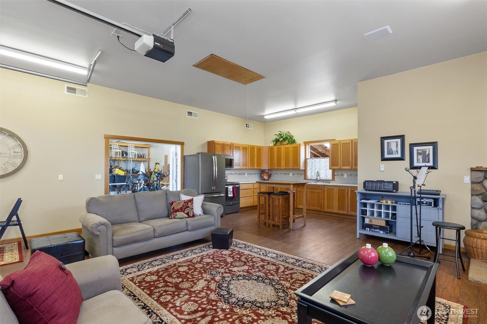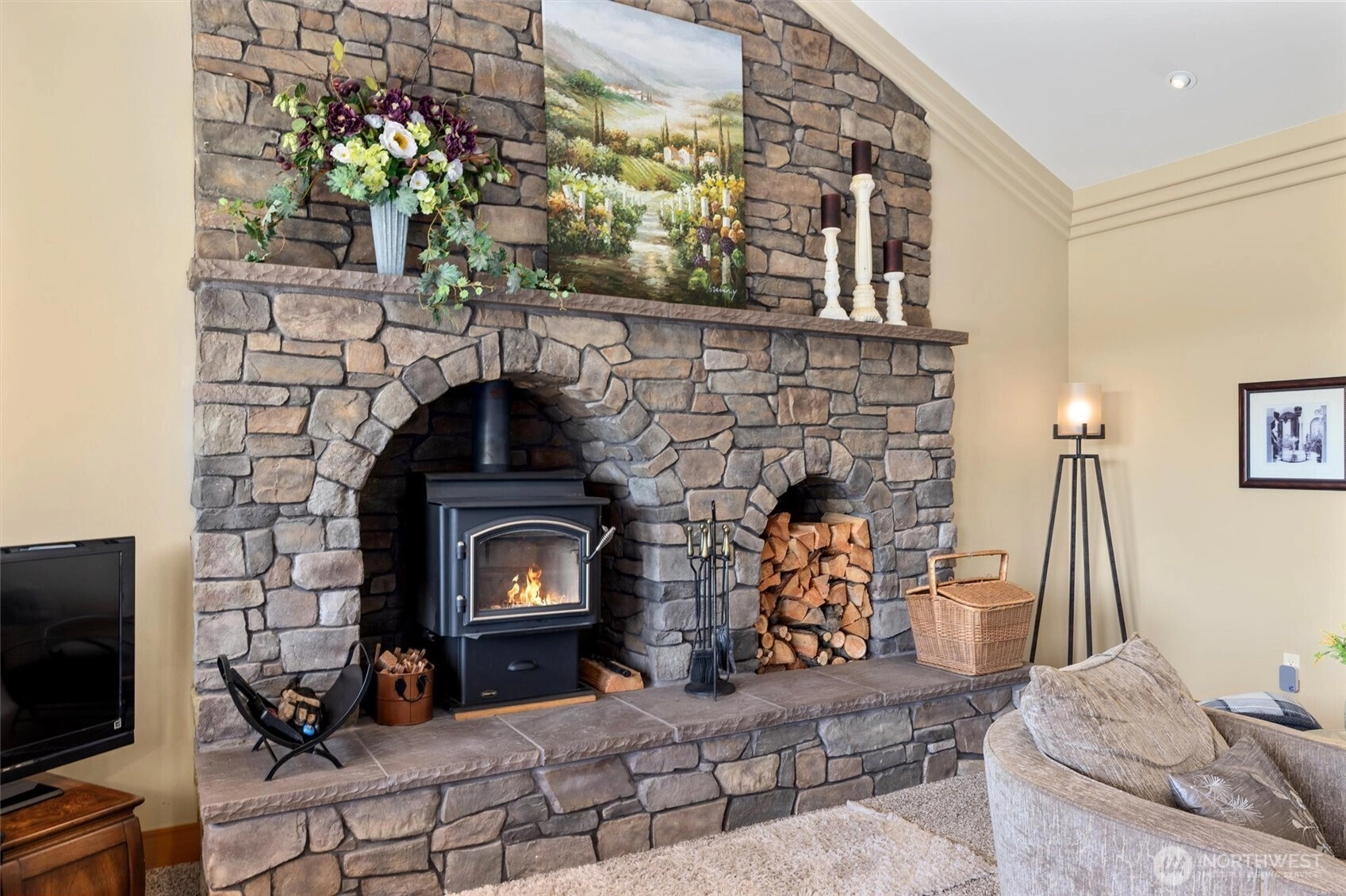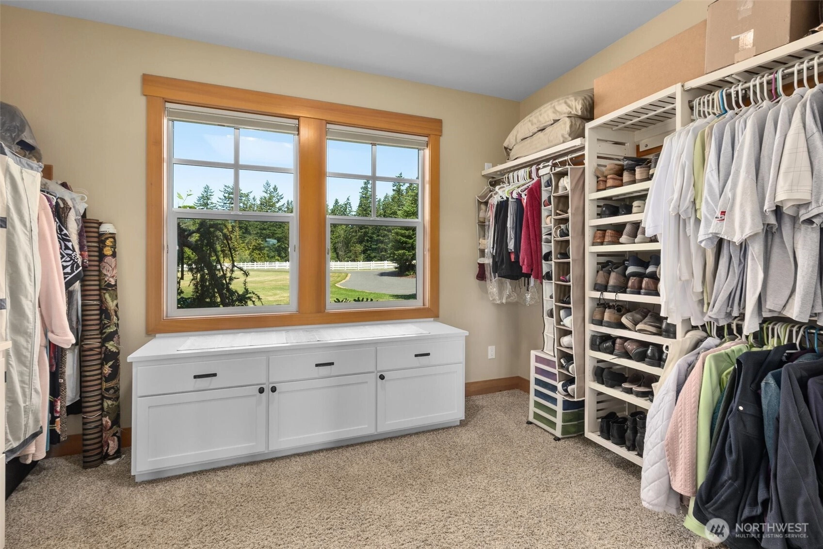 Welcome to your westside Camano Island sanctuary! Set on 10 acres of sunny fields & evergreens, this nearly 4,000 sq. ft. craftsman rambler blends elegance w/relaxed island living. Oak floors w/inlays & coffered ceilings frame a gourmet kitchen w/granite counters, prep island, stainless appliances & wine bar. Entertain in the formal dining room, enjoy the grand stone fireplace, or relax in the den/rec room. The spa-like primary suite is a private retreat, while 2 more bedrooms PLUS a large office offers versatility! Main house has it's own 3-car gar. + there is a HUGE 2,200 sq. ft. shop w/14’ ceilings-fits an RV & includes a studio area for extended use/guests. Fruit trees, sprinklers & manicured grounds complete this exceptional property!