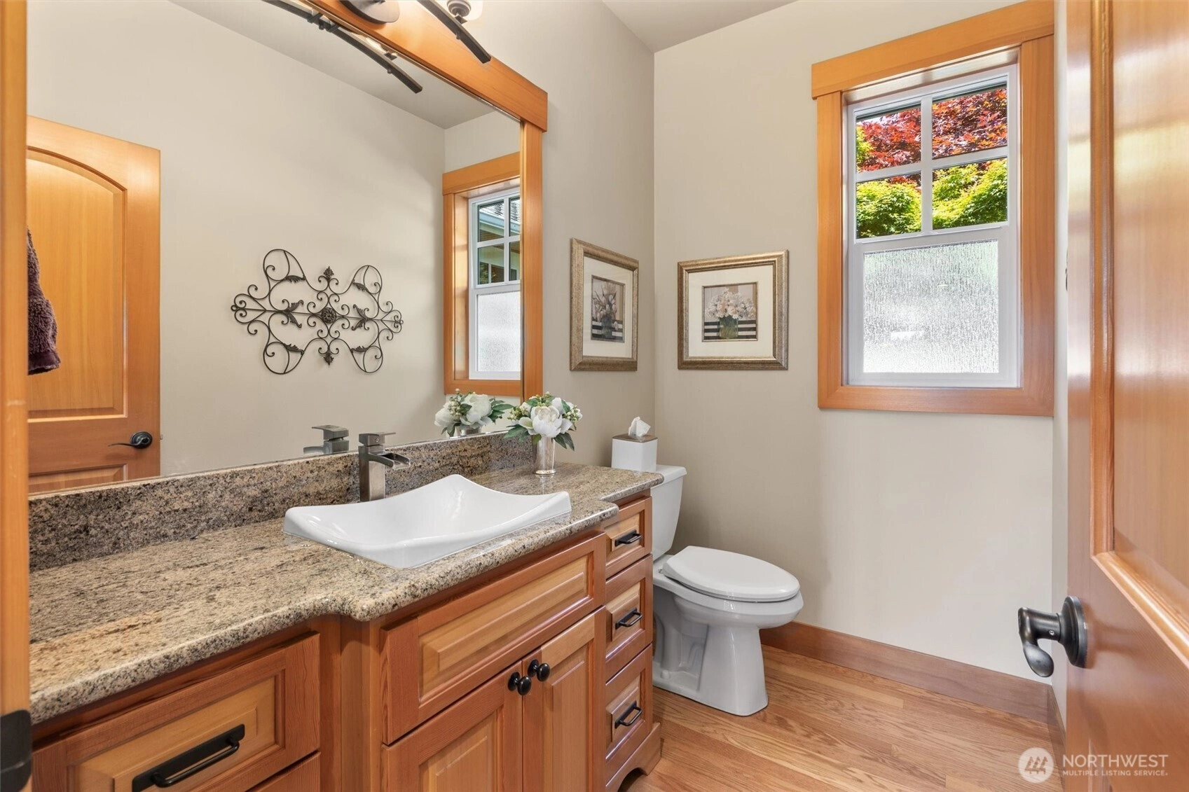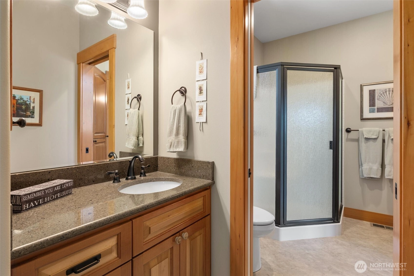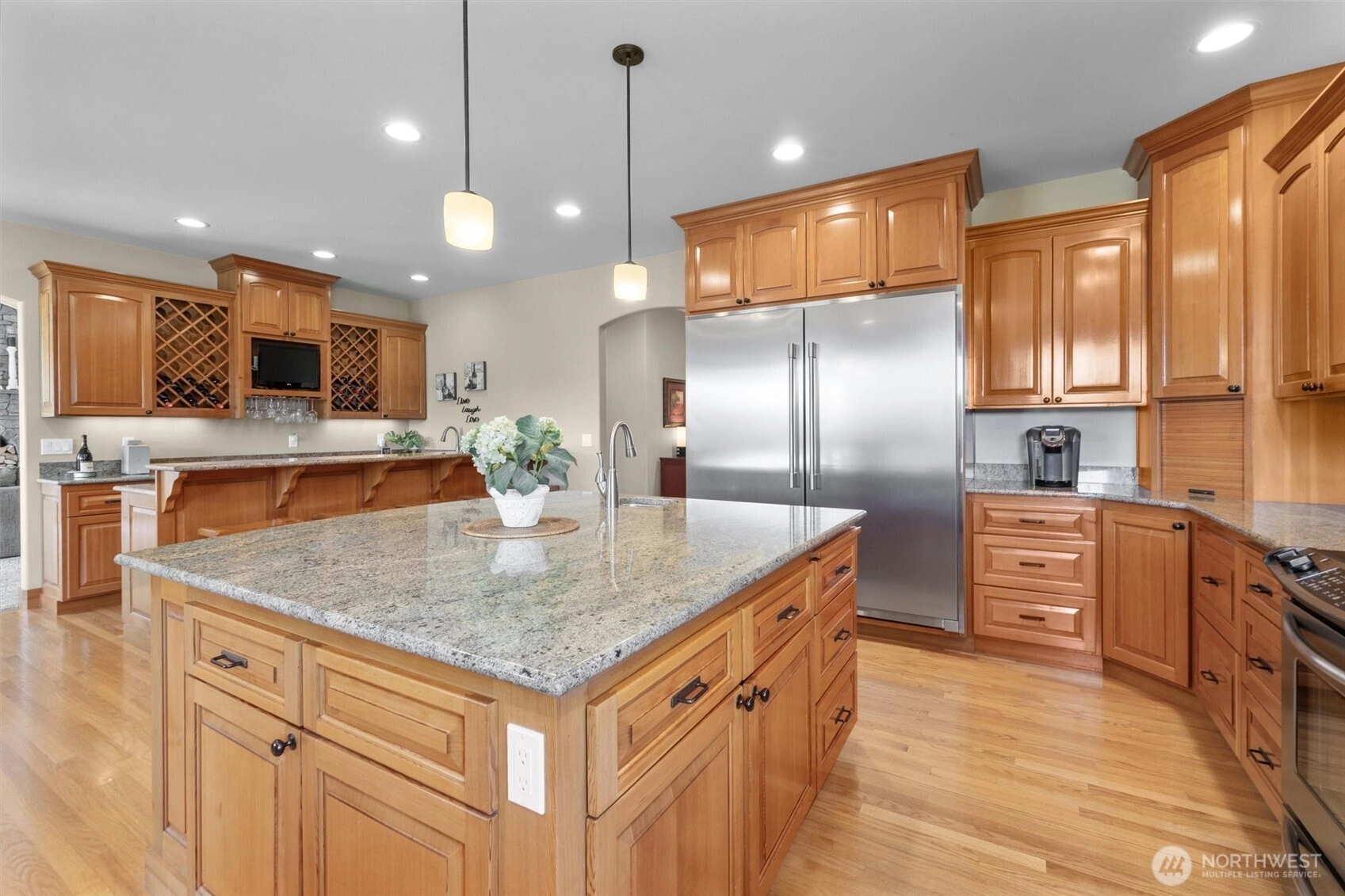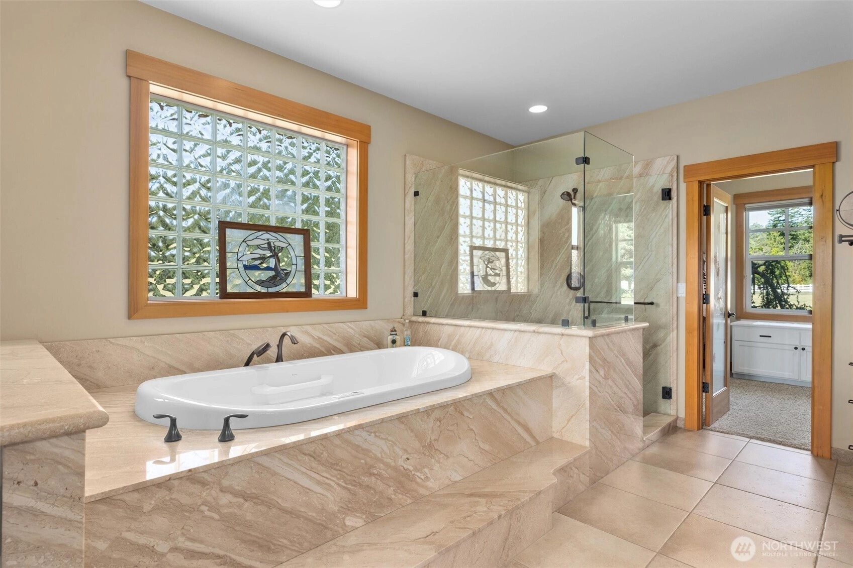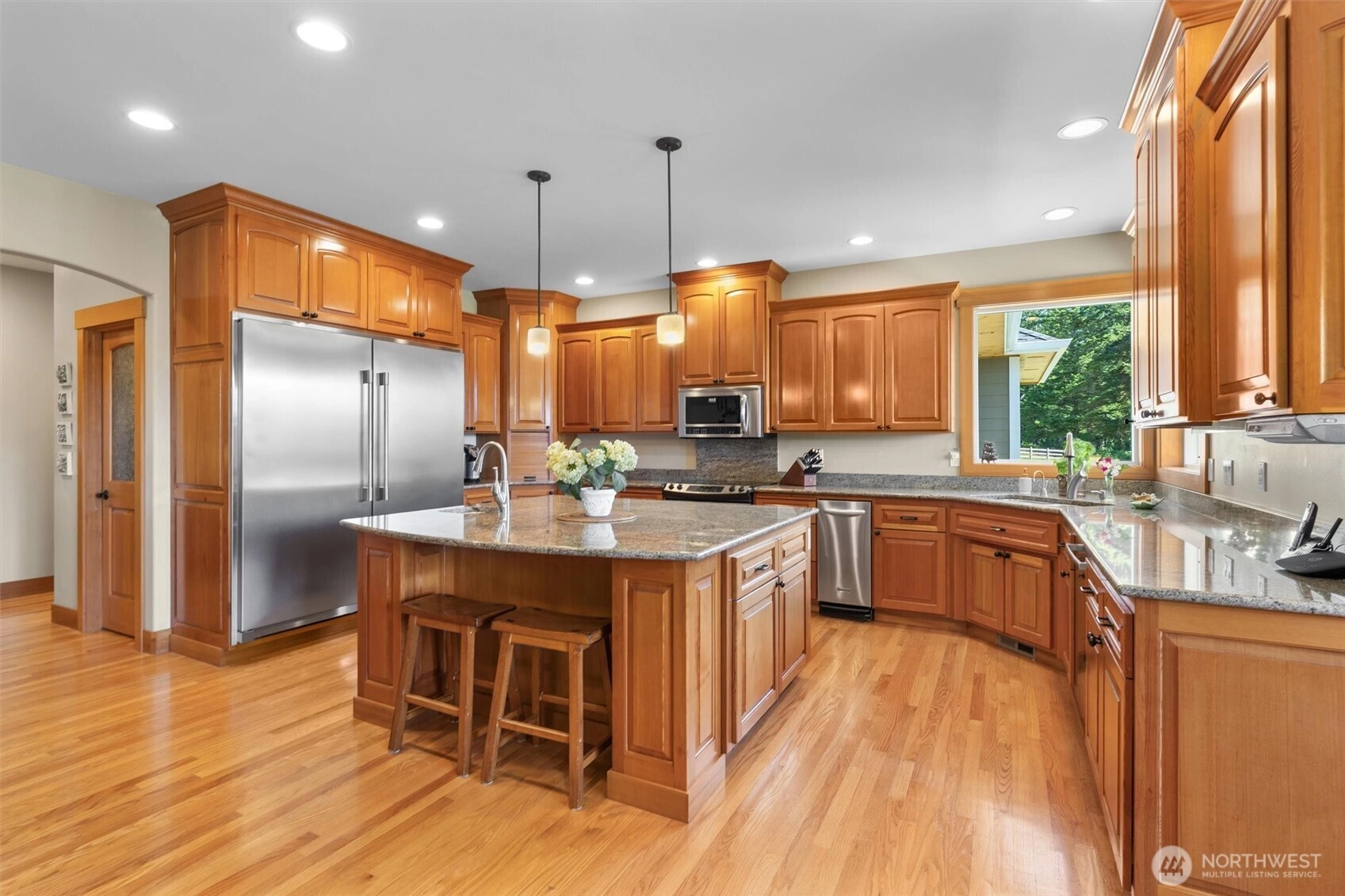 Welcome to your westside Camano Island sanctuary! Set on 10 acres of sunny fields & evergreens, this nearly 4,000 sq. ft. craftsman rambler blends elegance w/relaxed island living. Oak floors w/inlays & coffered ceilings frame a gourmet kitchen w/granite counters, prep island, stainless appliances & wine bar. Entertain in the formal dining room, enjoy the grand stone fireplace, or relax in the den/rec room. The spa-like primary suite is a private retreat, while 2 more bedrooms PLUS a large office offers versatility! Main house has it's own 3-car gar. + there is a HUGE 2,200 sq. ft. shop w/14’ ceilings-fits an RV & includes a studio area for extended use/guests. Fruit trees, sprinklers & manicured grounds complete this exceptional property!