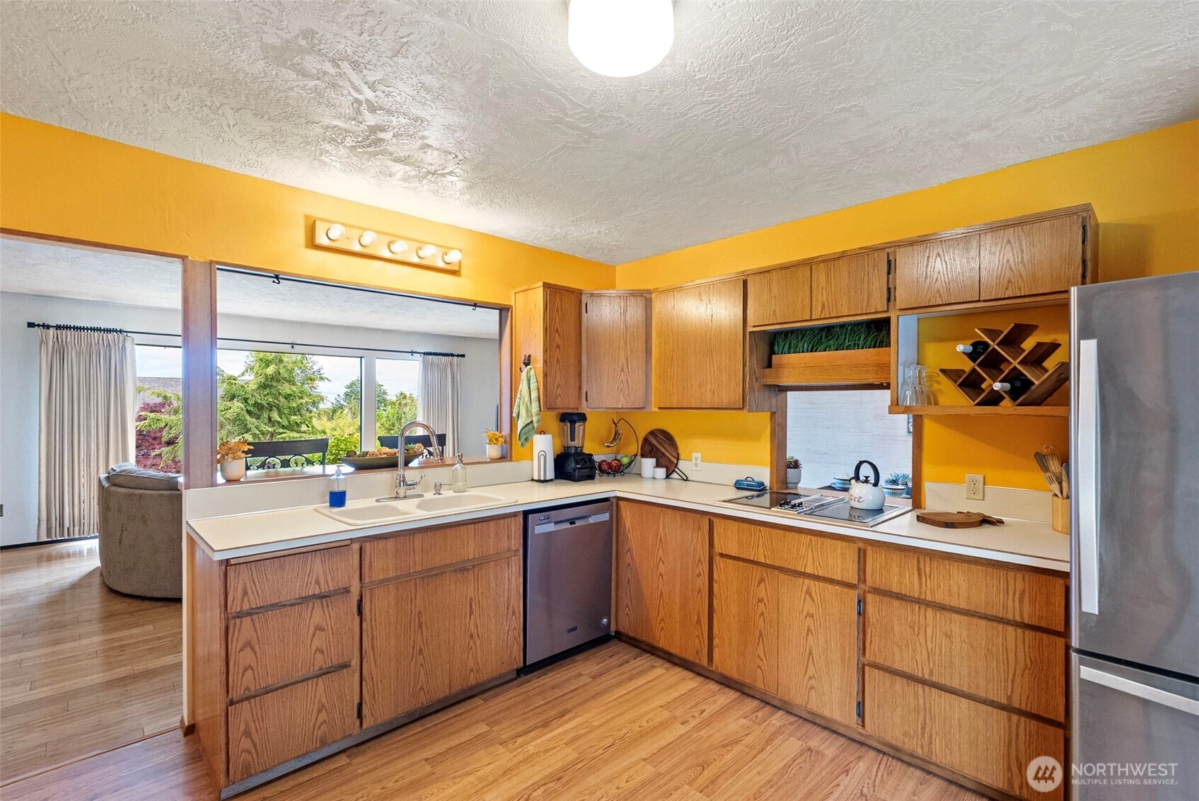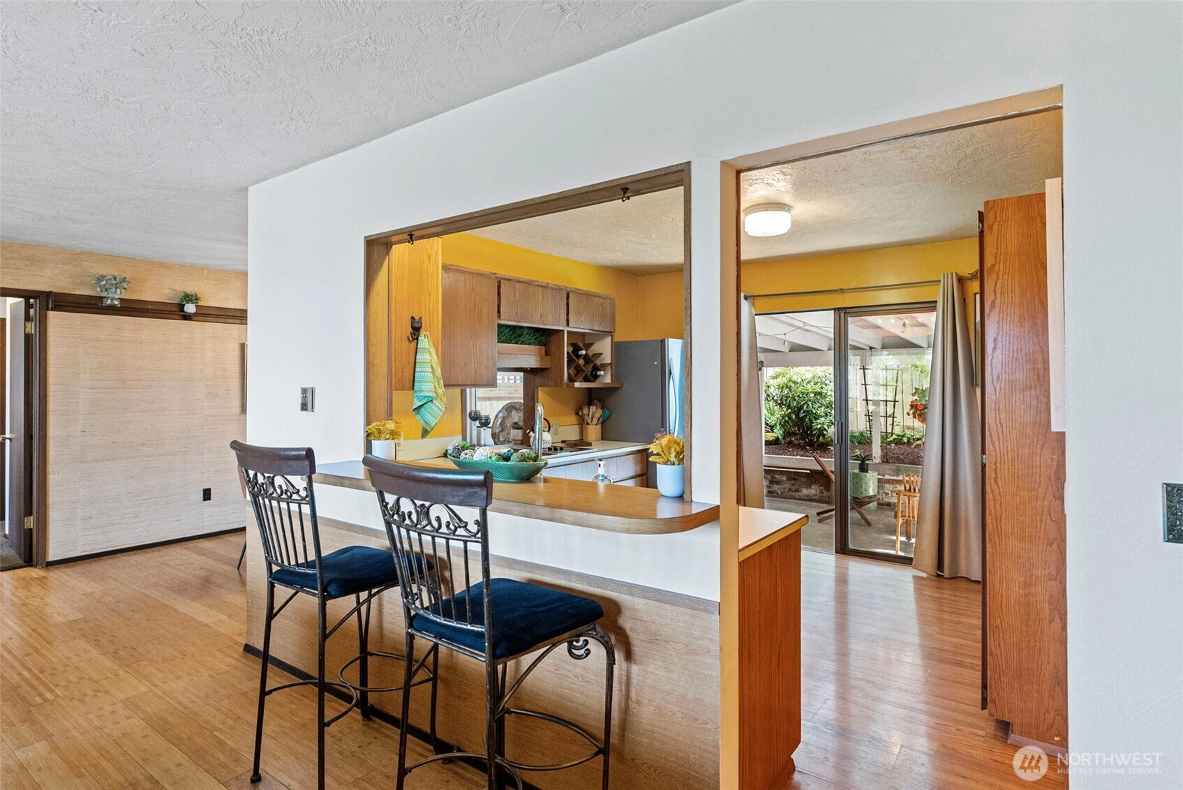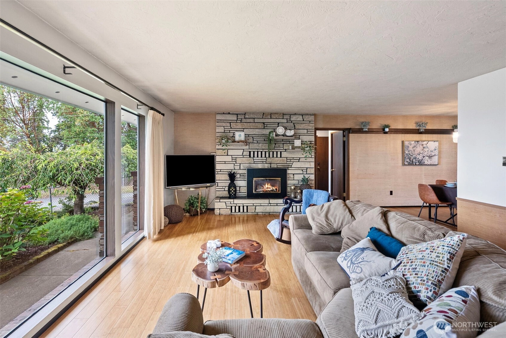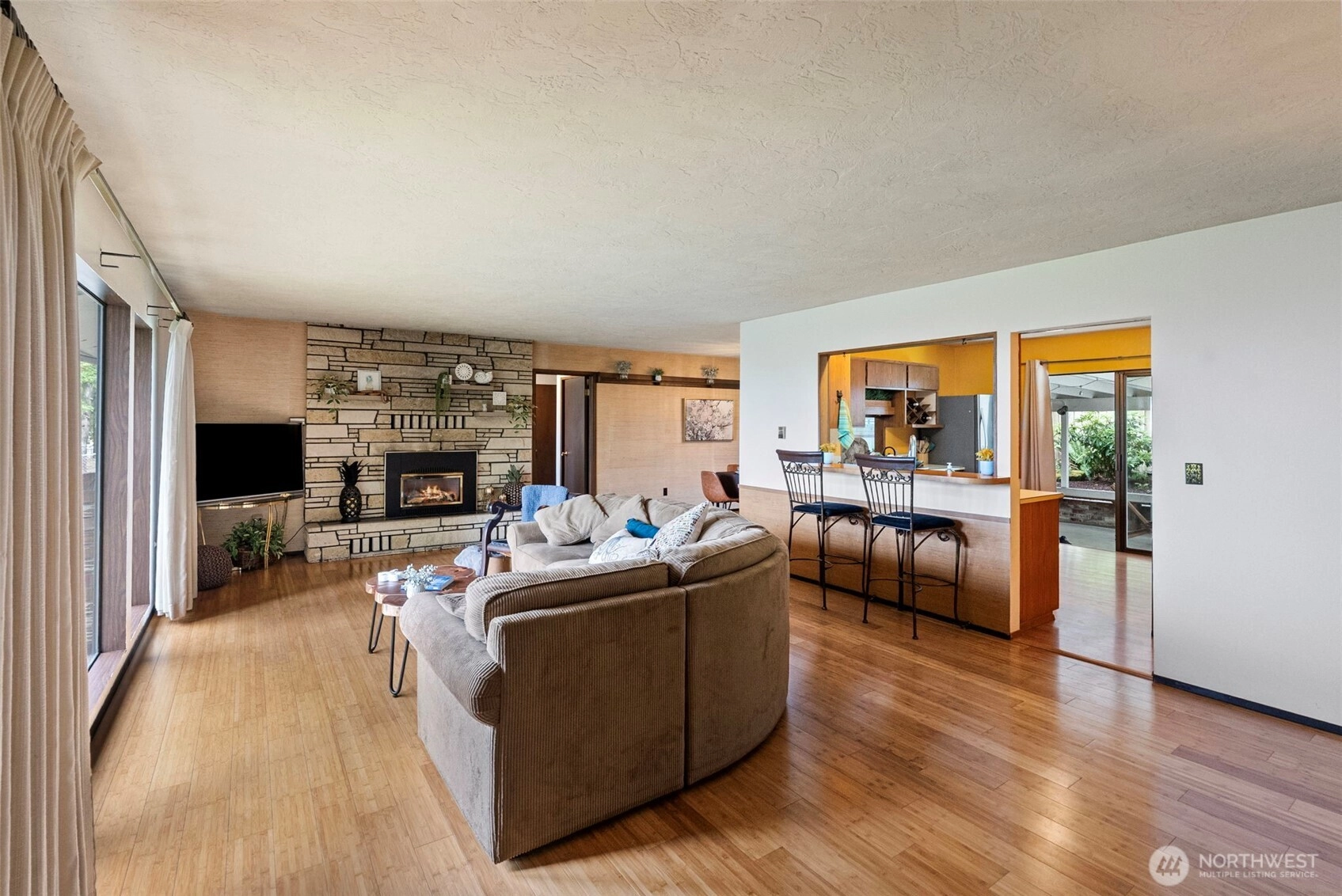 Nestled within walking distance of the Olympic Park Visitors Cntr and trails, do not miss this charming mid-century modern home. Enjoy the advantages of being able to walk to symphony performances, restaurants, and a favorite local bakery. Take in beautiful partial water views cheered by songbirds, with bamboo flooring and a cozy fireplace. Soak in the serenity of the covered back patio and deck perfect for entertaining or relaxing. The master bdrm features a unique stained glass window, private 1/2 bathroom, and bonus room with ample storage and a separate entrance, with exciting potential for an ADU, if desired. With 3 bdrm, 1 1/2 bath, and a versatile floor-plan, come discover your potential new home on the North Olympic Peninsula.