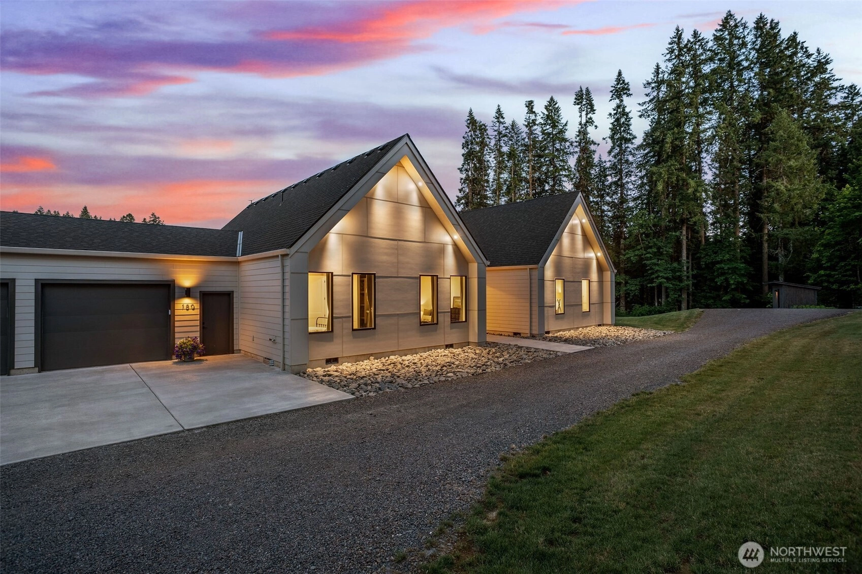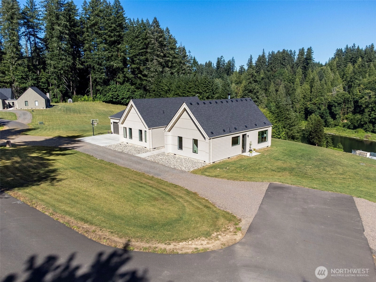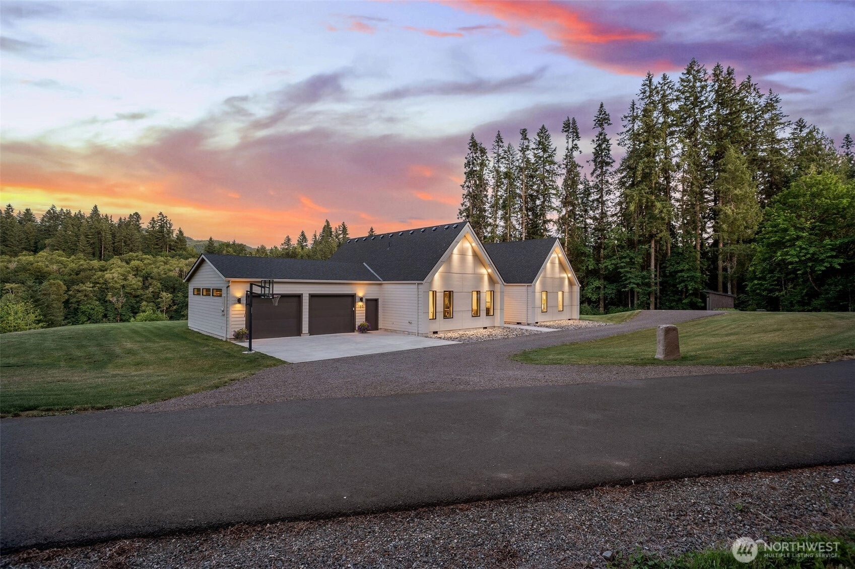 Modern luxury with VIEWS! This 2023 custom, one-level home sits on 2.68 acres just above the Lewis River Fish Hatchery. Nearly 2,600 sq ft with vaulted ceilings, a cozy wood-burning stove, and an open layout that lives large. Enjoy timeless design, a huge kitchen, walk-in pantry/storage, and a covered patio for year-round outdoor living. With 4 bedrooms, an oversized 3-car garage, and like-new condition without the headache of building. Top fishing, hiking, lakes, and boat launches just minutes away—this is PNW living at its best!