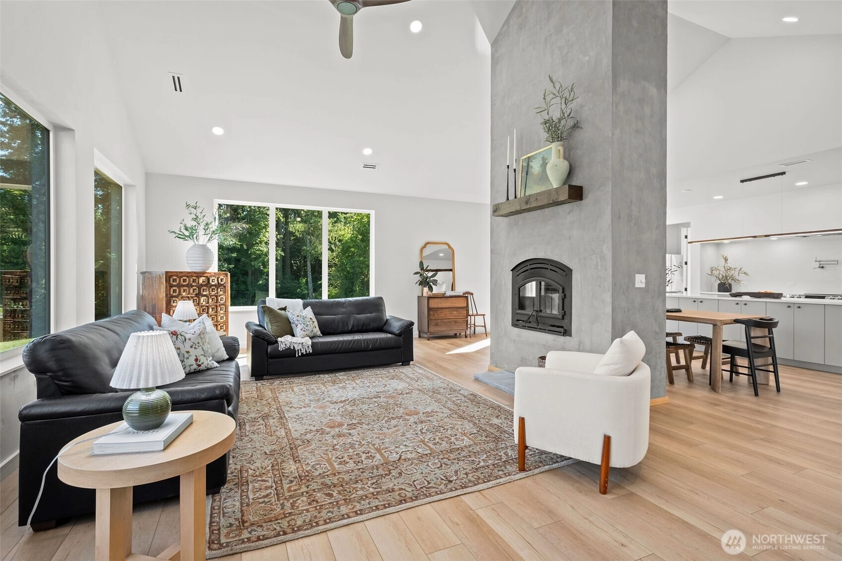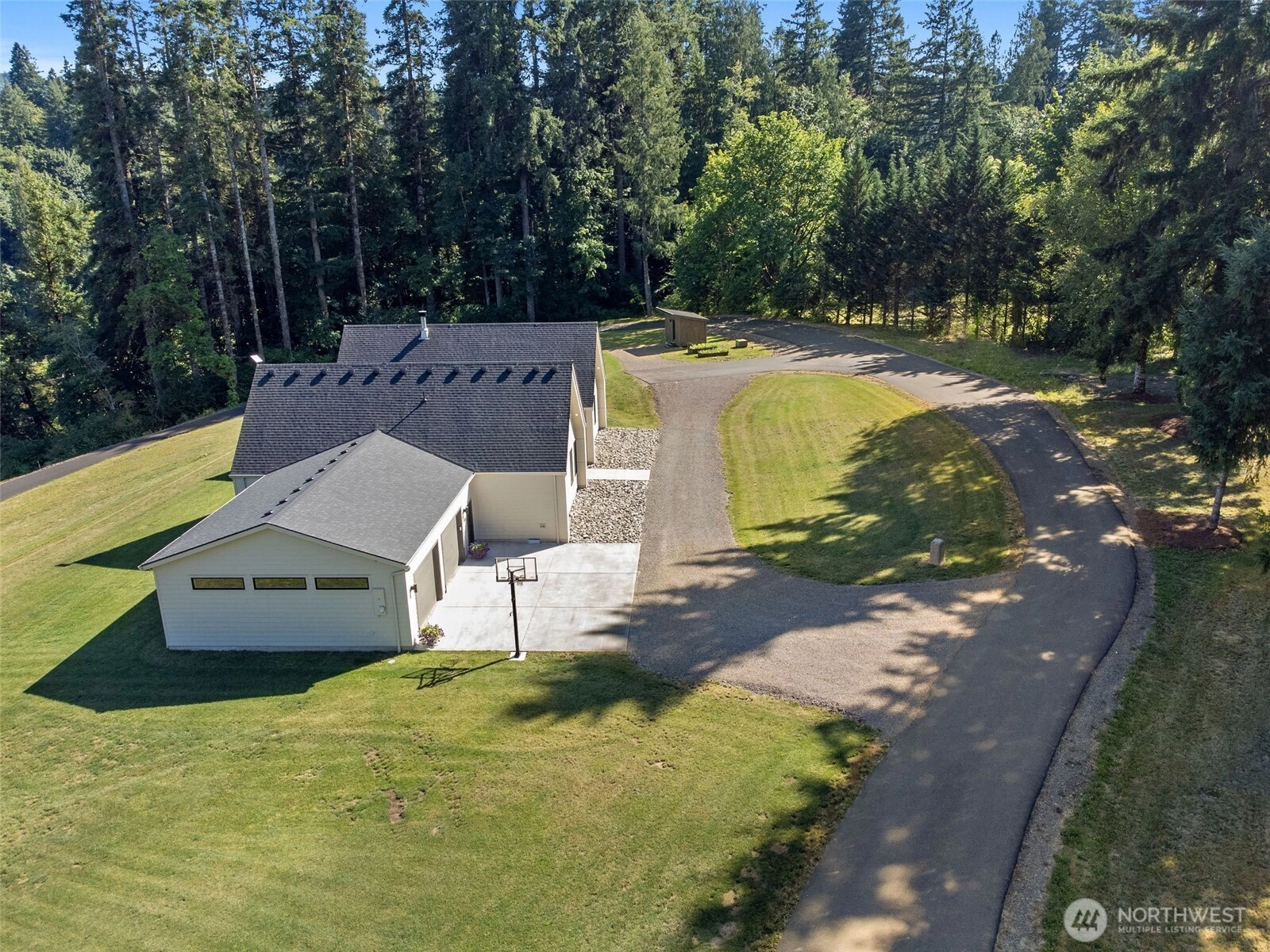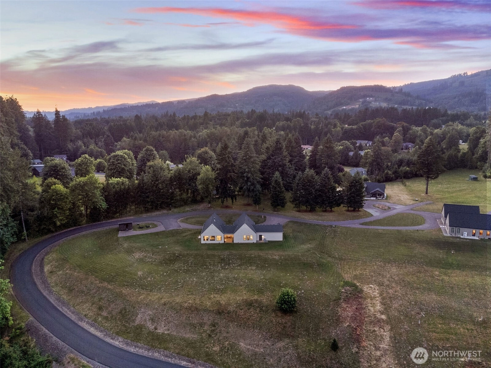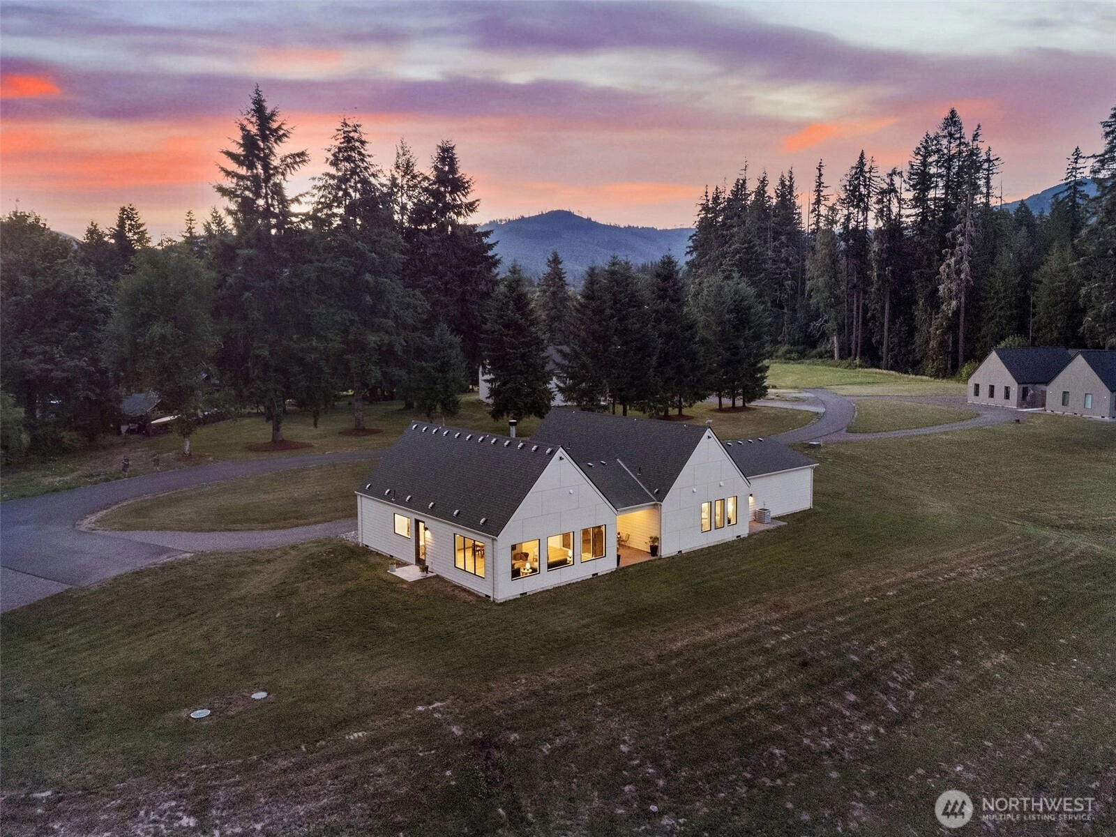 Modern luxury with VIEWS! This 2023 custom, one-level home sits on 2.68 acres just above the Lewis River Fish Hatchery. Nearly 2,600 sq ft with vaulted ceilings, a cozy wood-burning stove, and an open layout that lives large. Enjoy timeless design, a huge kitchen, walk-in pantry/storage, and a covered patio for year-round outdoor living. With 4 bedrooms, an oversized 3-car garage, and like-new condition without the headache of building. Top fishing, hiking, lakes, and boat launches just minutes away—this is PNW living at its best!
