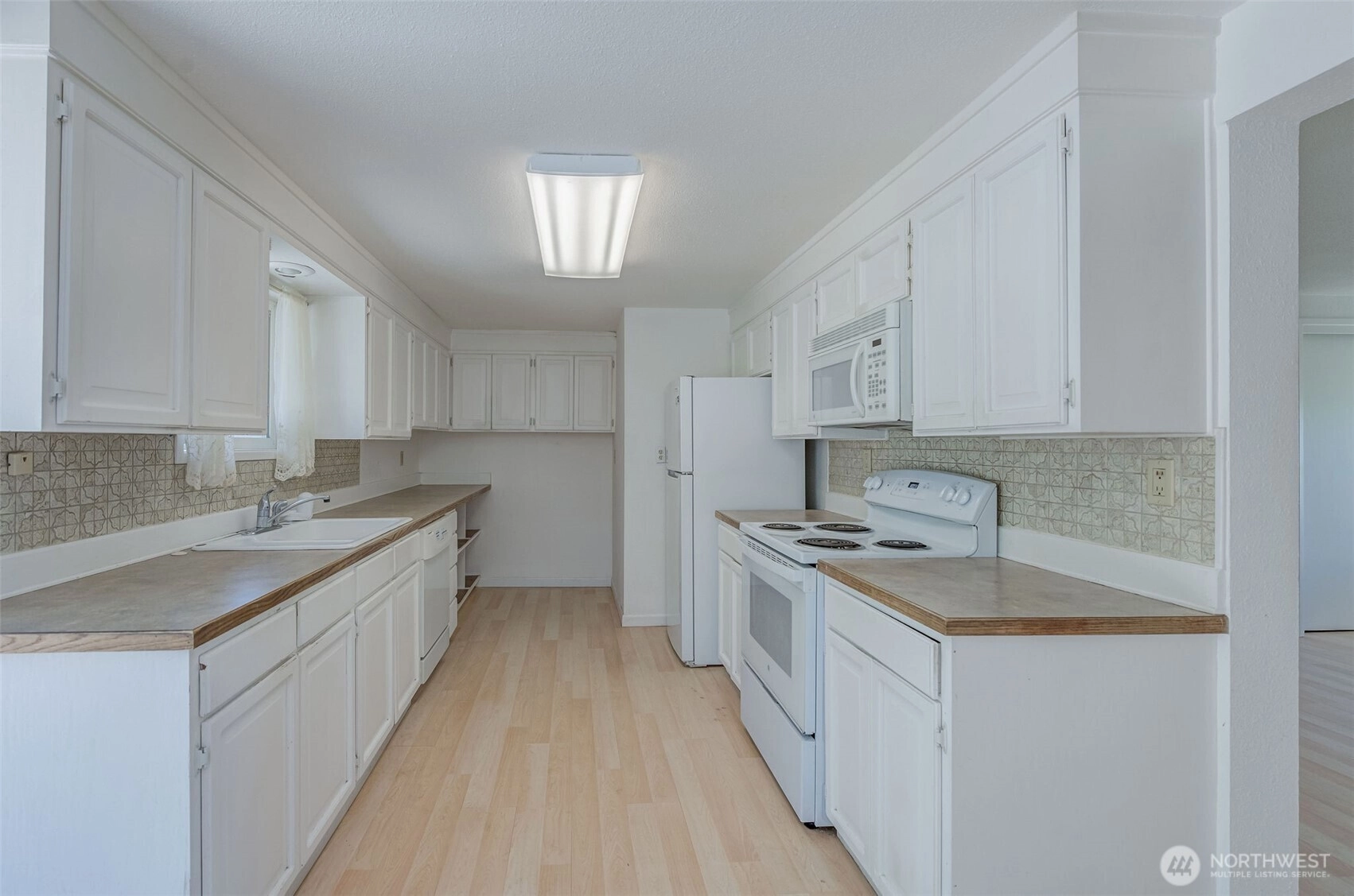 This gem was treated a little roughly by tenants & needs someone to make it shine! Never before on market, here's your opportunity to acquire a solid 4 bed 2 bath, 2,194 ft rambler w/703 ft attached garage/shop on an oversized lot. Rural & quiet feel-yet convenient to everything! Fully fenced front AND back w/mature landscape, irrigation water, in-ground sprinklers & oasis-like backyard with sprawling paved patio that once surrounded a pool. Home has had additions/ improvements over its years but still has much potential remaining! Gally-style kitchen could be expanded. Versatile floorplan is split, allowing a lg primary retreat w/patio slider, 5-piece bath & walk-in closet to enjoy privacy. All appliances included. Did I mention VIEWS too?