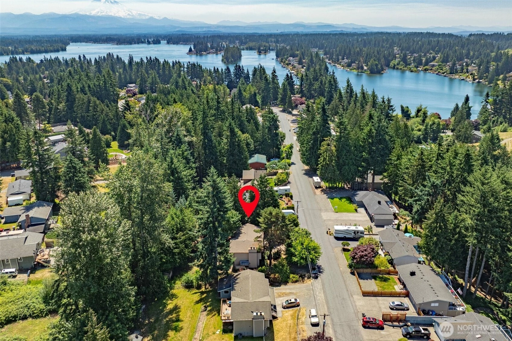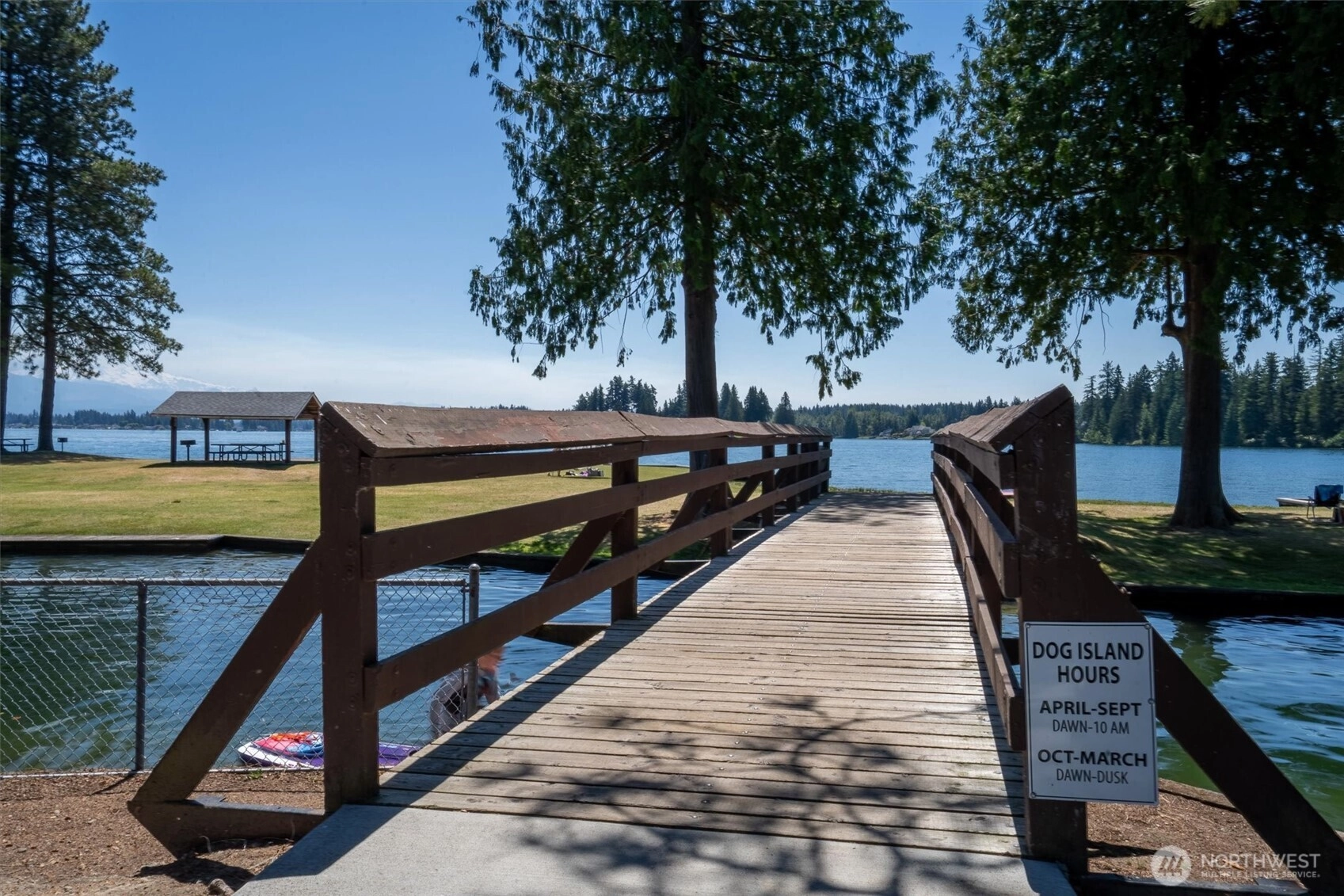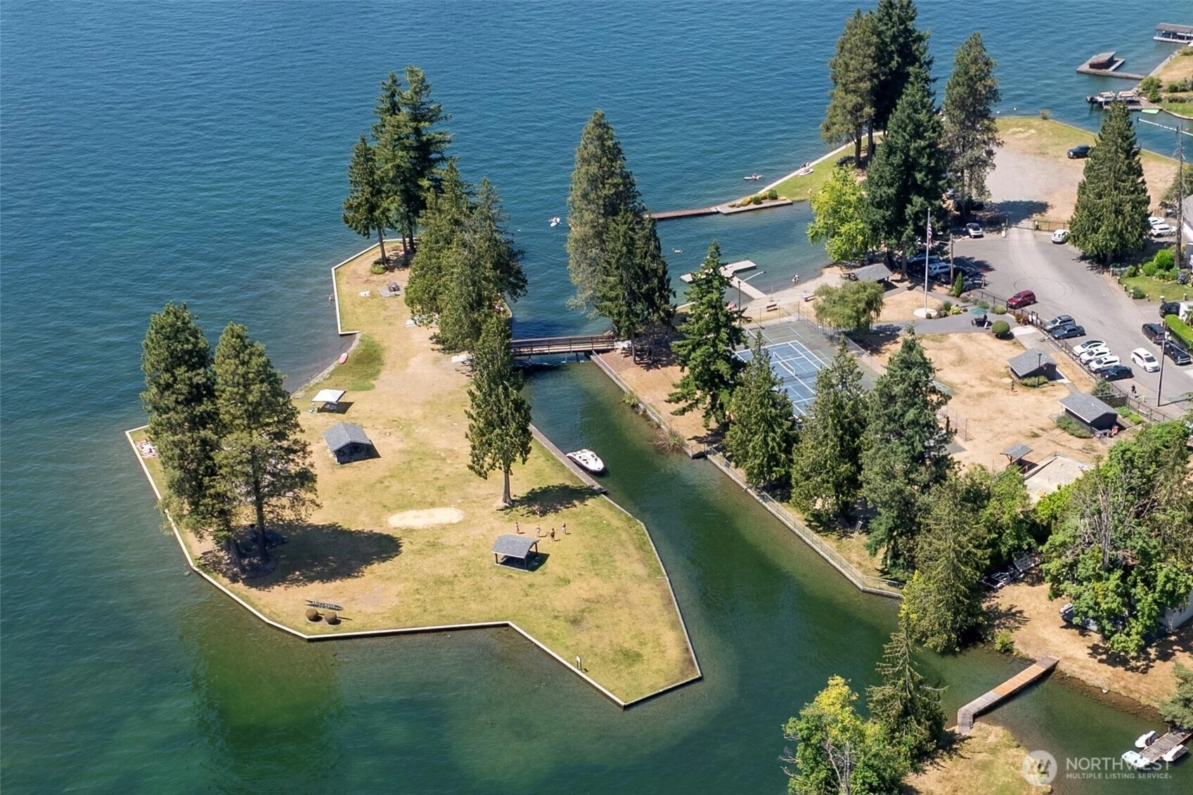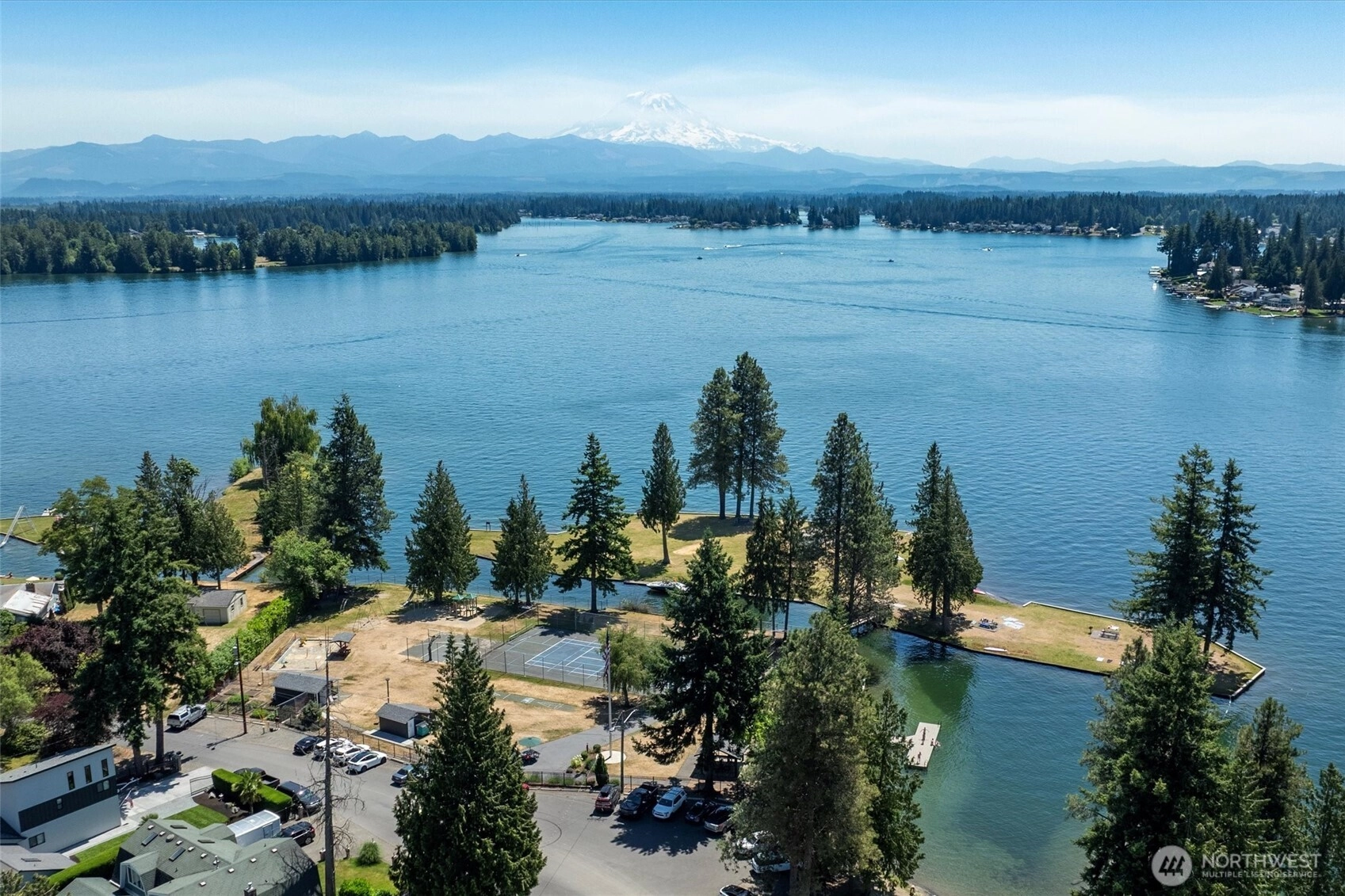 Welcome to island living! This home features plenty of room for everyone with 4 bedrooms, 3 bathrooms, and even an extra living space downstairs with a wet bar. Upstairs you have great vaulted ceiling in the living room, kitchen and dining room. The kitchen features tons of cabinets with sliding drawers for all the pots and pans you have. Outback you have a huge deck with mature blueberry bushes that you can't beat as well as Rainier cherry trees. You also have a large 12 by 30 foot carport for all the toys you need, a 2 car garage, and street parking as well. This home comes with private lake access to the best park on the lake with stunning mountain views, a boat launch, tennis and pickleball courts and so much more!
