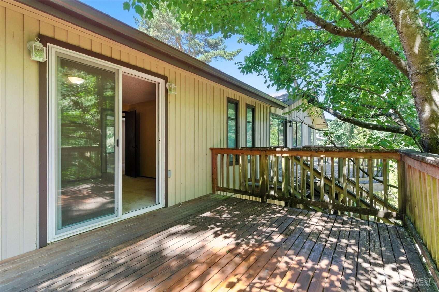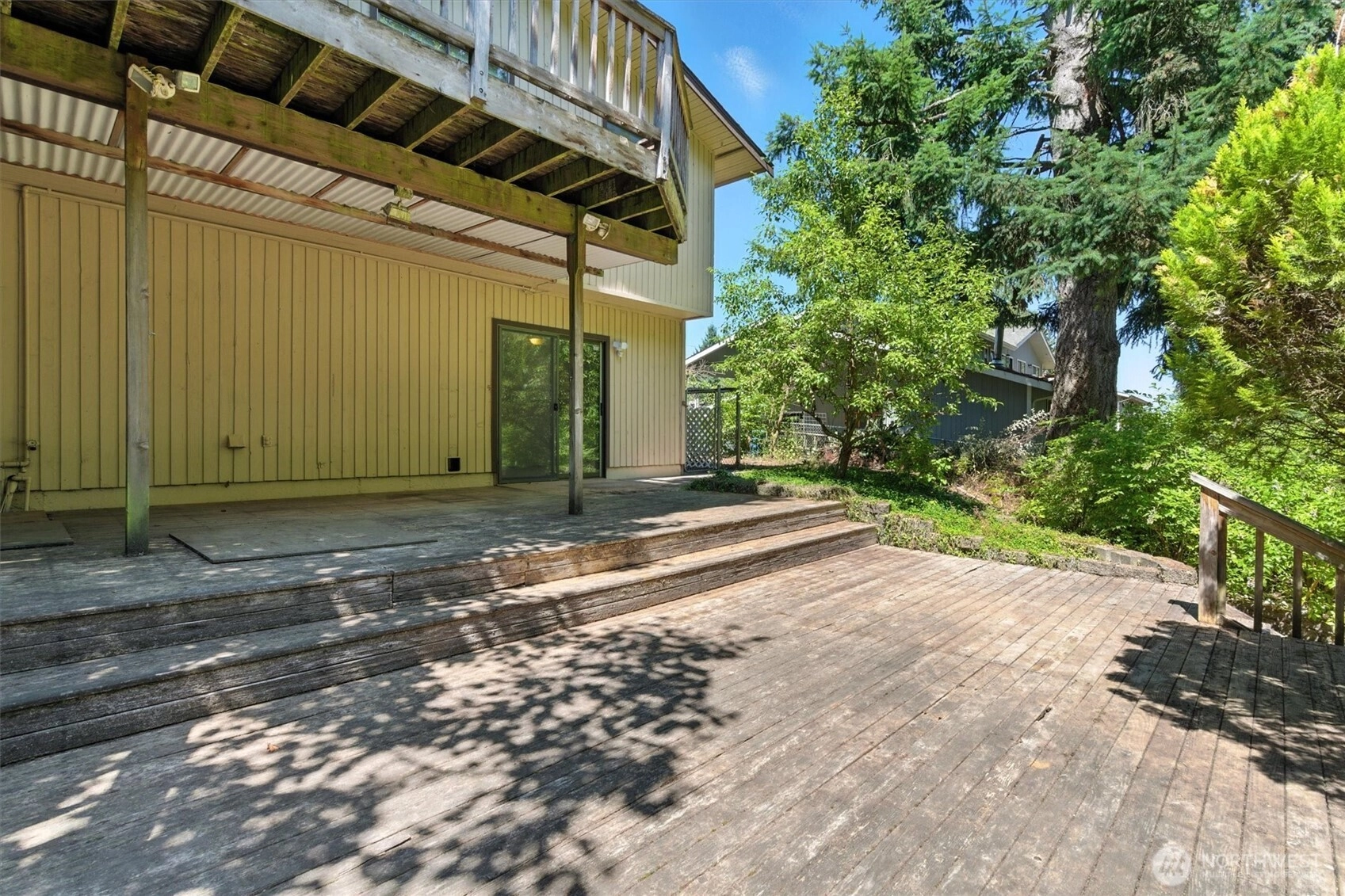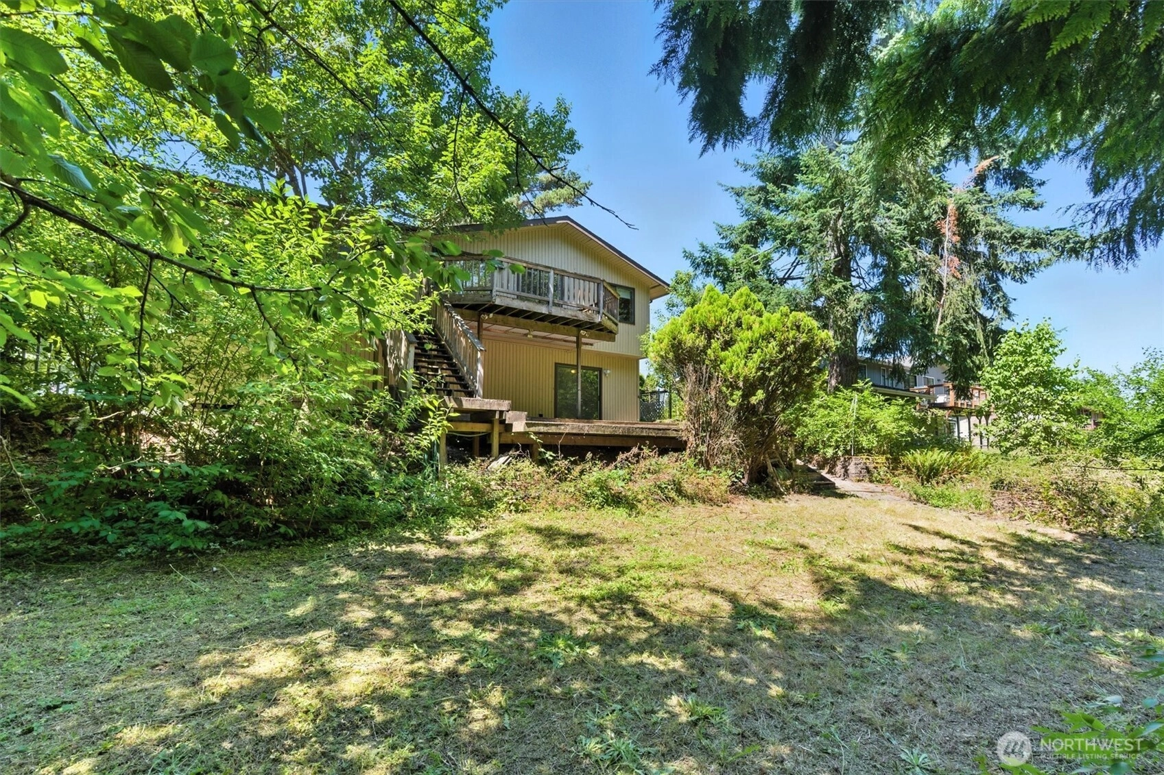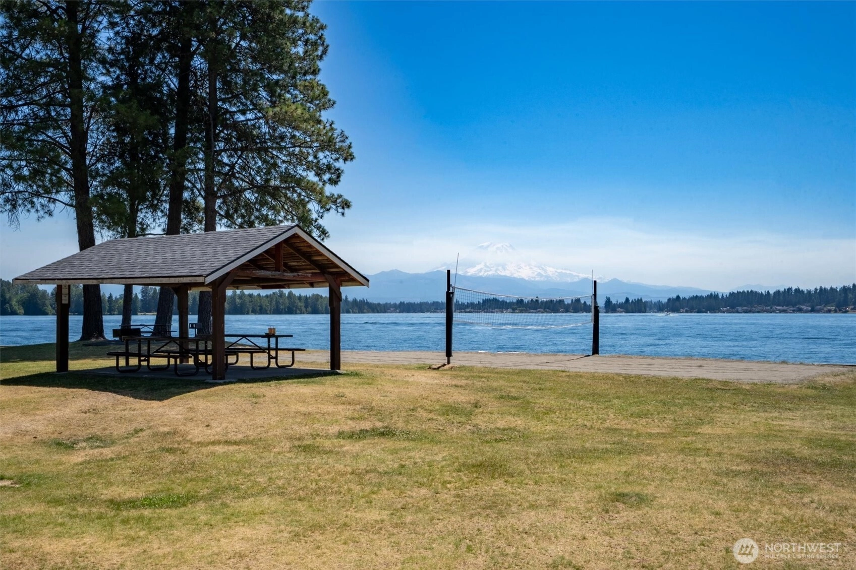 Welcome to island living! This home features plenty of room for everyone with 4 bedrooms, 3 bathrooms, and even an extra living space downstairs with a wet bar. Upstairs you have great vaulted ceiling in the living room, kitchen and dining room. The kitchen features tons of cabinets with sliding drawers for all the pots and pans you have. Outback you have a huge deck with mature blueberry bushes that you can't beat as well as Rainier cherry trees. You also have a large 12 by 30 foot carport for all the toys you need, a 2 car garage, and street parking as well. This home comes with private lake access to the best park on the lake with stunning mountain views, a boat launch, tennis and pickleball courts and so much more!