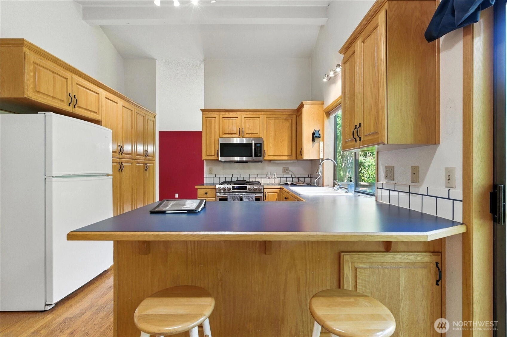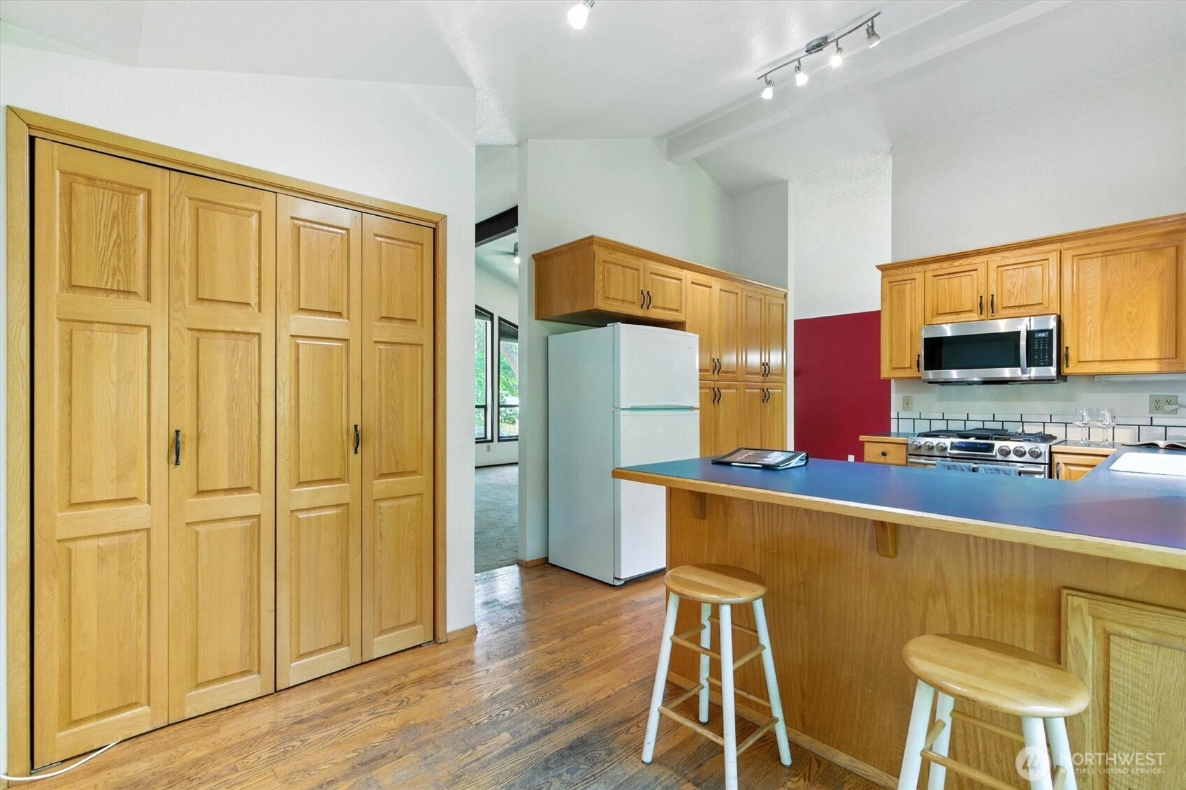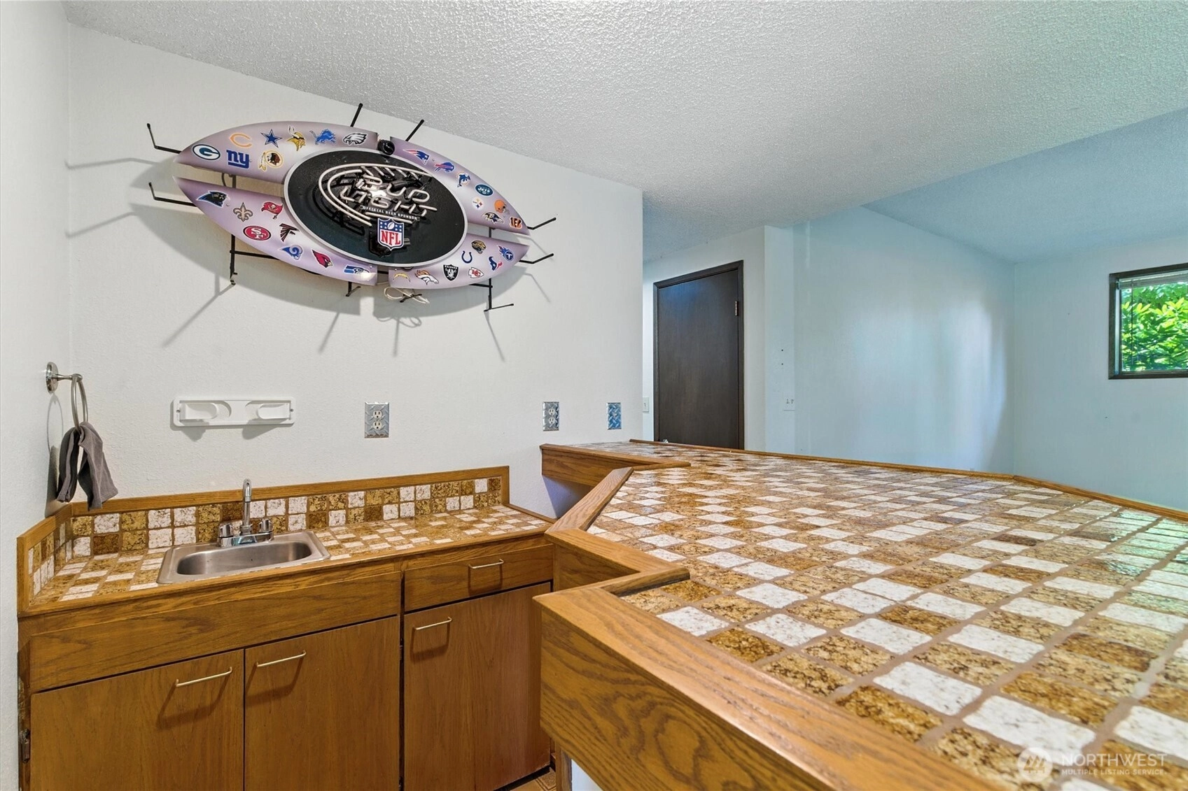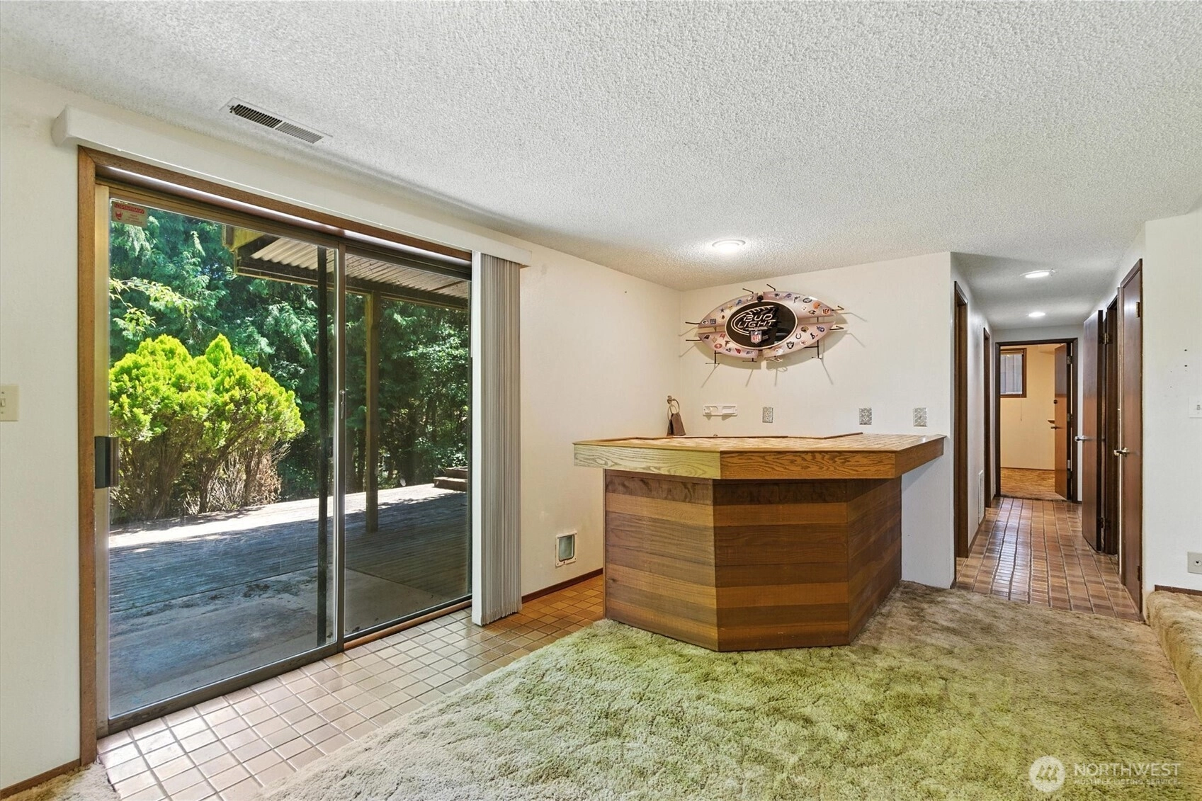 Welcome to island living! This home features plenty of room for everyone with 4 bedrooms, 3 bathrooms, and even an extra living space downstairs with a wet bar. Upstairs you have great vaulted ceiling in the living room, kitchen and dining room. The kitchen features tons of cabinets with sliding drawers for all the pots and pans you have. Outback you have a huge deck with mature blueberry bushes that you can't beat as well as Rainier cherry trees. You also have a large 12 by 30 foot carport for all the toys you need, a 2 car garage, and street parking as well. This home comes with private lake access to the best park on the lake with stunning mountain views, a boat launch, tennis and pickleball courts and so much more!