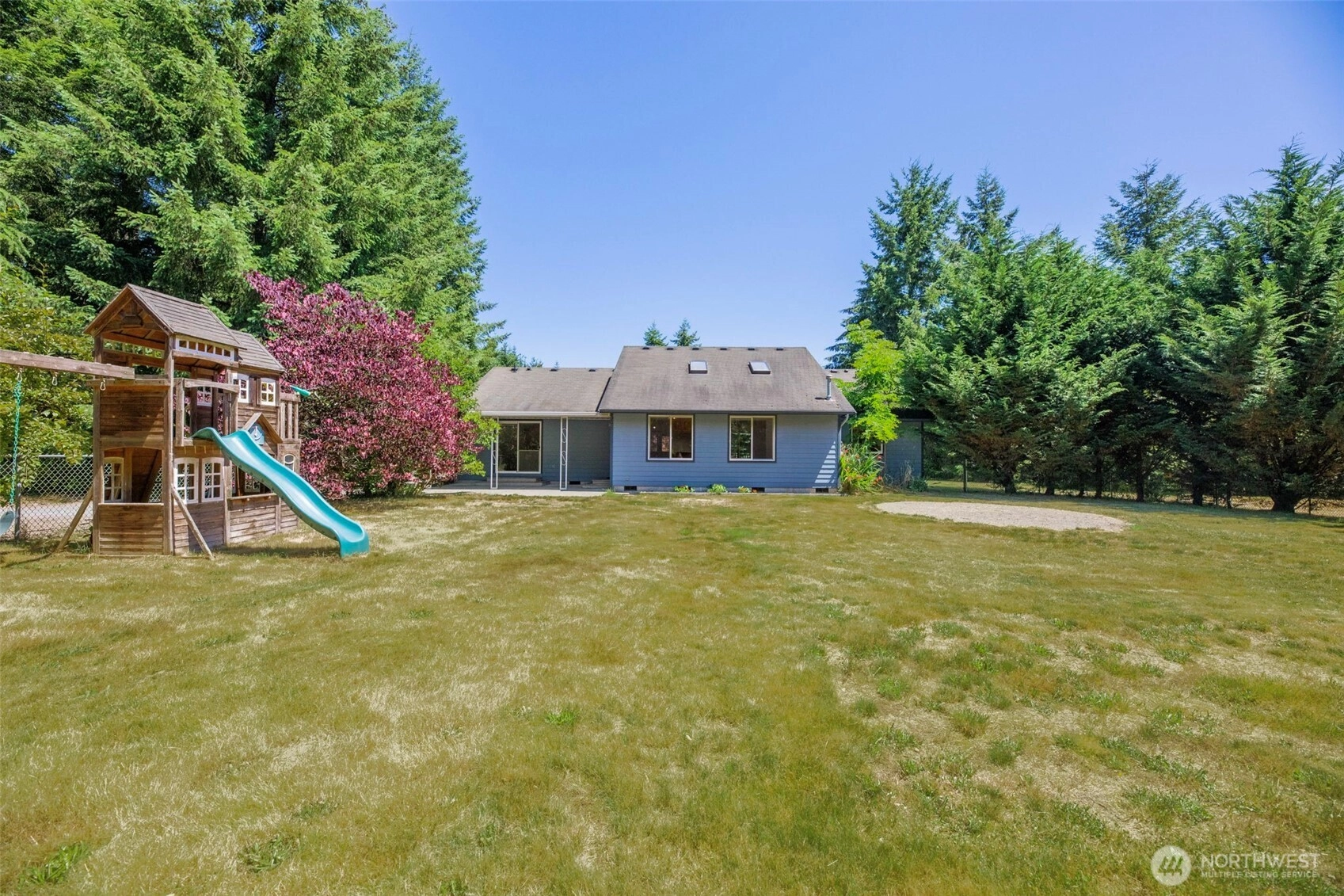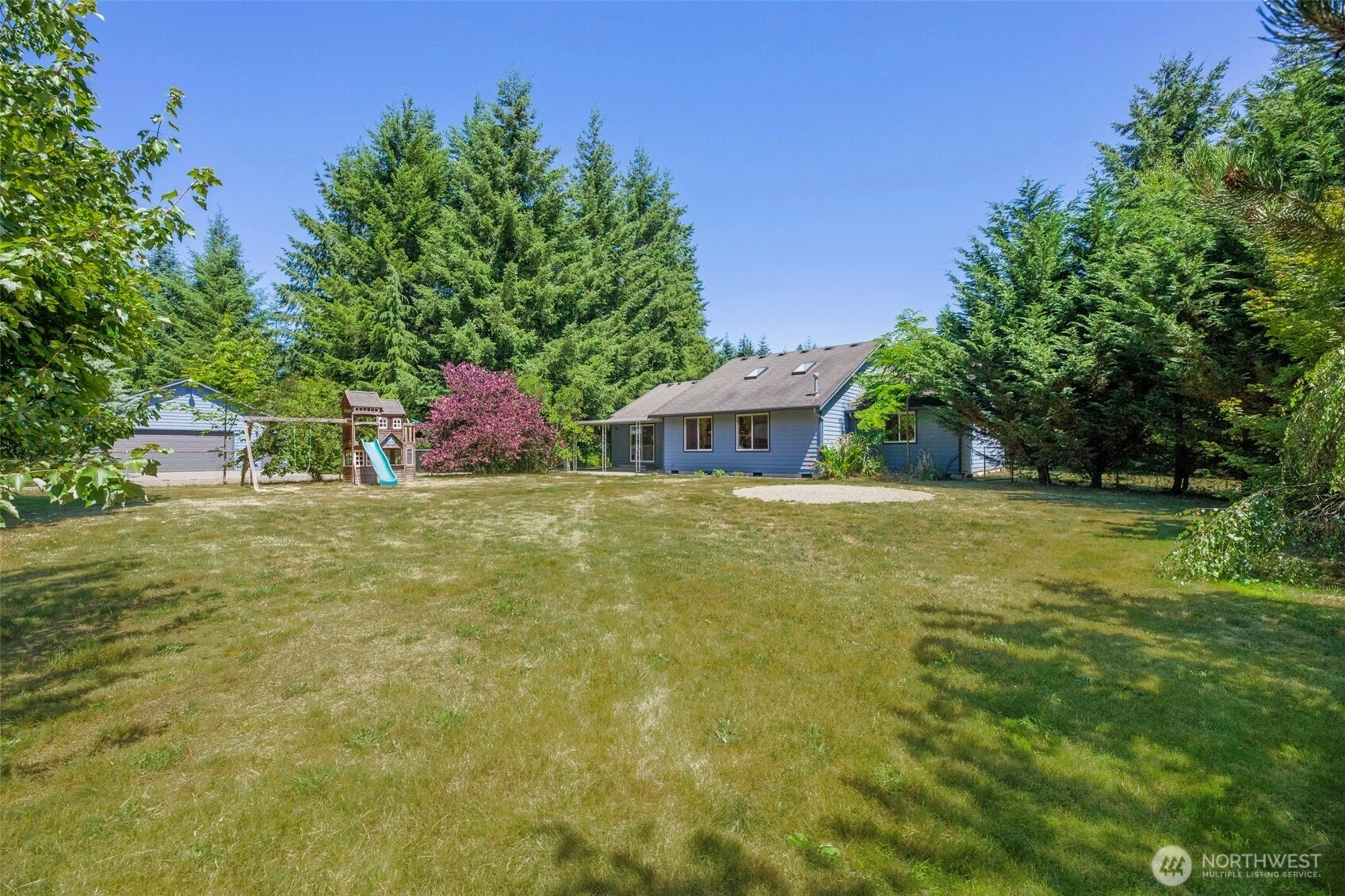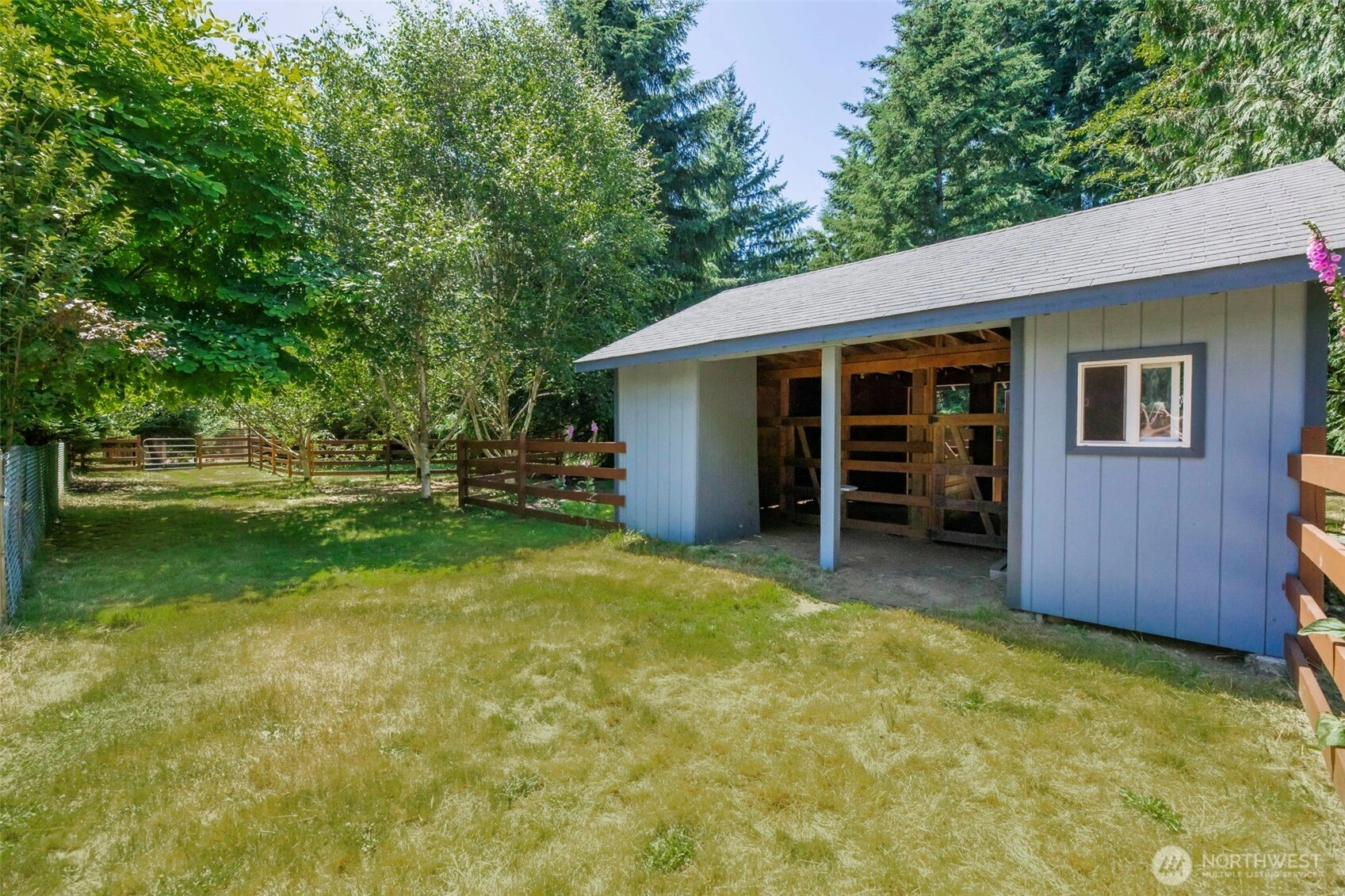 This charming 1,878 sq. ft. rambler offers a comfortable living space w/ 3 good sized bedrooms & 2.5 bathrooms. The property features an attached 2 car garage plus detached 696 sq.ft. 2 car shop, wired 200 amp w/ a heated storage room/office. Outdoor enthusiasts will appreciate the large organic garden, one of a kind chicken coop, fully fenced back yard with mature landscaping and sprinkler system on 2.5 flat, usable acres that provide plenty of space for activities on your private estate. This property includes 2 separate pastures and an 18x20 2 stall horse barn w/ a tack room. It boasts mountain views and backs against a greenbelt offering a peaceful and scenic setting with no homeowner's association to contend with.