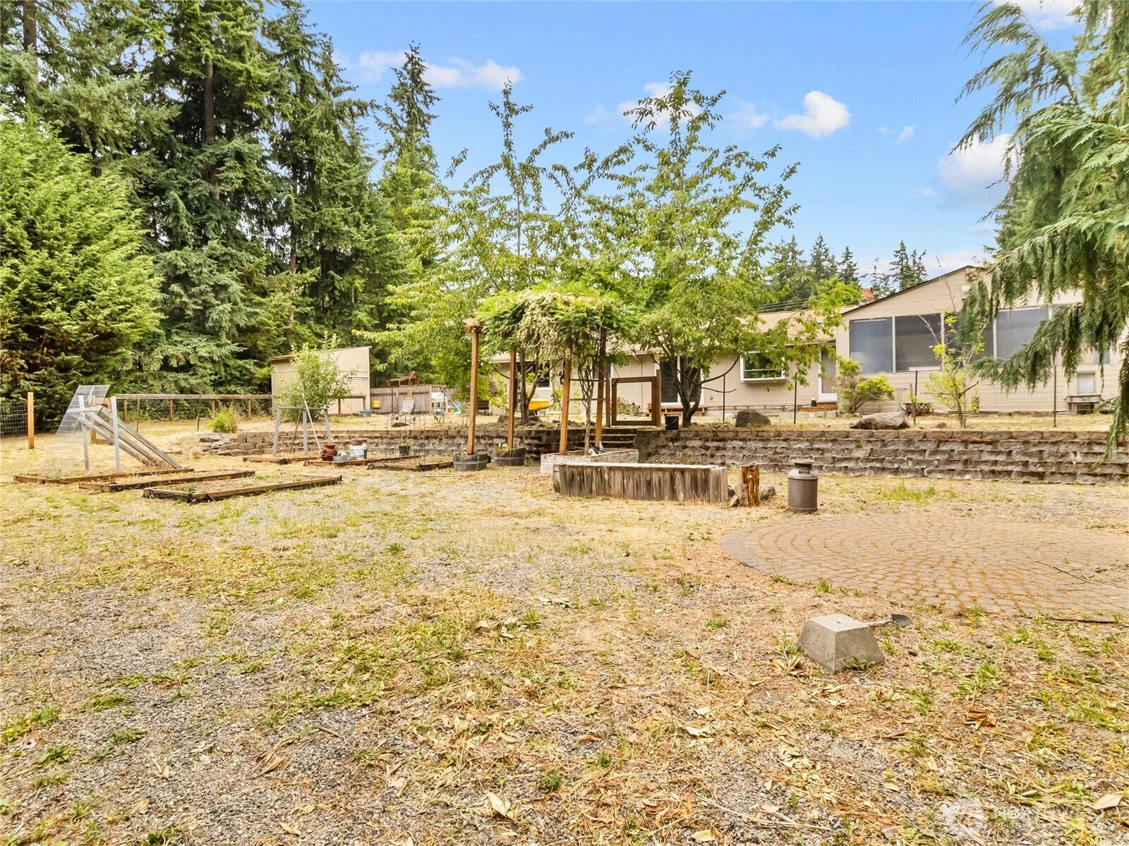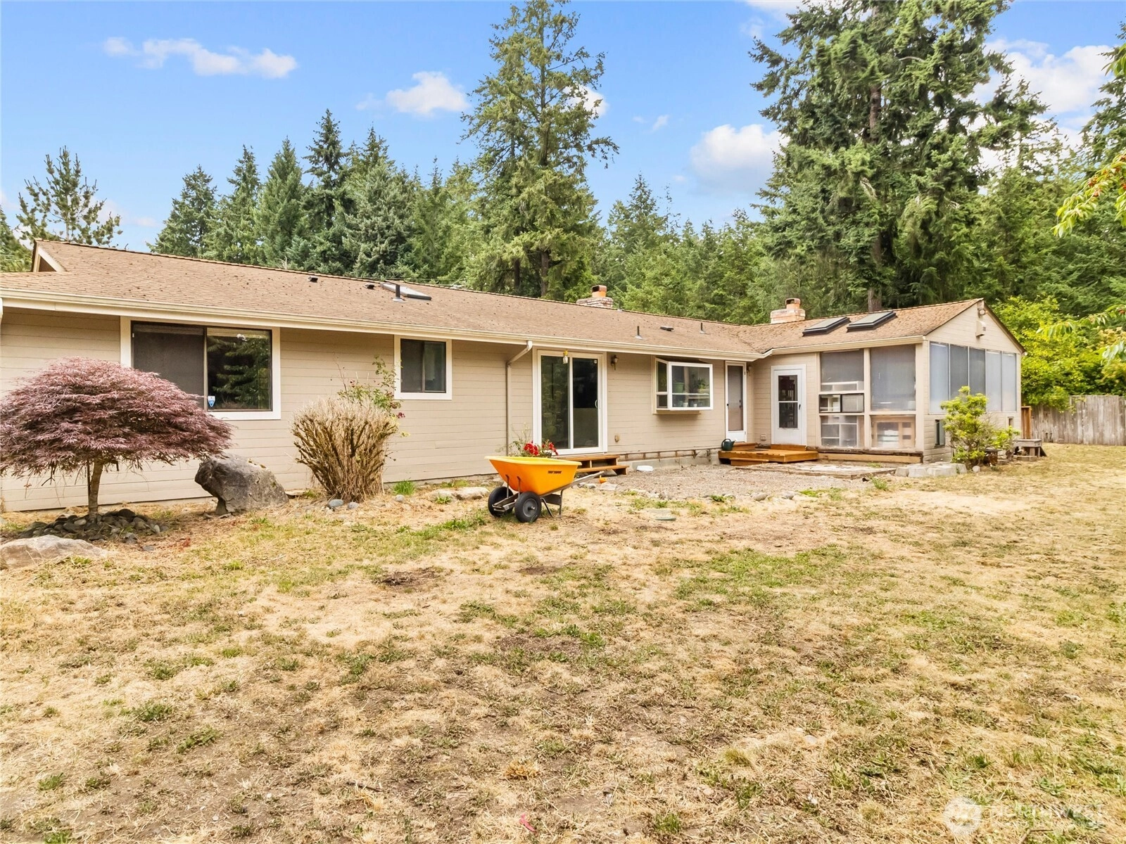 One story home on an acre. A Gardener’s Paradise Awaits! Embrace country living at its finest on this lush property, perfect for the green thumb enthusiast. With expansive garden space, mature fruit trees, and a large outbuilding to house all your tools and supplies, this home offers everything you need to cultivate your gardening dreams. Also a small fully fenced pasture with small hay barn & potential space for a horse or two. A newer shed/shop w/power perfect for a craft room or small at home business. Inside, you’ll find a well-maintained 3-bedroom, 2.75-bath home featuring a versatile bonus room/4th bedroom and a bright sunroom—ideal for relaxing or entertaining. This property is truly a self-sustaining retreat!