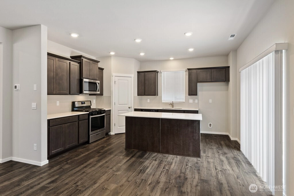 Bakerview is a stunning new home community featuring amenities such as Pickleball courts, Basketball court, playgrounds, picnic structures and tree lined sidewalks. The Ballard has all of the components that make this floorplan large enough to spread out but also defined and useable. This home is finished with light color painted cabinets and extended laminate flooring on the main. The main floor bedroom and ¾ bath adds tremendous value to this home along with the A/C, 240Volt outlet in the garage, home automation package and timeless kitchen appointments such as island, gas cooking w/stainless appliances, slab quartz counters and more. 1-2-10 year warranty. Buyers must register their broker on site at first visit, including open houses.