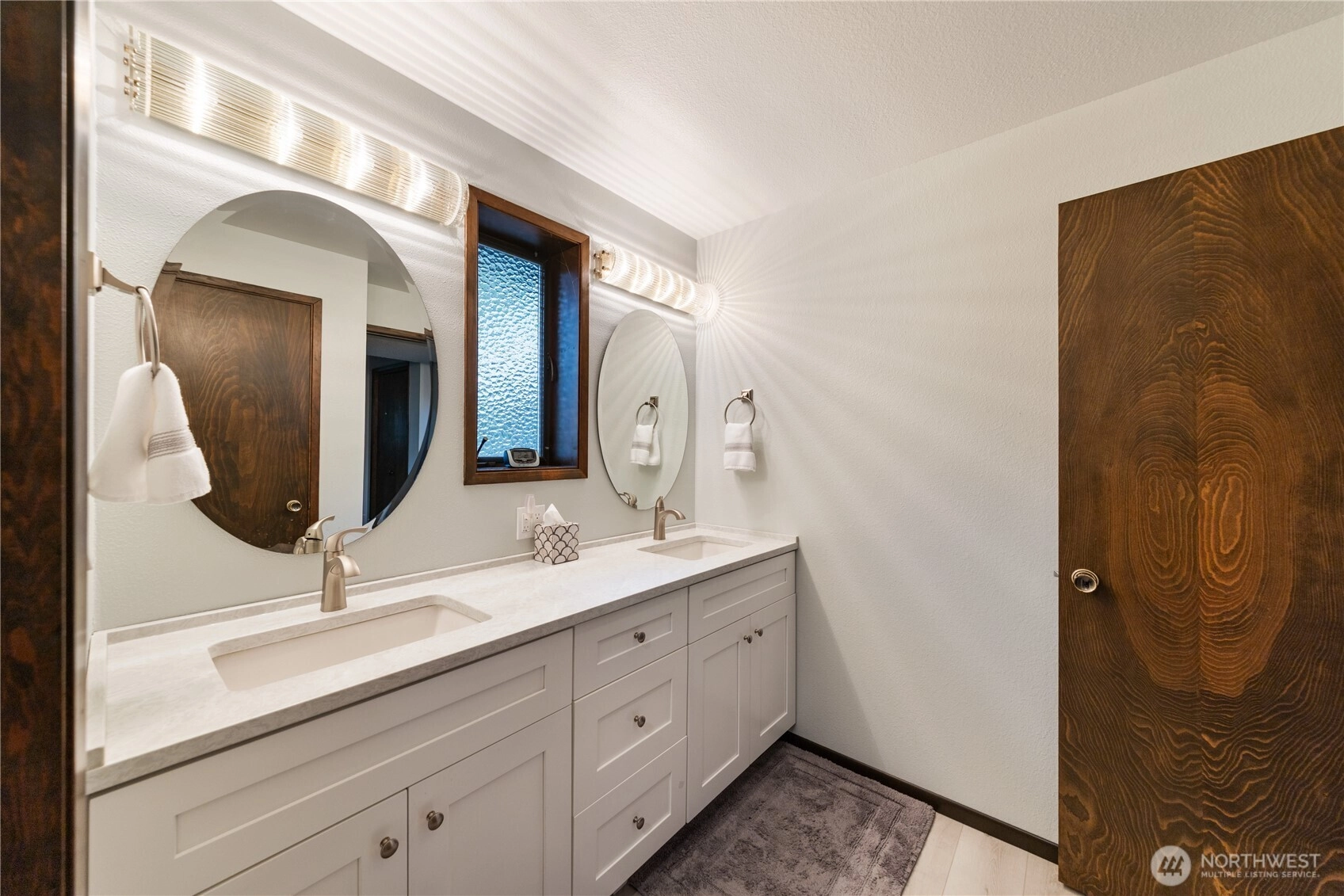 Spacious home in a well-loved neighborhood, just steps from local schools. The remodeled kitchen shines with quartz counters, stainless steel appliances, Shaker cabinets, and a large prep island with power & seating for four—perfect for gathering. Natural light shines through on both levels through the double paned floor to ceiling windows in the living, dining and family rooms. Downstairs, a large family room opens to the backyard patio, ideal for relaxing or entertaining. Two more bedrooms, a full bath, and a laundry room with extra storage complete the lower level. With stylish updates, flexible living space, and a prime location, this home offers comfort and convenience for everyday living. Easy access to NAS Whidbey and downtown.