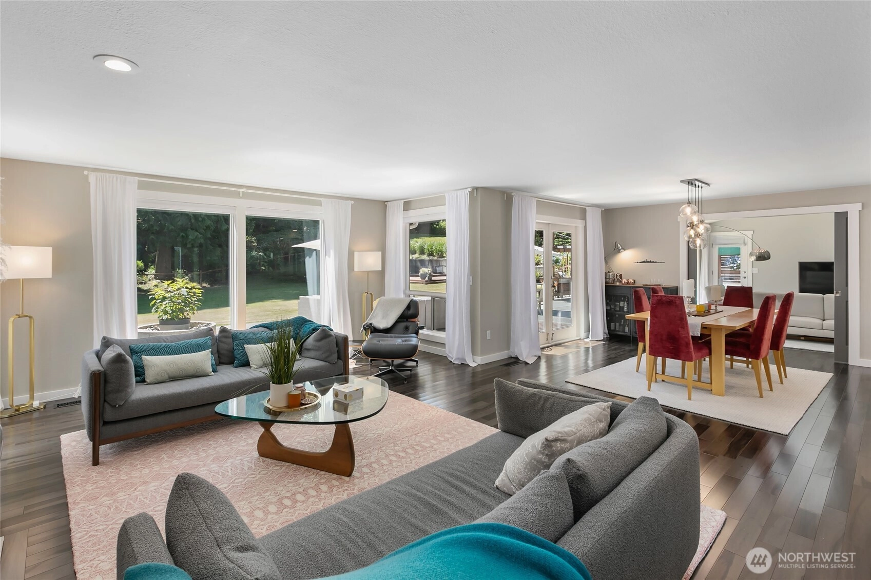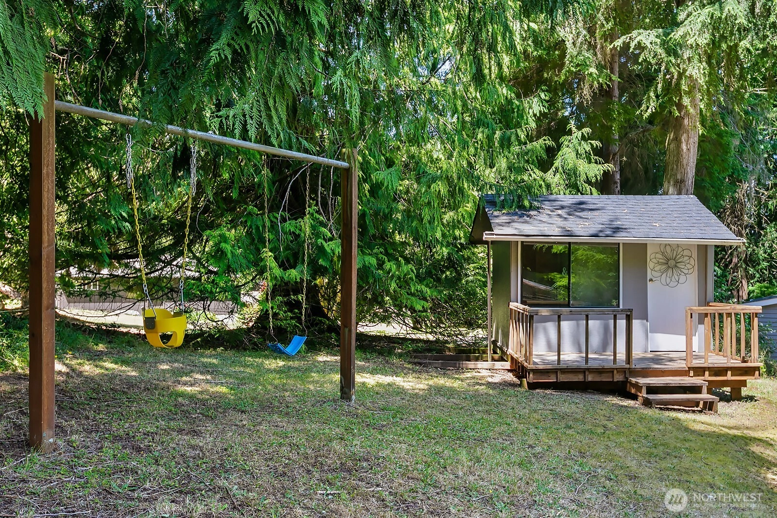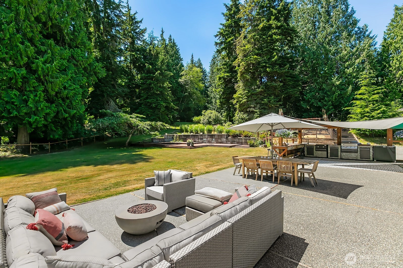 Exquisite 5.4-acre estate just minutes from downtown Langley. Stunning remodeled rambler designed for modern indoor/outdoor living. Contemporary design features pecan hardwoods, custom cabinetry & quartz counters throughout. Open concept living offers a seamless, flowing floorplan, connecting kitchen, living, dining & family room to the outdoor spaces. Three generous bedrooms & an idyllic 429 sq ft hot tub/spa retreat. The lot is an entertainer, gardener or hobbyist's dream w spacious patio, covered outdoor kitchen & bar, stage style decking, fenced in rear yard as well as fruit trees, raised beds, meadow, chicken coop, 1152 sq ft workshop & charming playhouse. Preinspected, newer roof & septic, low-e windows make it move in ready!