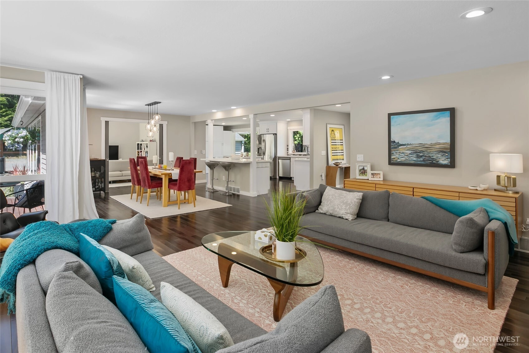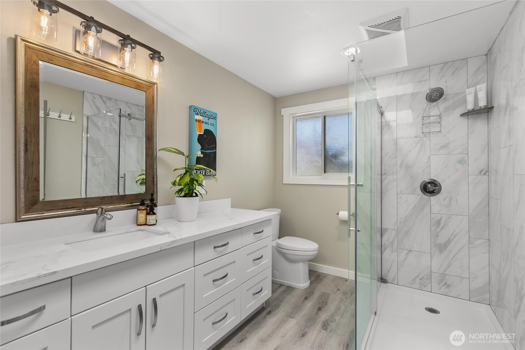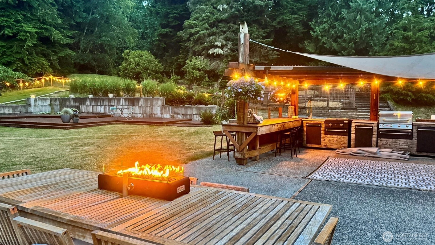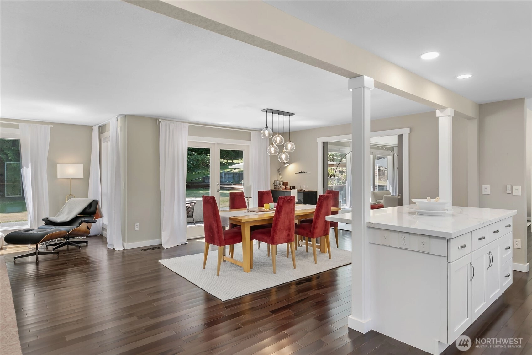 Exquisite 5.4-acre estate just minutes from downtown Langley. Stunning remodeled rambler designed for modern indoor/outdoor living. Contemporary design features pecan hardwoods, custom cabinetry & quartz counters throughout. Open concept living offers a seamless, flowing floorplan, connecting kitchen, living, dining & family room to the outdoor spaces. Three generous bedrooms & an idyllic 429 sq ft hot tub/spa retreat. The lot is an entertainer, gardener or hobbyist's dream w spacious patio, covered outdoor kitchen & bar, stage style decking, fenced in rear yard as well as fruit trees, raised beds, meadow, chicken coop, 1152 sq ft workshop & charming playhouse. Preinspected, newer roof & septic, low-e windows make it move in ready!