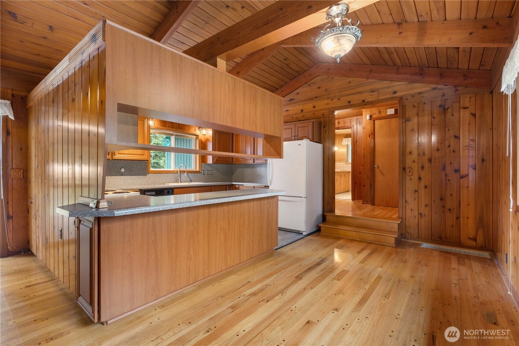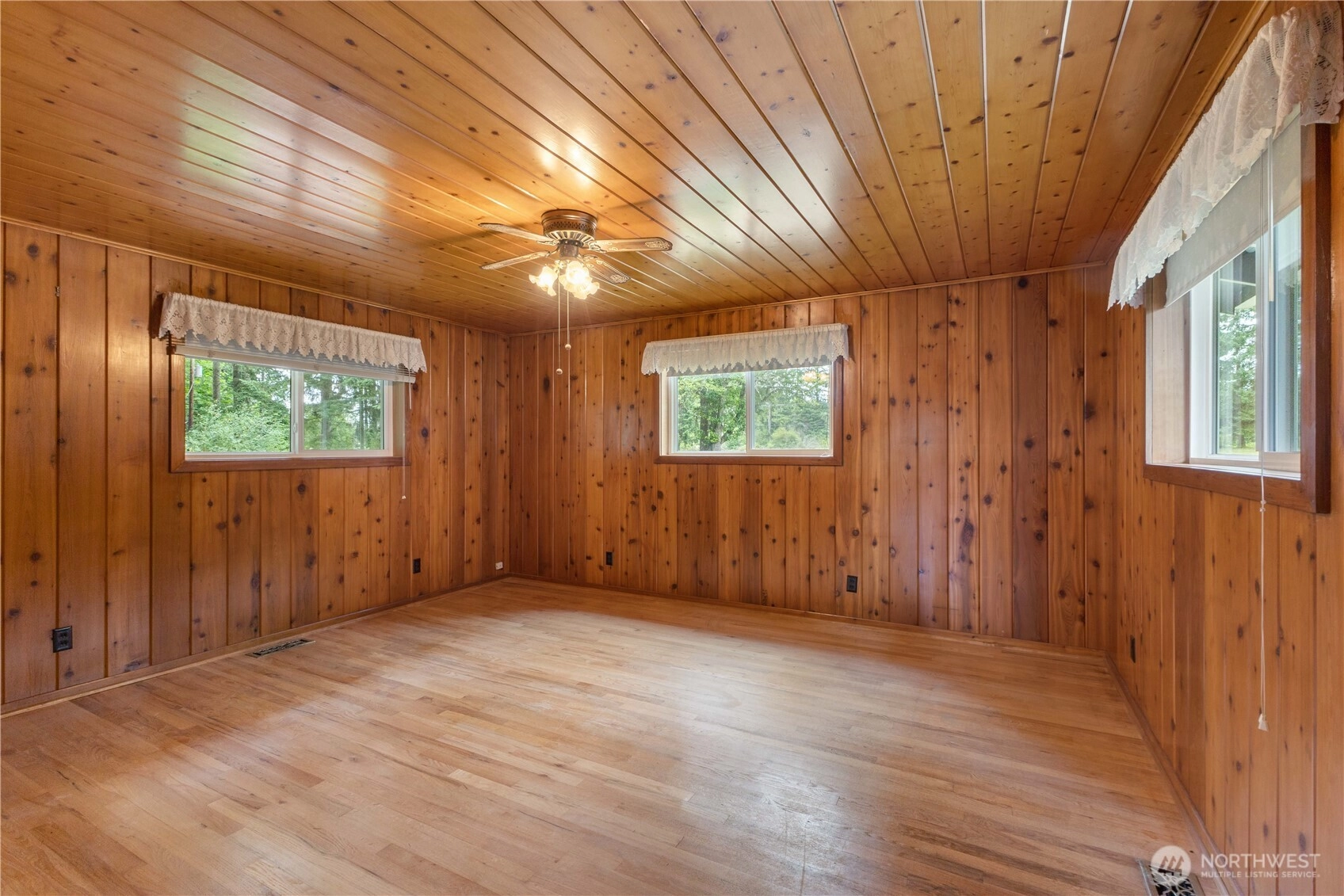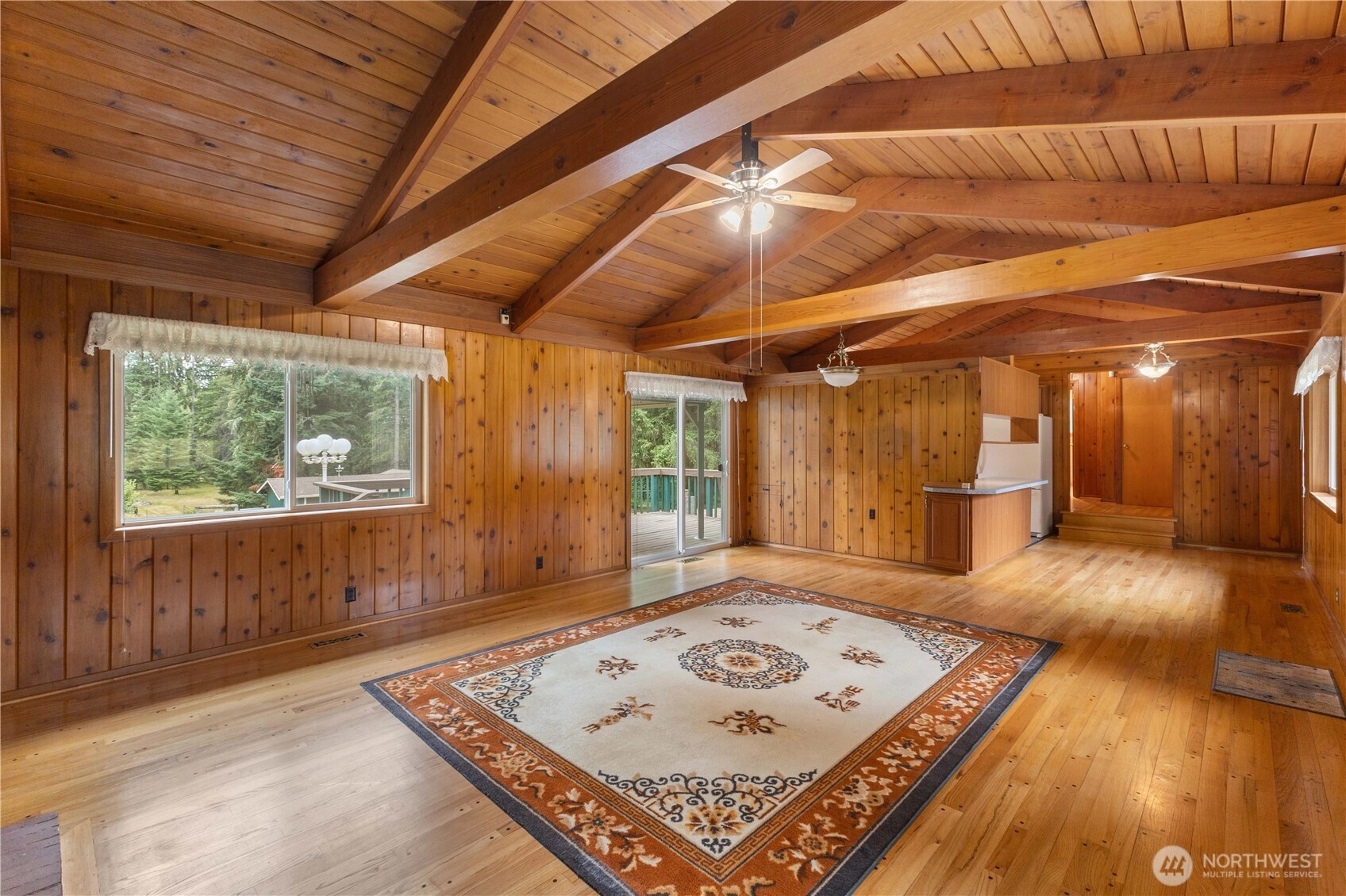 Experience country charm in this beautiful single-story home with a mostly finished basement on 9.7 usable acres. Featuring a cozy log cabin feel, it boasts tongue-and-groove wood walls, hardwood floors, and an updated kitchen. Recent upgrades include a newer furnace with heat pump, water heater, and roof. The main level offers two spacious bedrooms; the basement includes a 3/4 bath, sauna, and bonus space. Outside, enjoy cross-fenced pastures, a two-stall stable, gated entry, paved drive, and a large carport plus attached garage. A private well with filtration system completes this peaceful retreat