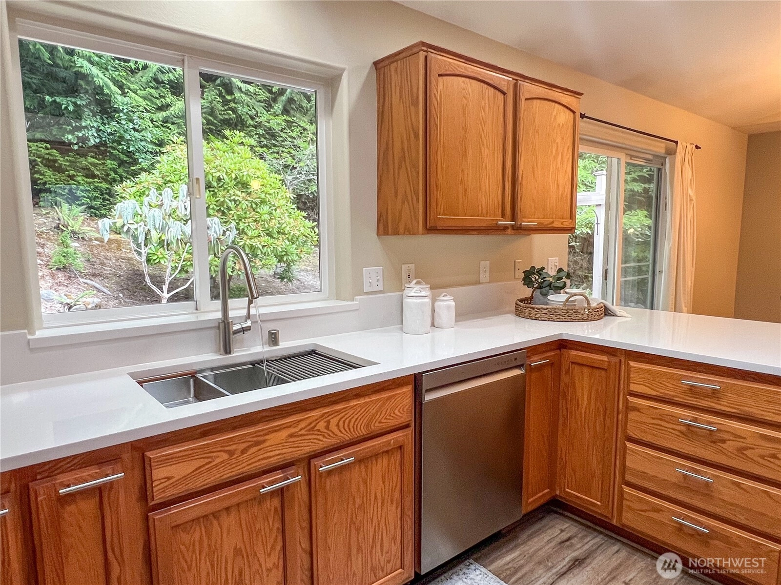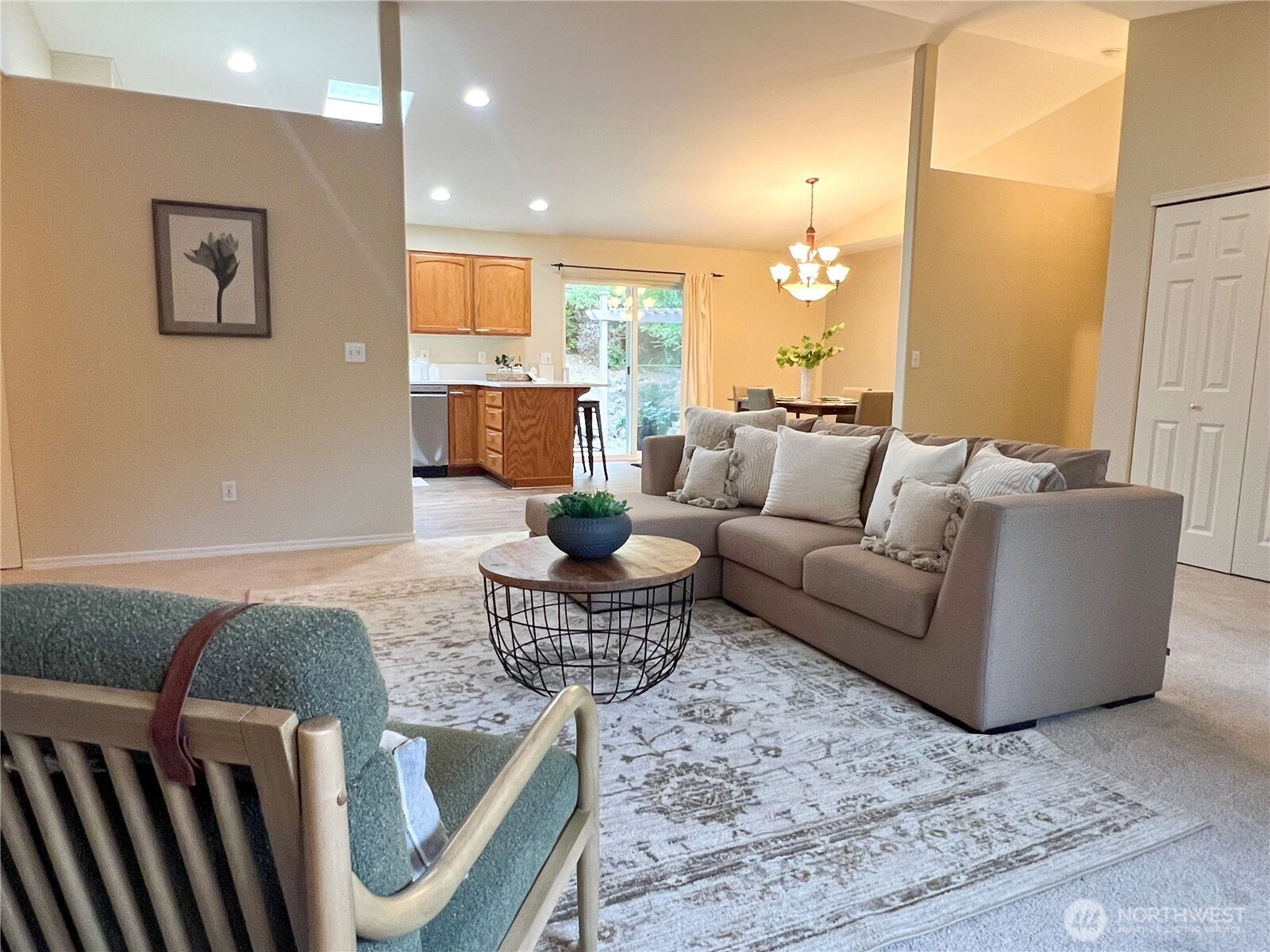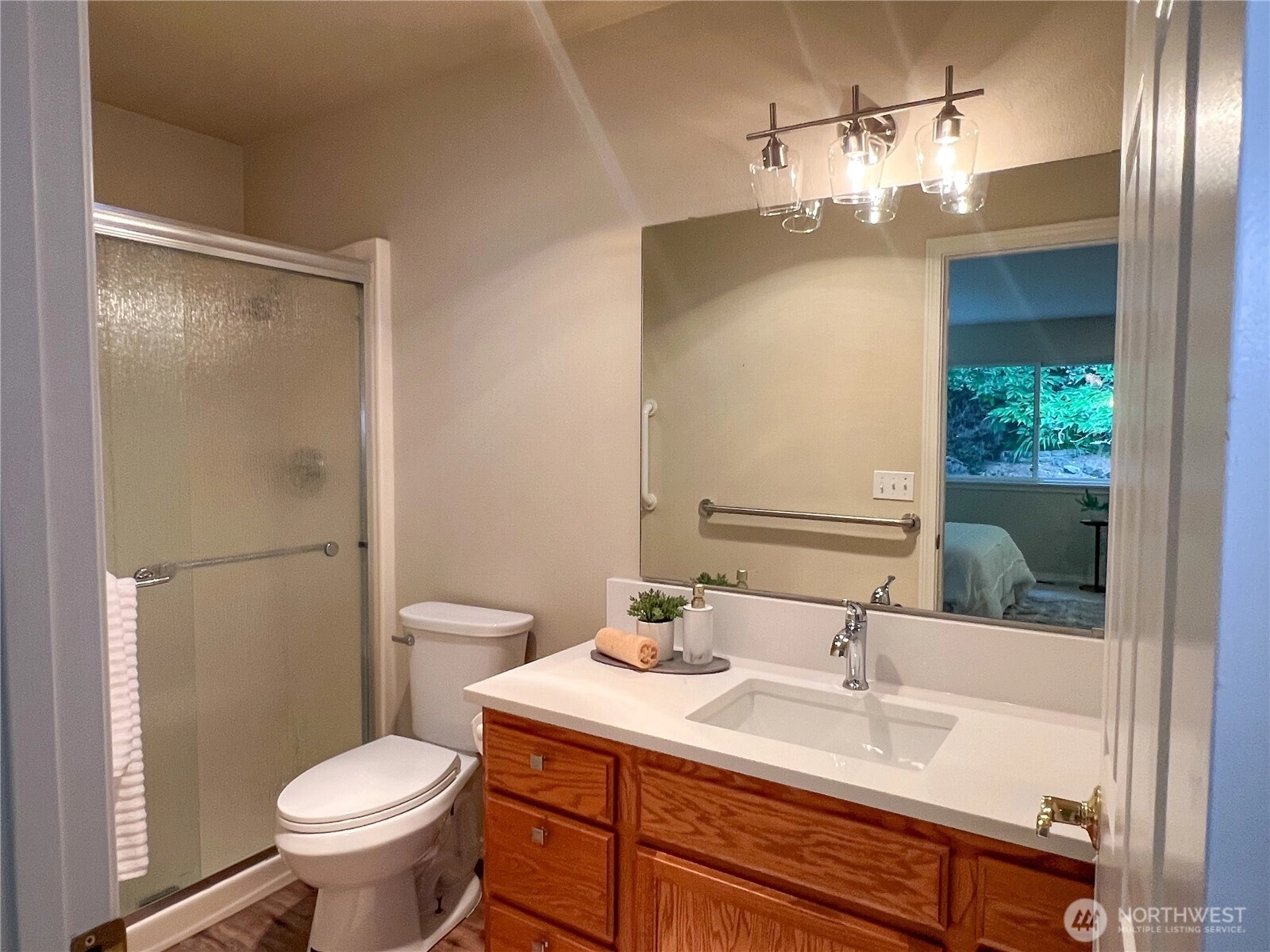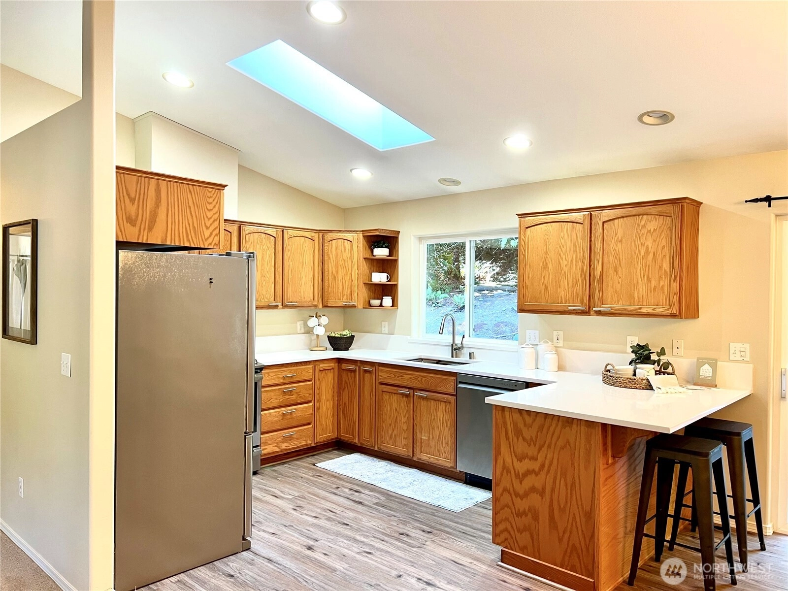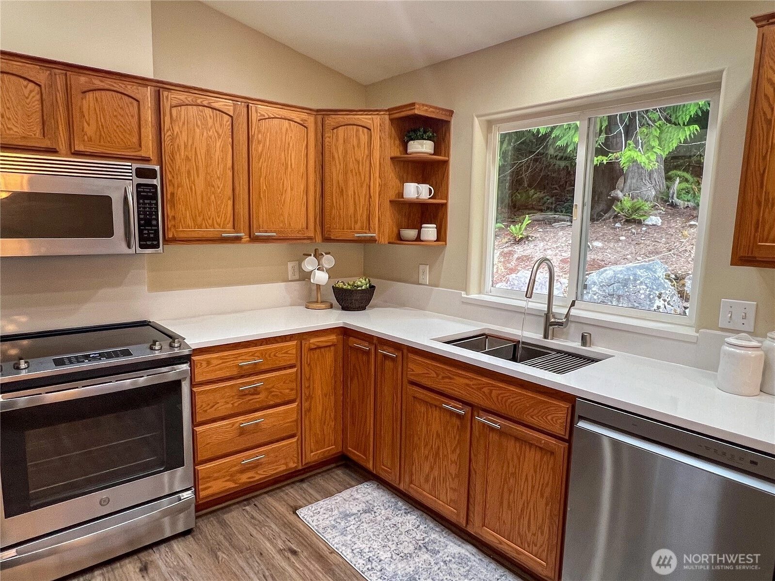 Price adjustment! Nestled on a private lot among the trees, this single-level welcoming 3 bed 1 3/4 bath home with an open floor-plan lives much larger than the square footage suggests. The bright kitchen with skylight features new quartz countertops, sink, faucet, and has stainless appliances. Dining room with a sliding door a private back patio. The spacious living room has a large window and gas fireplace. Private, generously sized primary suite. Spacious 2 car garage and side parking. Private lot, fenced front courtyard, just 2 minutes from the Inn at Port Ludlow, Marina, and Bay Club with its stunning views. Newly updated kitchen and baths, new fixtures, flooring and quartz counters throughout, this stunning home is move in ready!