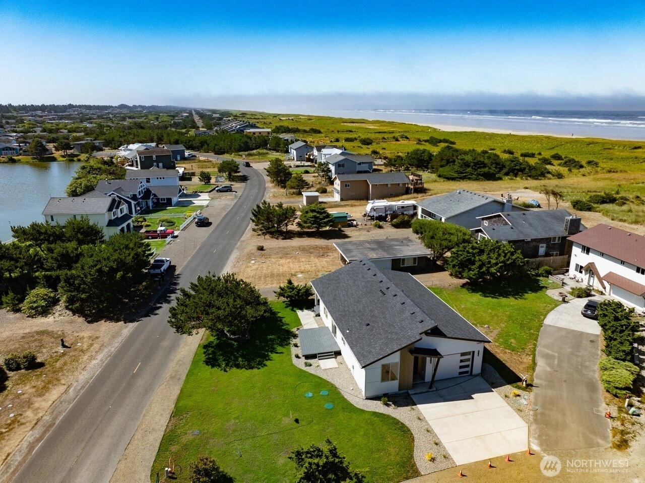 NEW PRICE! NEW CONSTRUCTION - This beautiful home is located on the North End of the Long Beach Peninsula in a quaint cul-de-sac with the beach trail next to the house. This One Level home in Surfside offers a Primary Ensuite w/unique lighting, walk-in closet, Primary Bath w/impressive tile shower, double vanity. Quartz countertops, under cabinet lighting, island with eating space, stainless appliances, guest bedroom, low maintenance landscaping, the open great room also has two sliders that open to Trex deck(s), beautiful propane fireplace, attached garage, all this and just a short walk to the beach! Long Beach is known for: kite flying, beach combing, walking/driving the beach, clam digging, beautiful sunsets, and more!