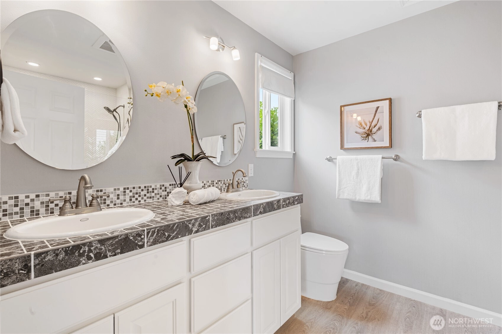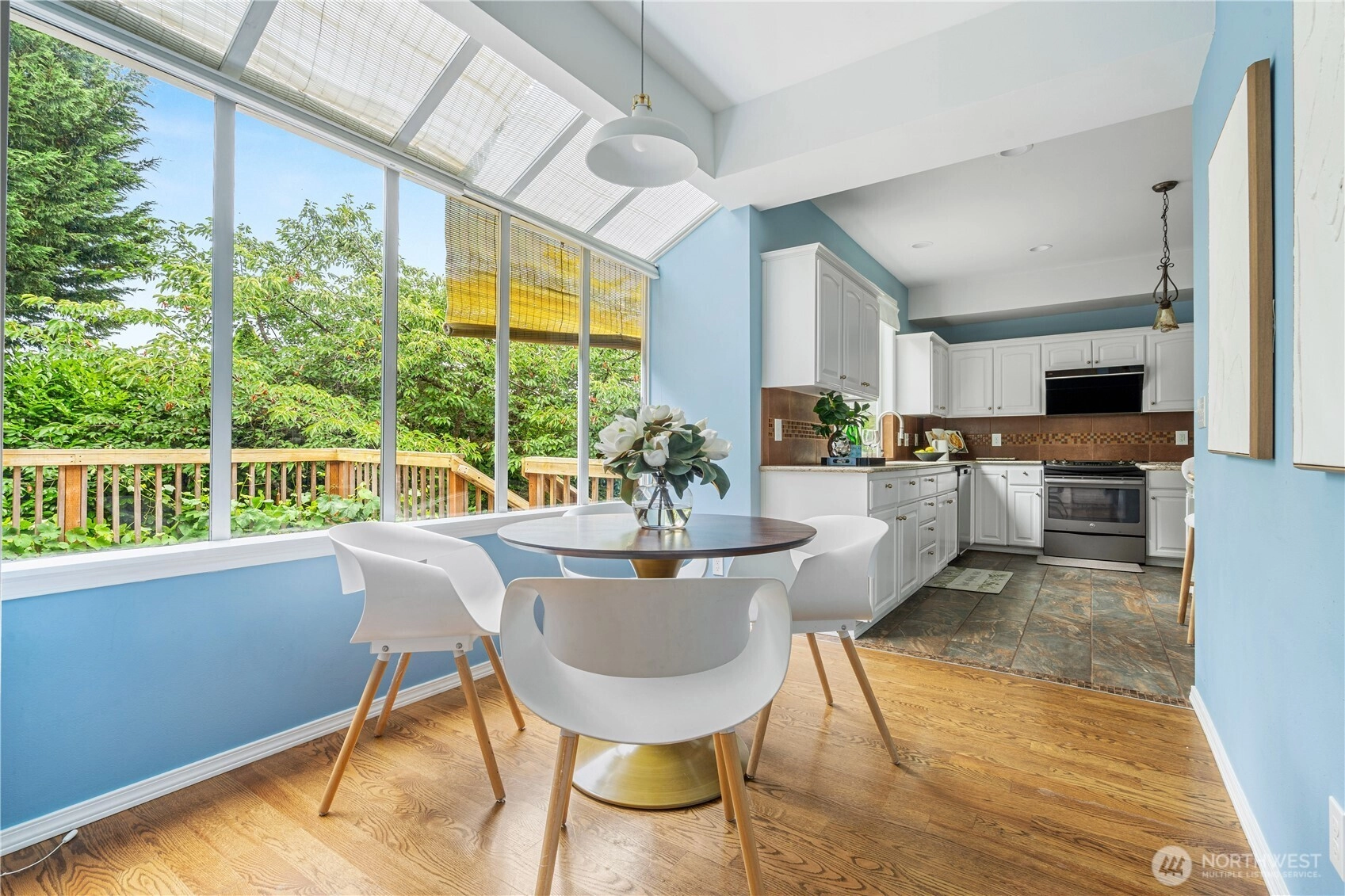 Price IMPROVEMENT! Must see this beautiful 2-story home in the convenient Fairwood area! Fully remodeled in 2016, it features hardwood floors on main level and vinyl on 2nd . Living and great rooms—both with gas fireplaces, and French doors to a large covered deck. Enjoy the breakfast nook with skywall, dream kitchen with cabinets, pantry, movable island, and counters—open to a large dining room. Flowing staircase leads to a primary suite with private bath, plus three nicely sized bedrooms, full bath, and HUGE BONUS ROOM with endless possibilities. Fully enclosed backyard with covered deck and patio. New dishwasher, new upstairs flooring, and more. Two-car garage with storage. Quiet neighborhood close to school and many amenities.