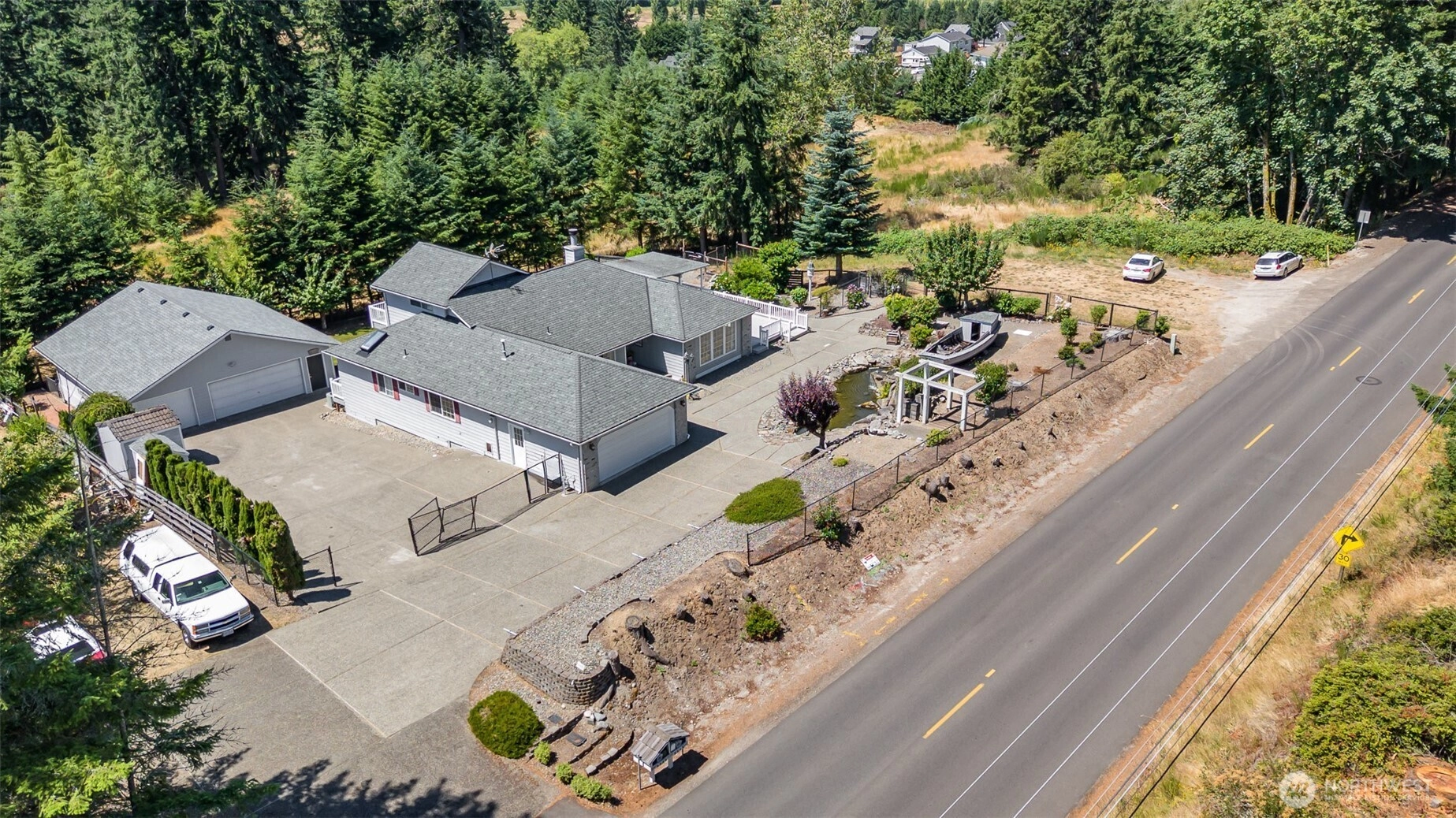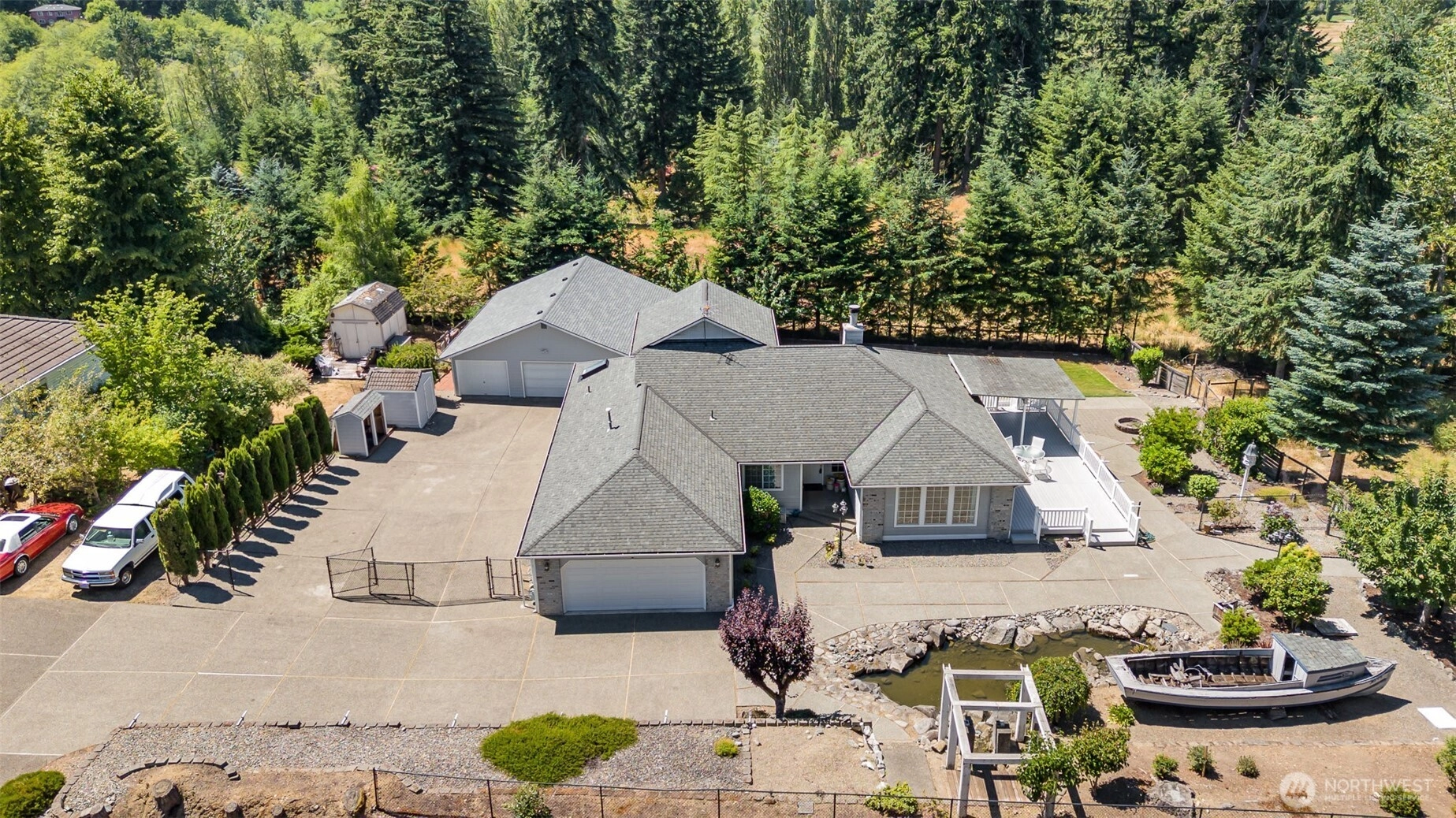 $50,000 PRICE REDUCTION! Unique 4BD/2BA home on nearly ½ acre in beautiful Port Orchard! Built in 1990, this 2,093 SF residence offers a spacious primary suite w/ 5-piece bath, soaking tub & direct access to a large Trex deck. Sunken living & family rooms, brick fireplace w/ hearth, wet bar, and bright kitchen w/ oak cabinets, island, terrarium window & deck access—ideal for indoor-outdoor living. Upper-level bedroom w/ private balcony is perfect for guests or home office. Features gas heat, hardwoods, full laundry room, 2-car garage & incredible heated 6-bay workshop. Landscaped yard w/ tranquil pond & waterfall. A rare, versatile find!