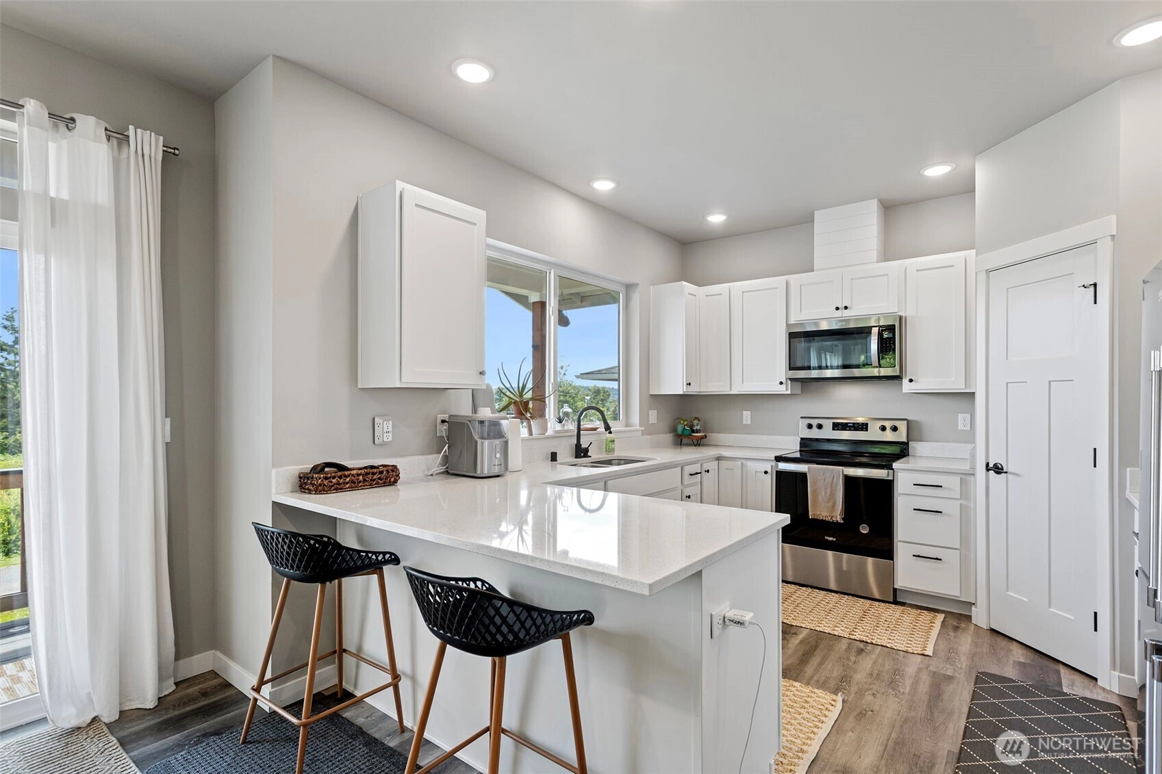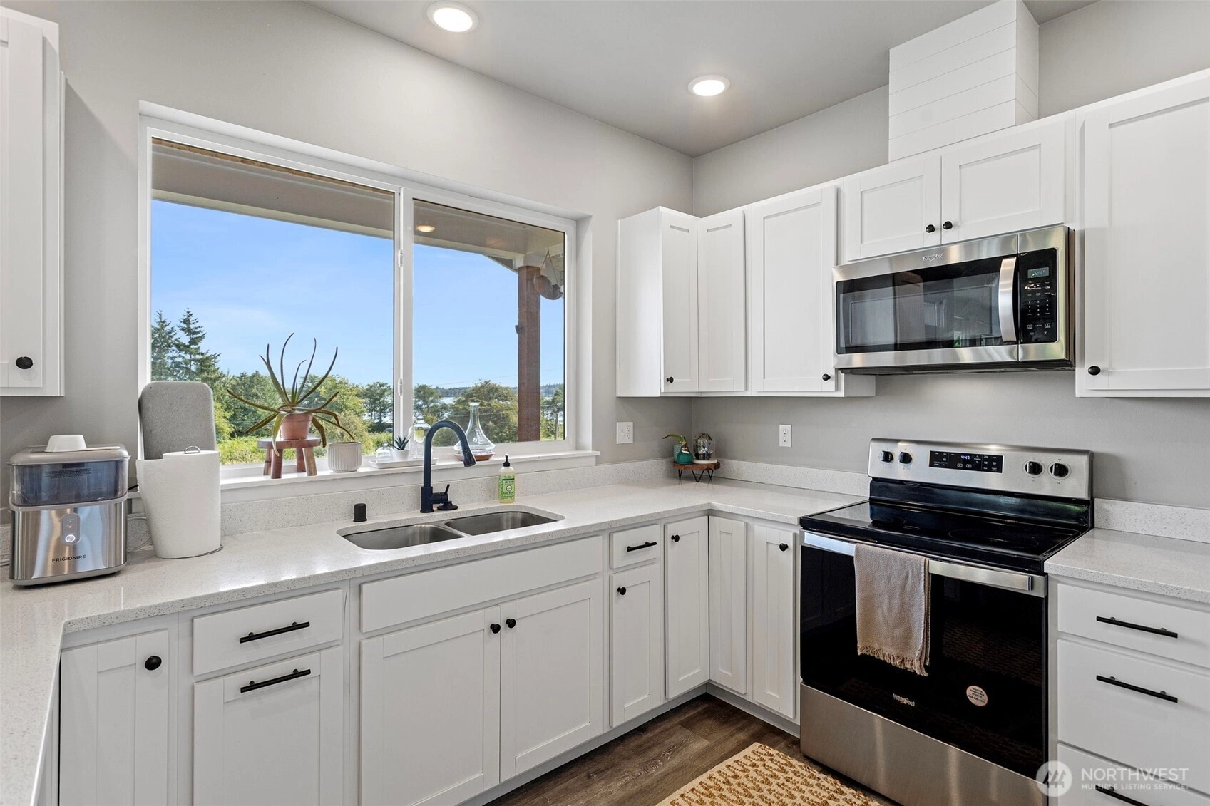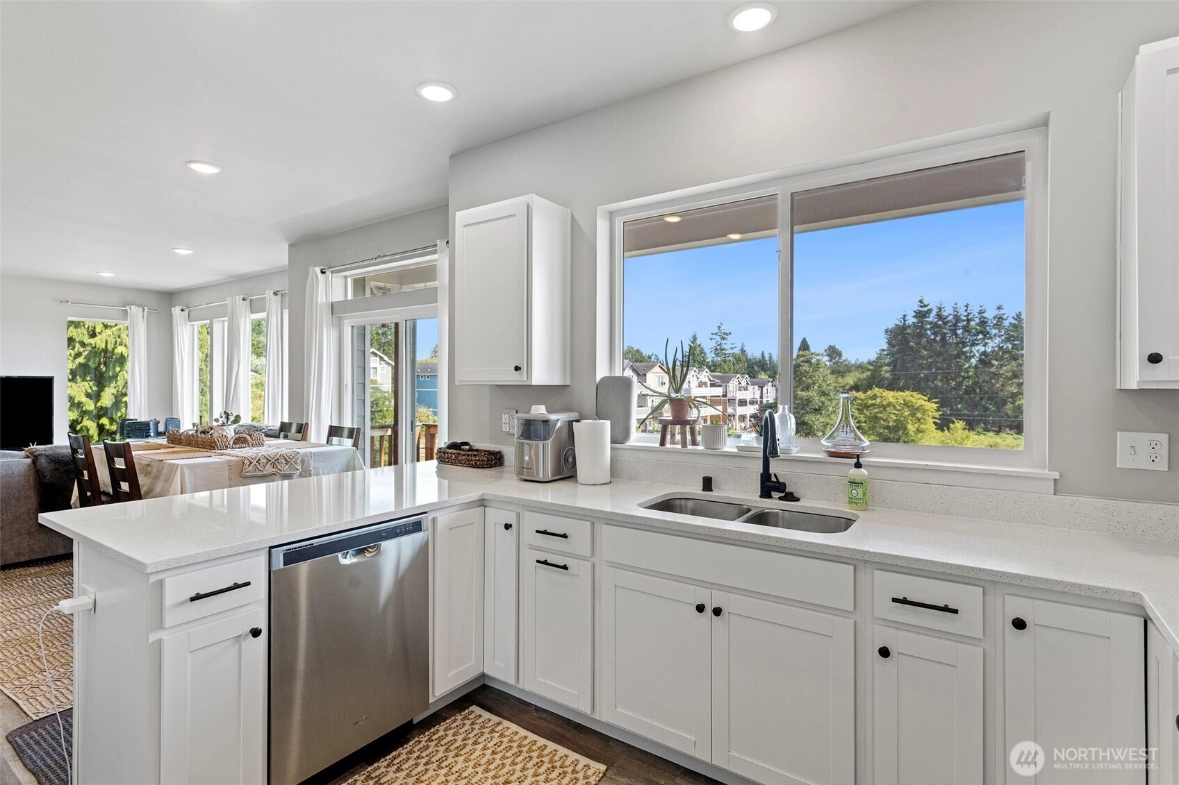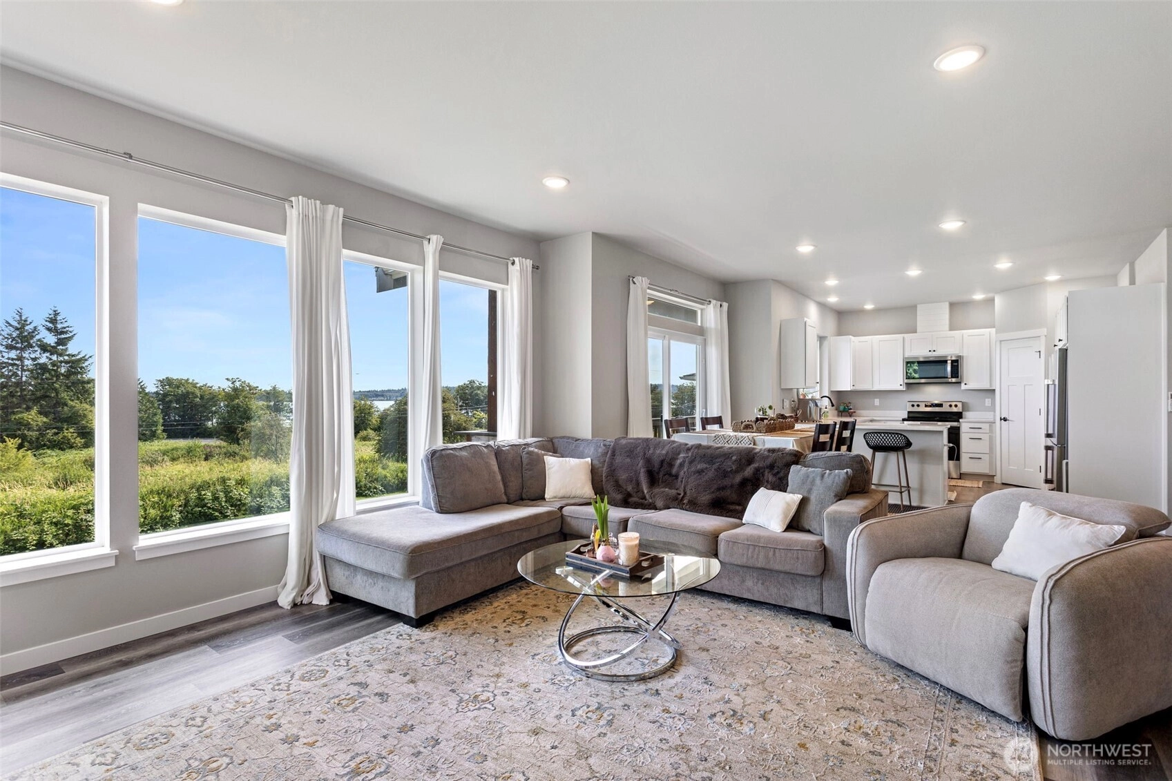 Charming Resale with Drayton Harbor Views! Nestled just 1 block above Drayton Harbor in Blaine & minutes from I-5 exit 274, this home offers breathtaking views & a prime location. With 9-foot ceilings, open-concept living, kitchen, & dining spaces create a bright & airy feel, all while overlooking the stunning harbor. The kitchen is well-equipped with quartz countertops, a double refrigerator/freezer, & a convenient pantry. The primary suite features a spacious en-suite bath & walk-in closet. Enjoy your morning coffee or take in the sunset from the upper deck. The daylight basement adds additional living space with plenty of natural light. Located close to town, parks, & schools, this home provides both comfort & convenience. A must-see!
