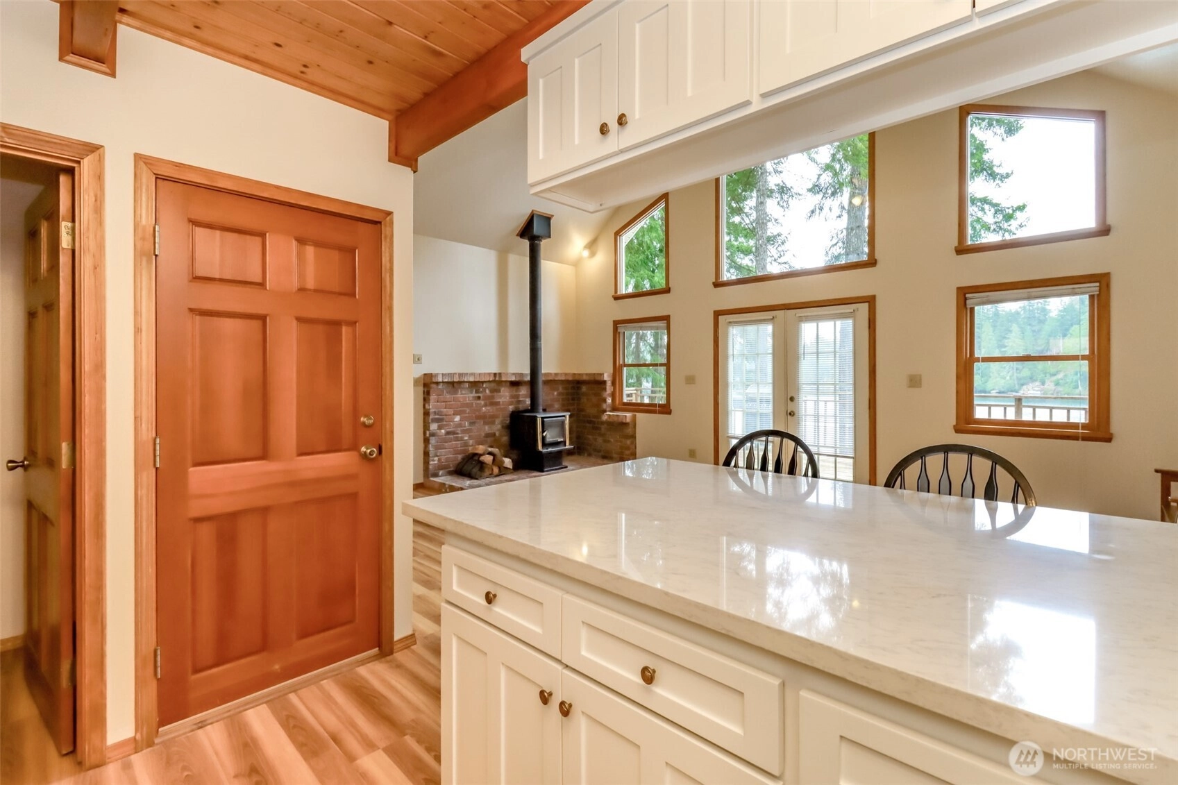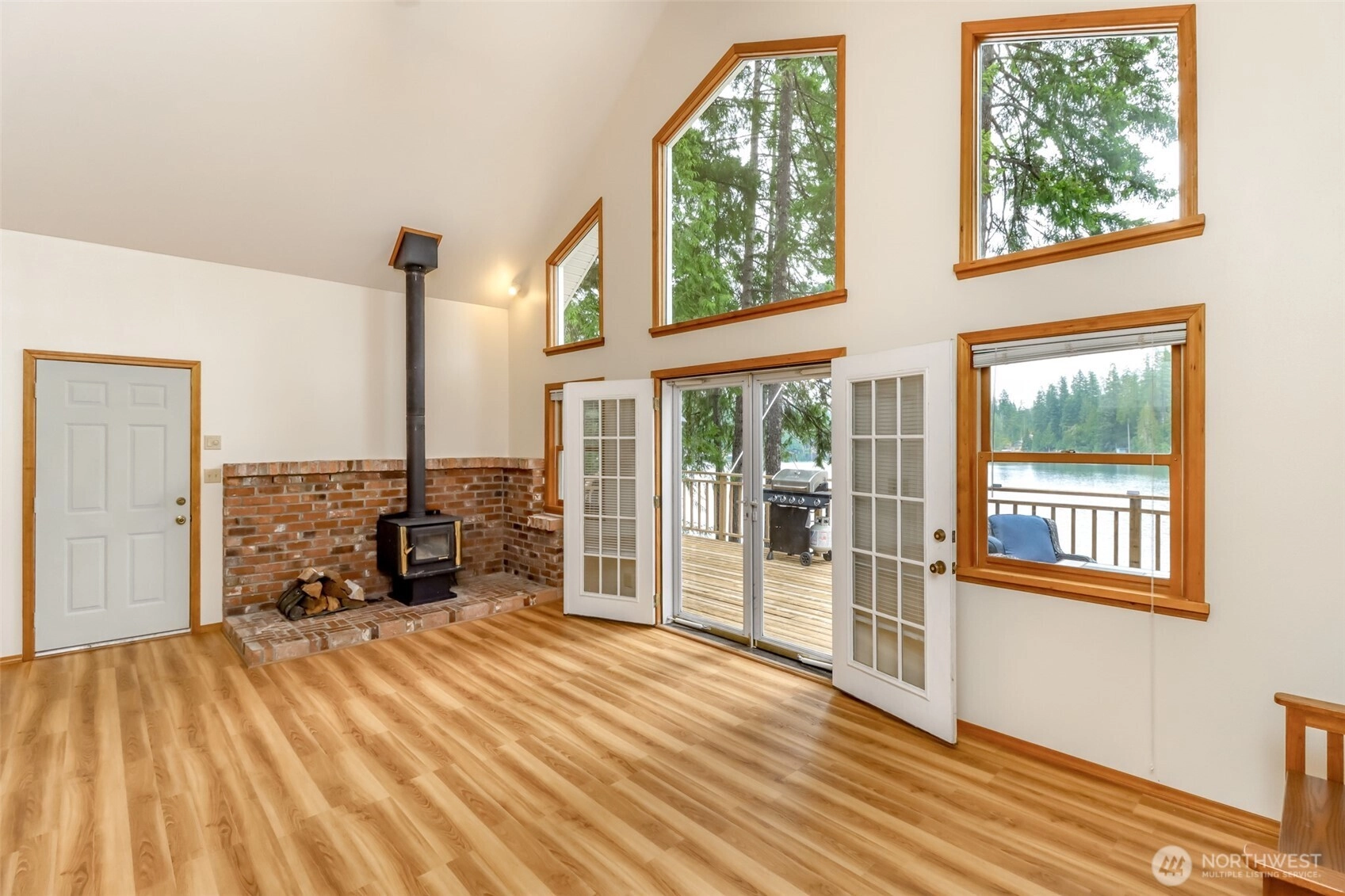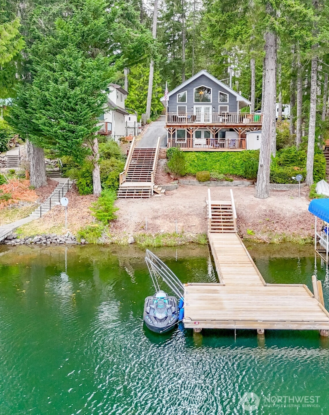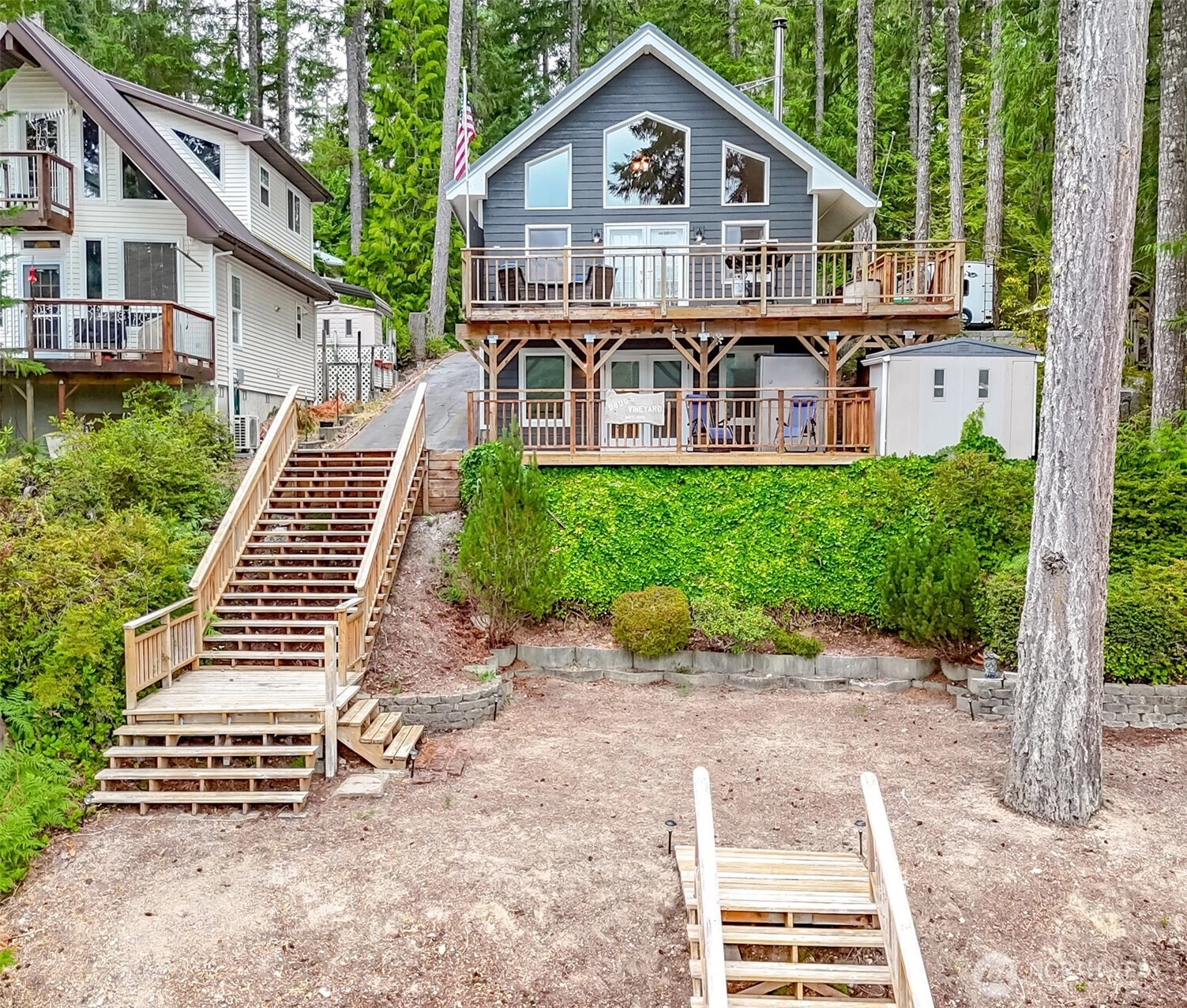 Escape to this beautifully remodeled lakefront home! Ideal as a year-round residence or peaceful vacation escape, this one-of-a-kind property is your invitation to the lake life you've been dreaming of. This home perfectly combines modern updates with lakeside charm. Built with durable Diamond Kote siding, enjoy 2 bedrooms, a finished office/den with closet, and a spacious loft—plenty of living space with room for guests. The large driveway easily accommodates all your toys. Naturally bright and thoughtfully open living, great for quiet evenings or lively get-togethers. Relax outdoors or by your fireplace after a day on the water. Enjoy your own spacious deck and patio, private dock and deeded lake access. Stunning views from every angle!