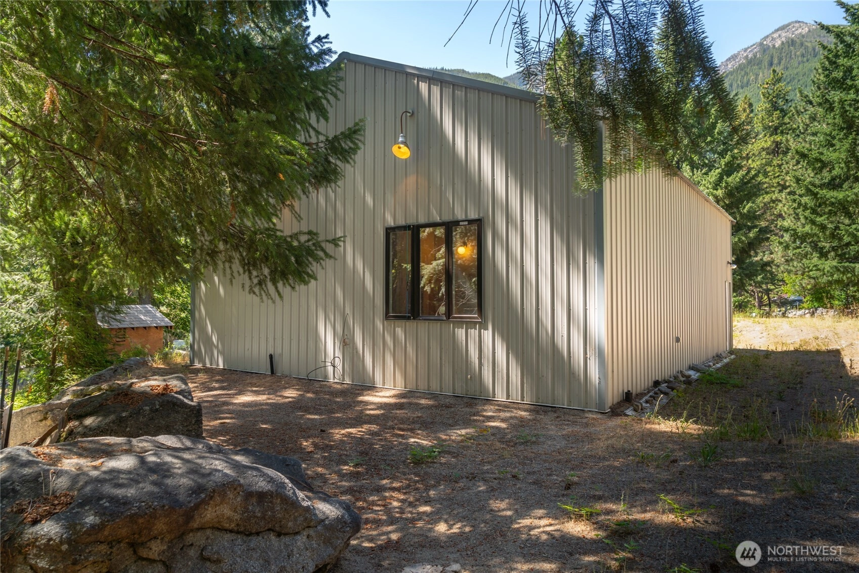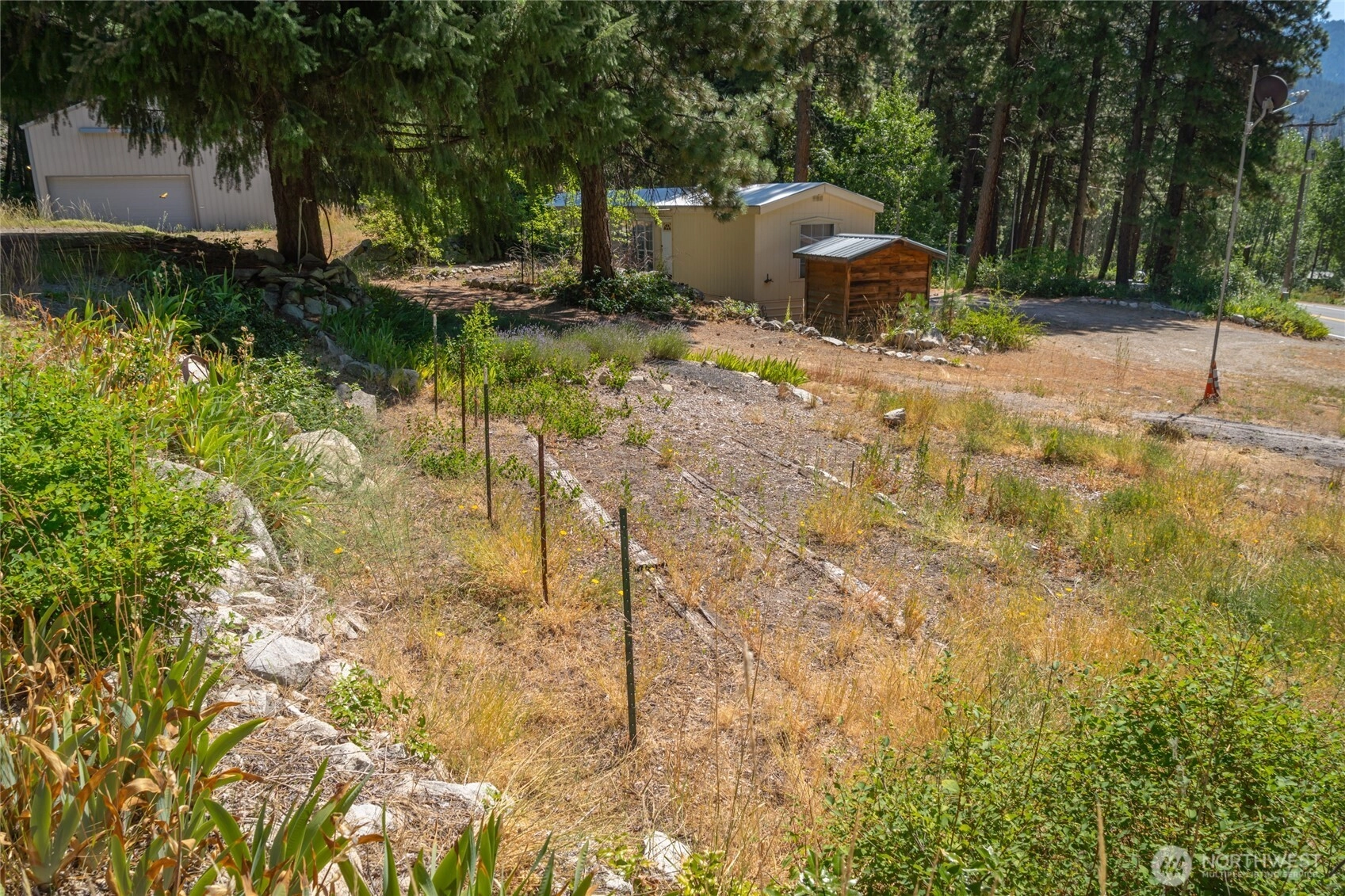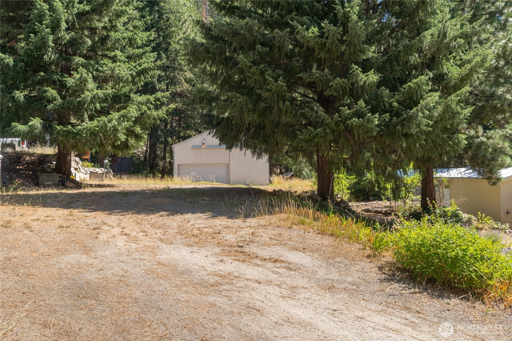 Versatile 1,200 Sq Ft Shop with Apartment – Ideal for Living, Guests, or Camping. This well-equipped shop with a cozy apartment offers endless possibilities—live comfortably while you build, host guests, or enjoy it as your private getaway. Built in 1999, the shop features 12V power, an oversized door- perfect for RV or boat storage, plus space for two-car parking. Inside, you'll find a full bathroom, laundry hookups, and RV hookups for added convenience. The property also includes two water spigots, a storage shed, shady trees, and a backyard fire pit—perfect for relaxing after a day of adventure. Unique rock formations add natural beauty, and you’ll have deeded, year-round access to the Entiat River just steps away.