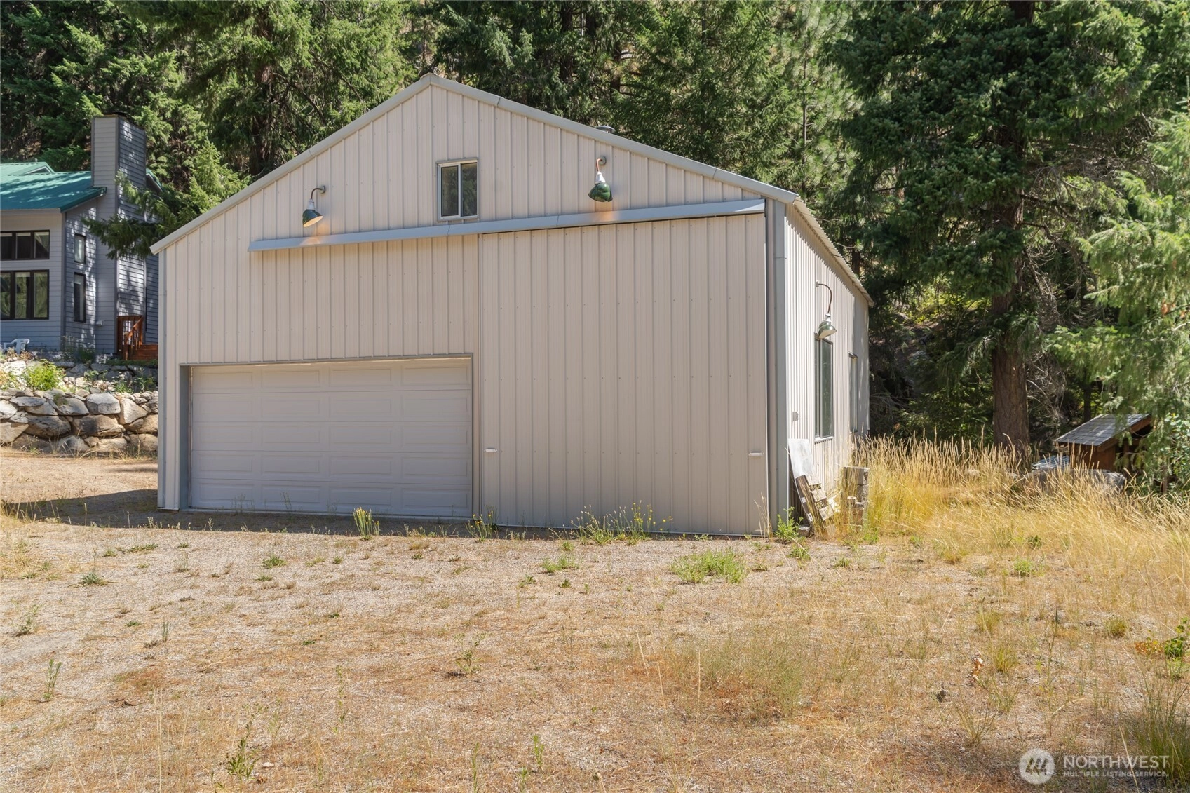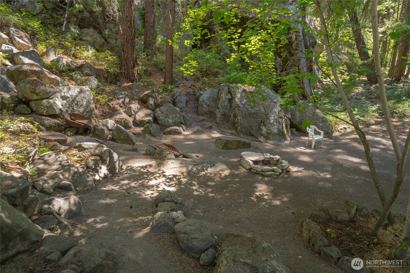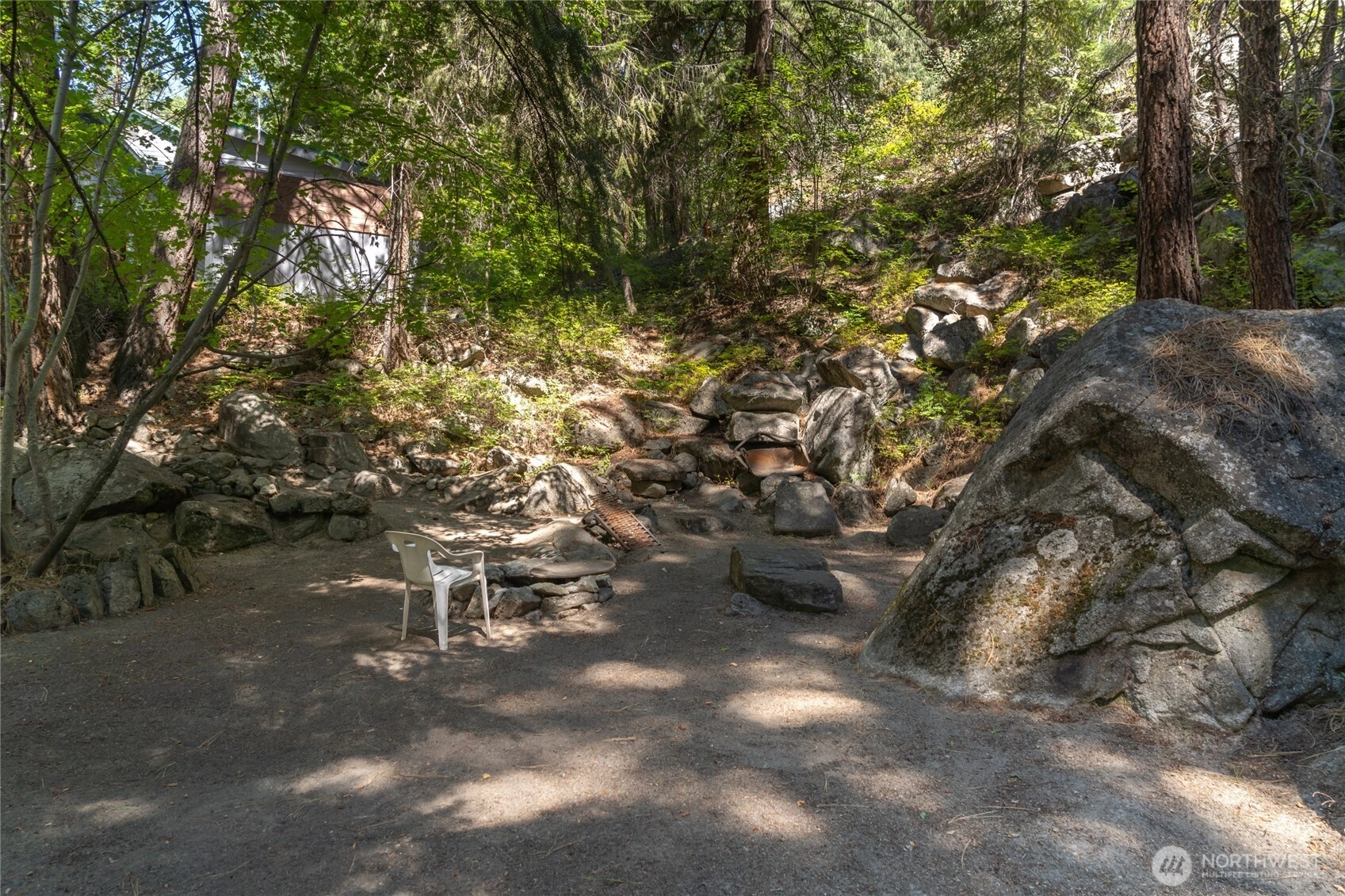 Versatile 1,200 Sq Ft Shop with Apartment – Ideal for Living, Guests, or Camping. This well-equipped shop with a cozy apartment offers endless possibilities—live comfortably while you build, host guests, or enjoy it as your private getaway. Built in 1999, the shop features 12V power, an oversized door- perfect for RV or boat storage, plus space for two-car parking. Inside, you'll find a full bathroom, laundry hookups, and RV hookups for added convenience. The property also includes two water spigots, a storage shed, shady trees, and a backyard fire pit—perfect for relaxing after a day of adventure. Unique rock formations add natural beauty, and you’ll have deeded, year-round access to the Entiat River just steps away.