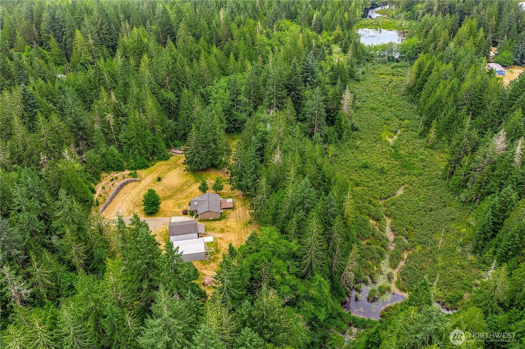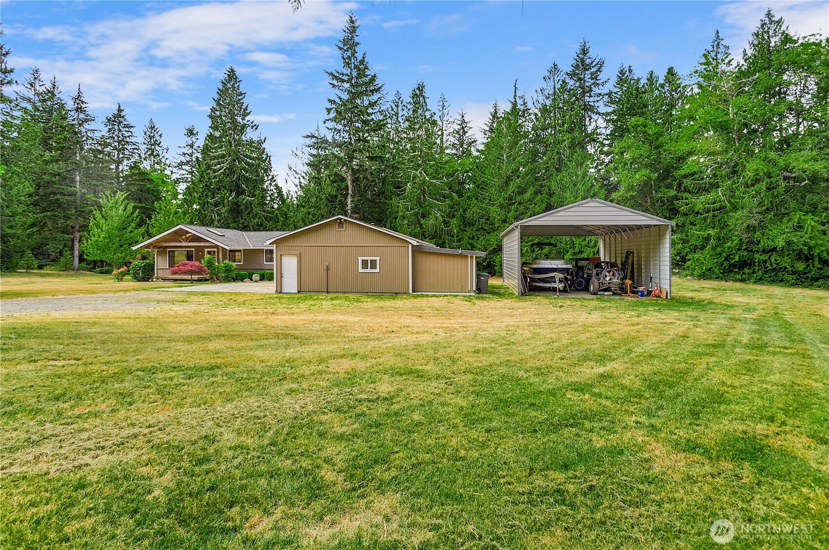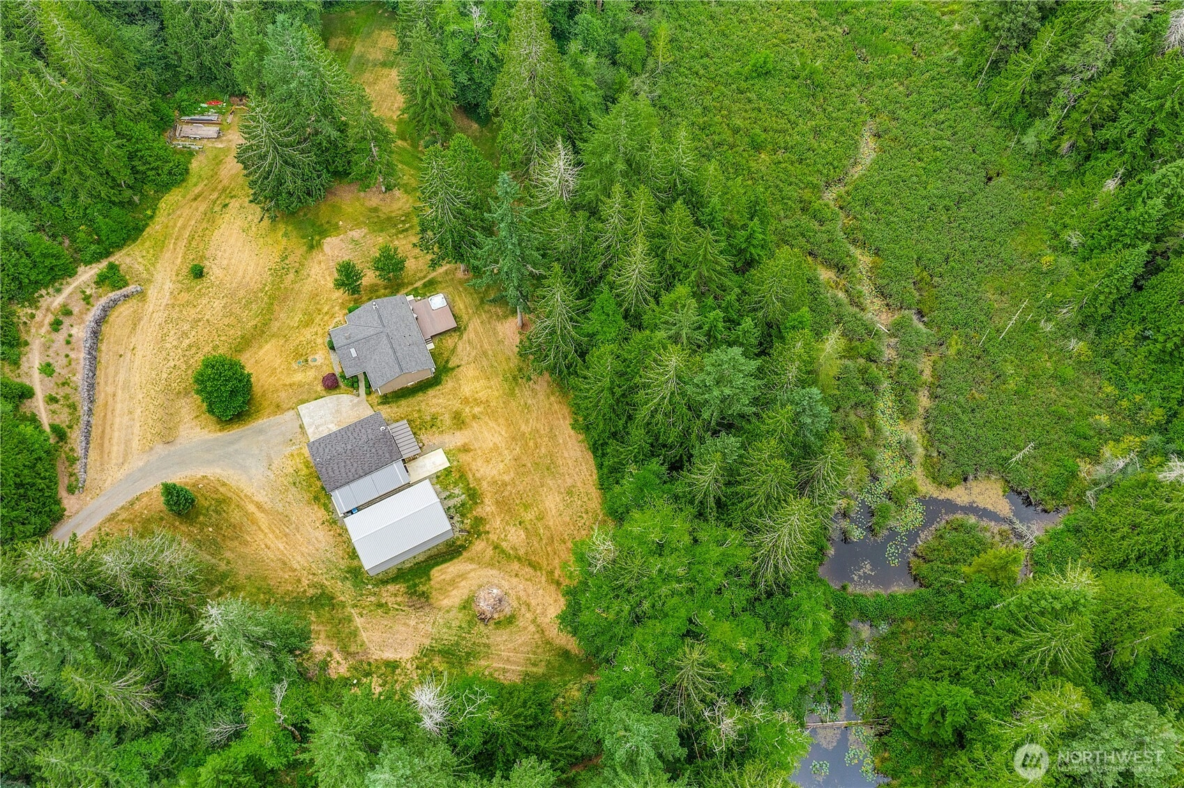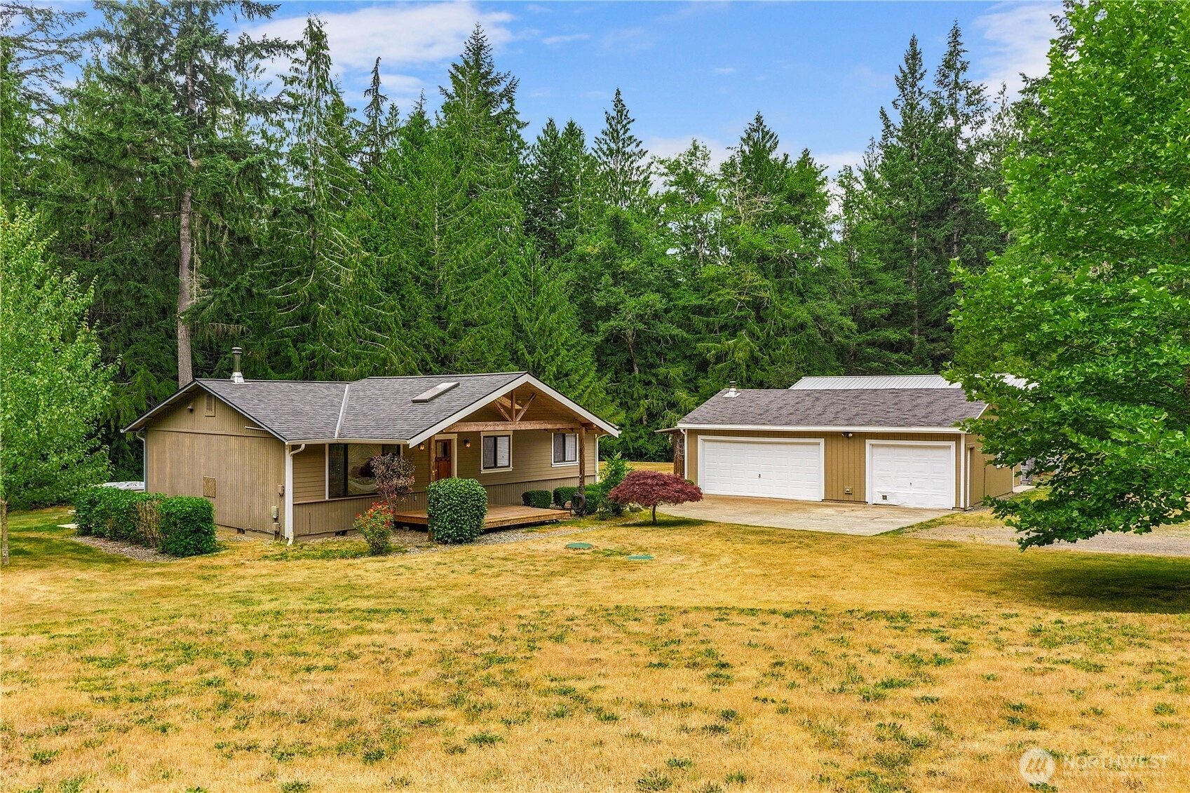 Peaceful & SO QUIET you can hear the birds' wings flapping as they pass overhead! Tranquil living on 5 COMPLETELY PRIVATE acres with your own Pond frontage (YES...you can shoot on this land!)! This beautiful 3-bed, 1-bath rambler offers comfortable living with room to roam, as well as high speed fiber optic cable for your connectivity needs! Enjoy the convenience of a detached 3+-car garage, large (40x24 with 14ft ht) RV carport, and a 30x10 storage shed—perfect for hobbies, toys, or tools. Surrounded by nature, the property provides space to garden, explore, or simply relax in the serene setting. Whether you're looking for a quiet retreat or room to grow, this property offers it all in a beautiful Pacific Northwest location.