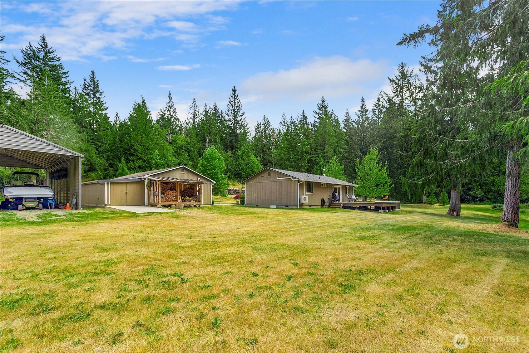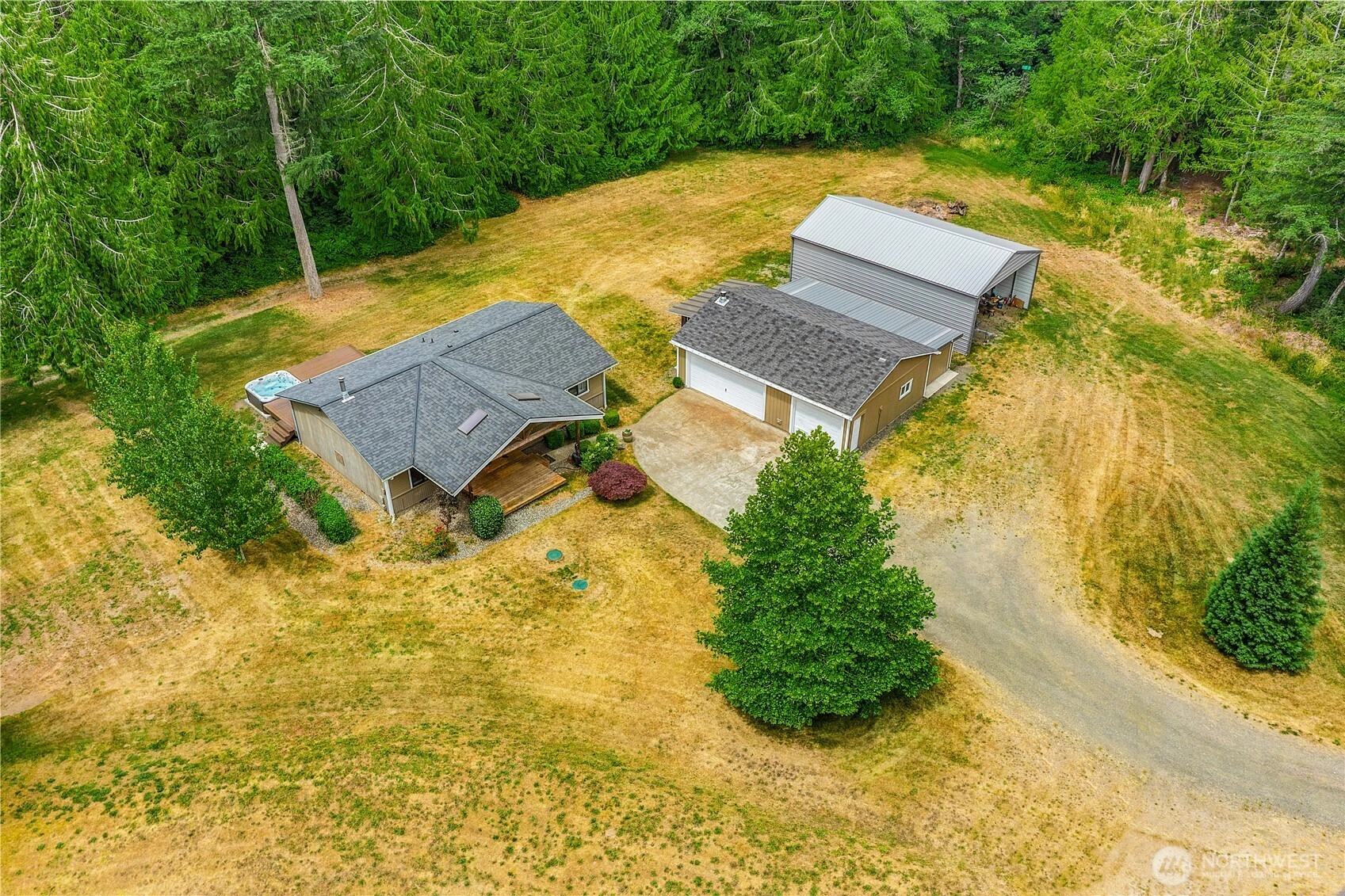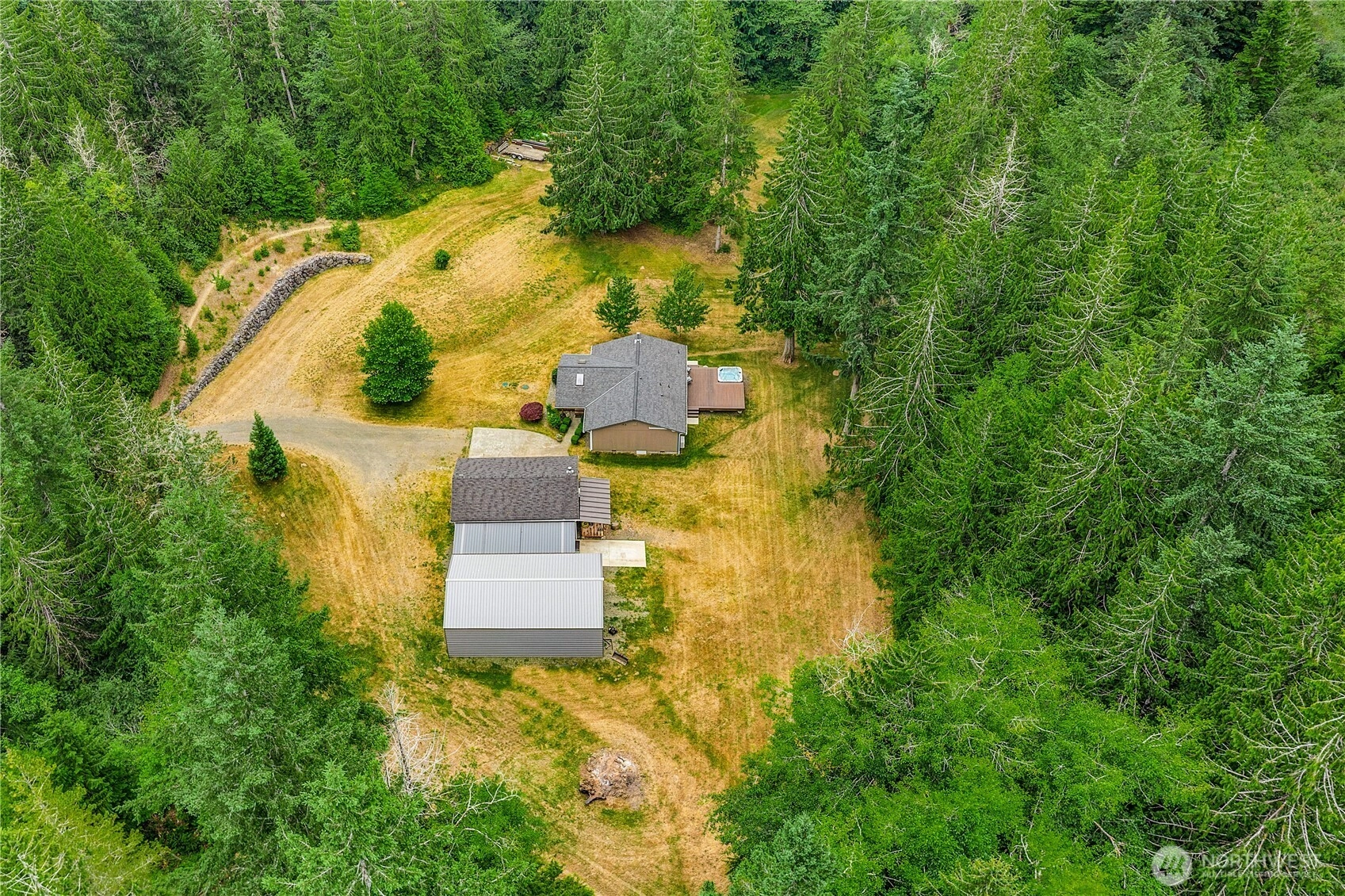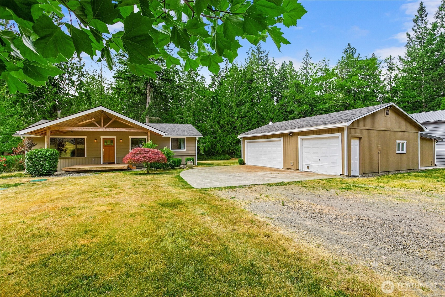 Peaceful & SO QUIET you can hear the birds' wings flapping as they pass overhead! Tranquil living on 5 COMPLETELY PRIVATE acres with your own Pond frontage (YES...you can shoot on this land!)! This beautiful 3-bed, 1-bath rambler offers comfortable living with room to roam, as well as high speed fiber optic cable for your connectivity needs! Enjoy the convenience of a detached 3+-car garage, large (40x24 with 14ft ht) RV carport, and a 30x10 storage shed—perfect for hobbies, toys, or tools. Surrounded by nature, the property provides space to garden, explore, or simply relax in the serene setting. Whether you're looking for a quiet retreat or room to grow, this property offers it all in a beautiful Pacific Northwest location.
