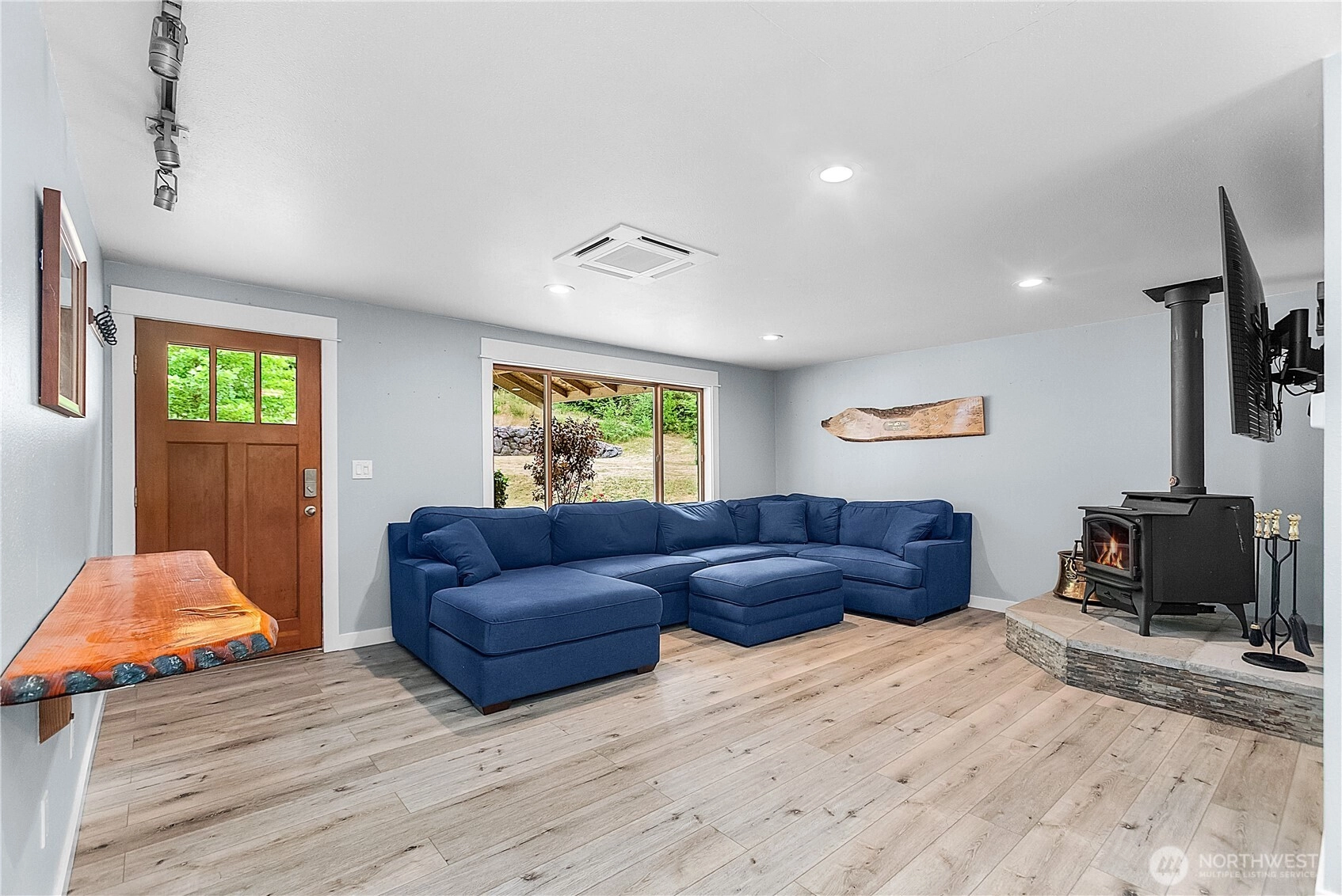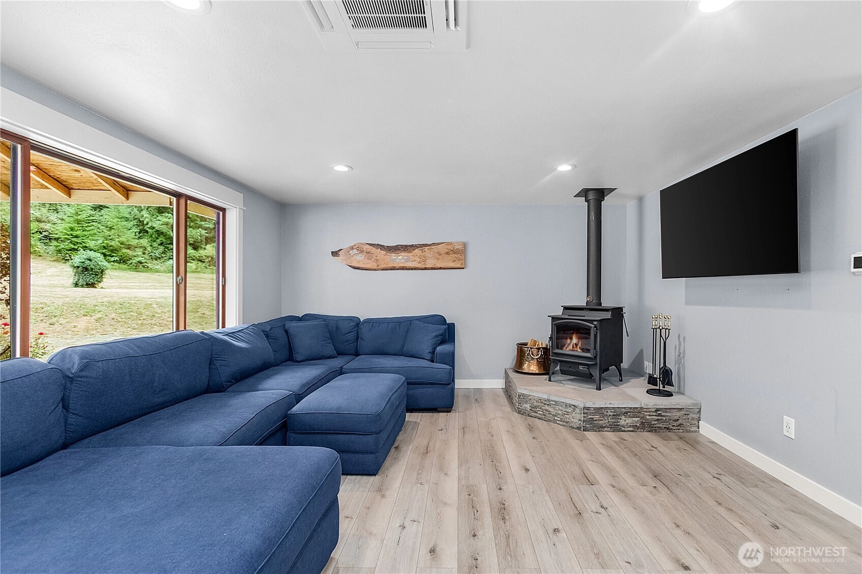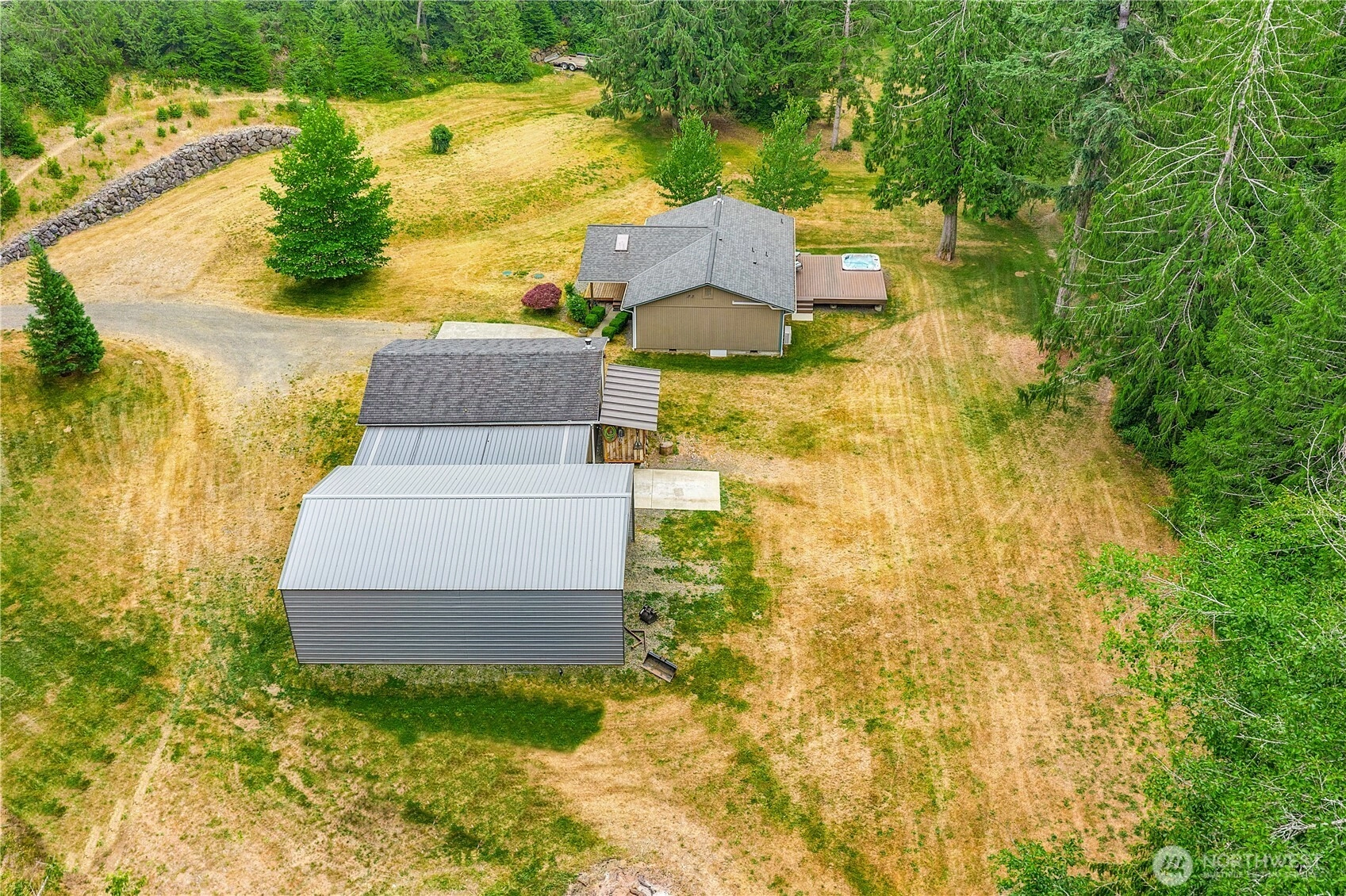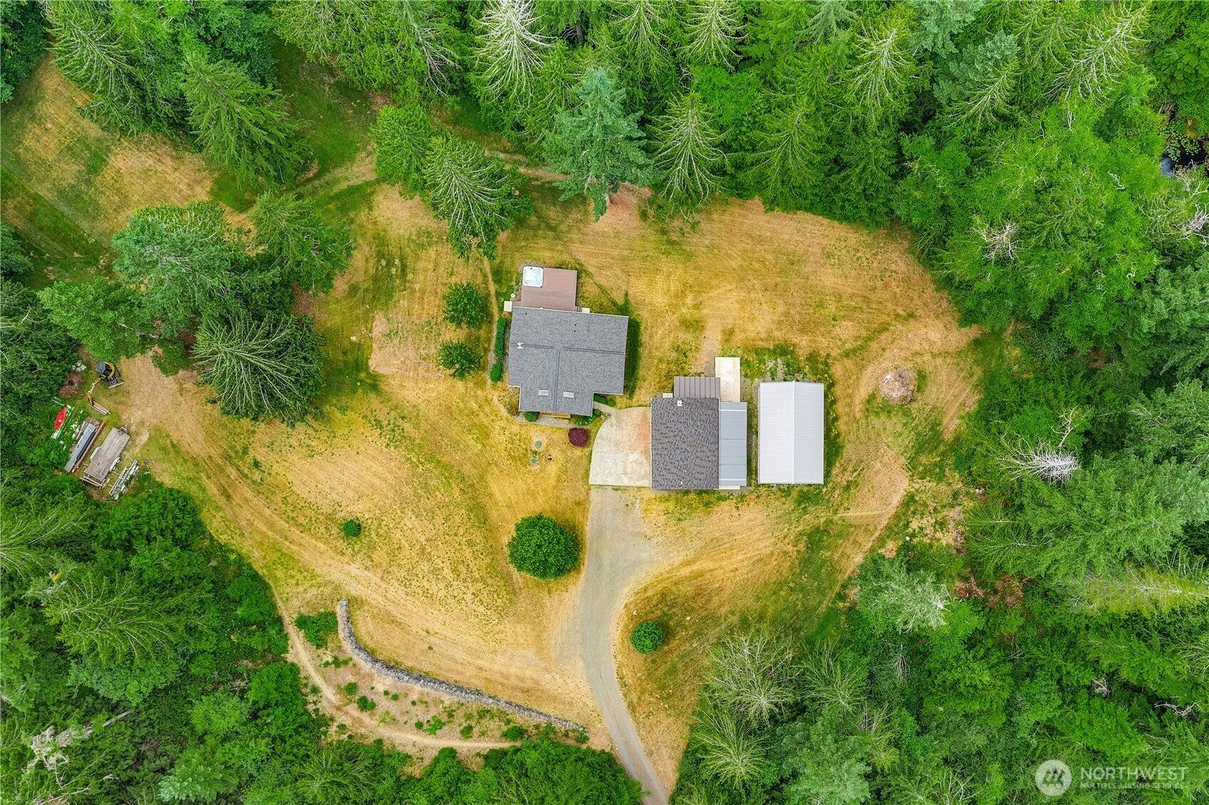 Peaceful & SO QUIET you can hear the birds' wings flapping as they pass overhead! Tranquil living on 5 COMPLETELY PRIVATE acres with your own Pond frontage (YES...you can shoot on this land!)! This beautiful 3-bed, 1-bath rambler offers comfortable living with room to roam, as well as high speed fiber optic cable for your connectivity needs! Enjoy the convenience of a detached 3+-car garage, large (40x24 with 14ft ht) RV carport, and a 30x10 storage shed—perfect for hobbies, toys, or tools. Surrounded by nature, the property provides space to garden, explore, or simply relax in the serene setting. Whether you're looking for a quiet retreat or room to grow, this property offers it all in a beautiful Pacific Northwest location.