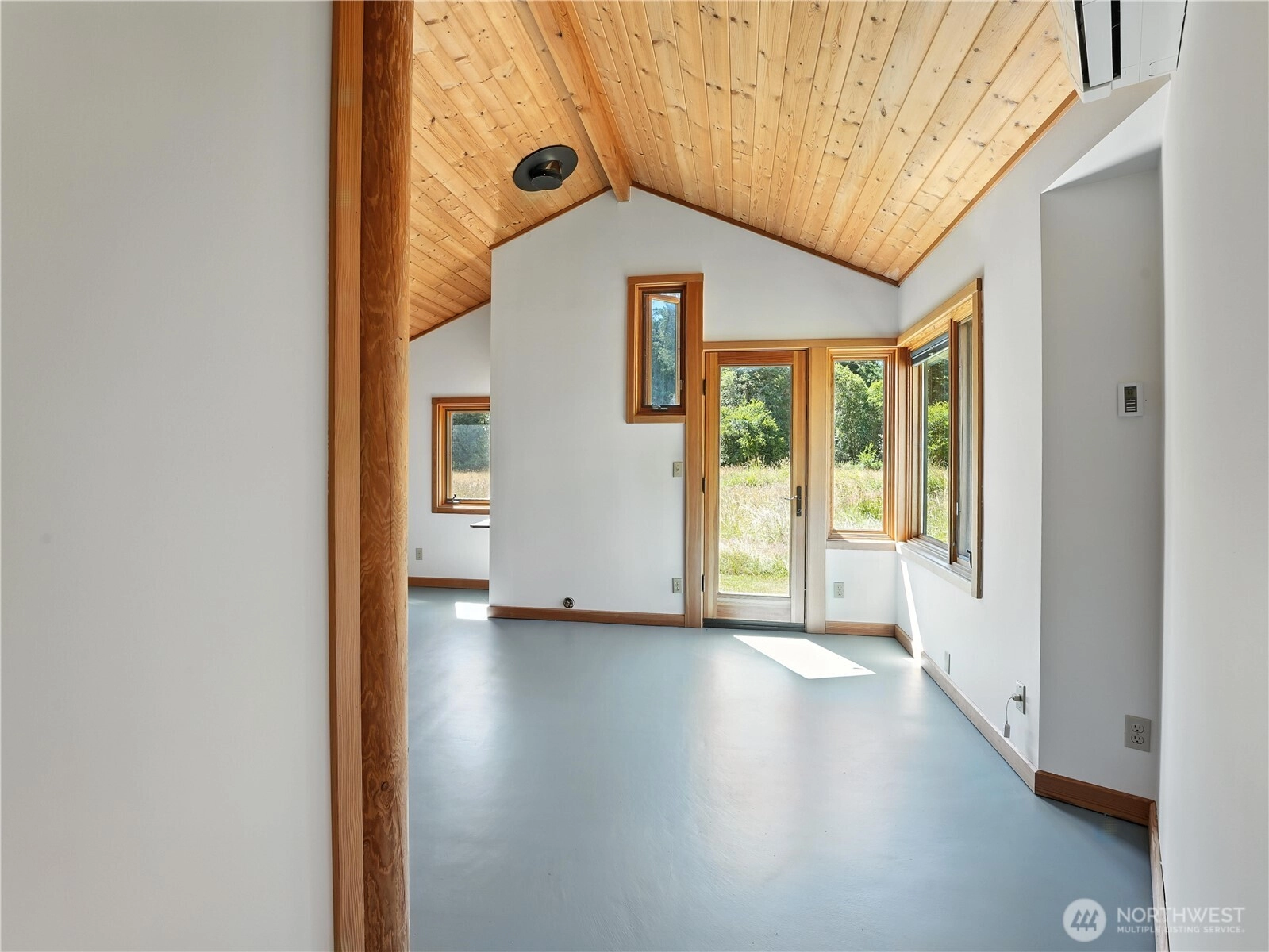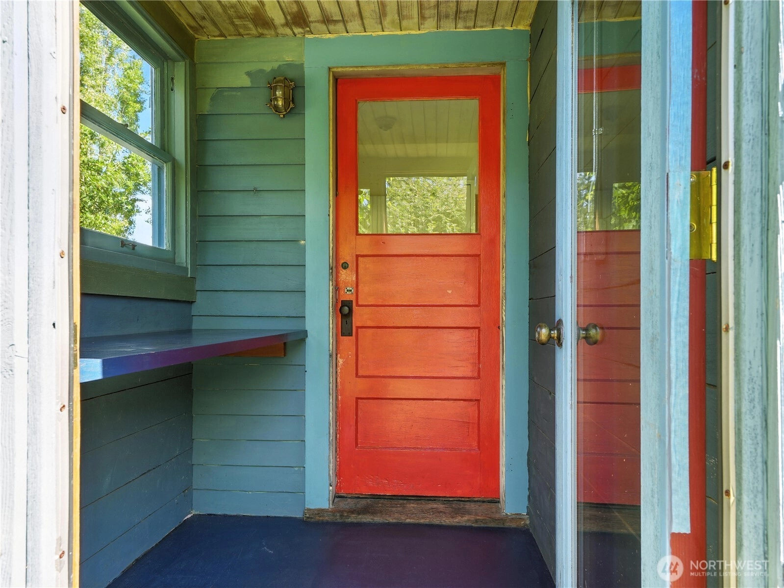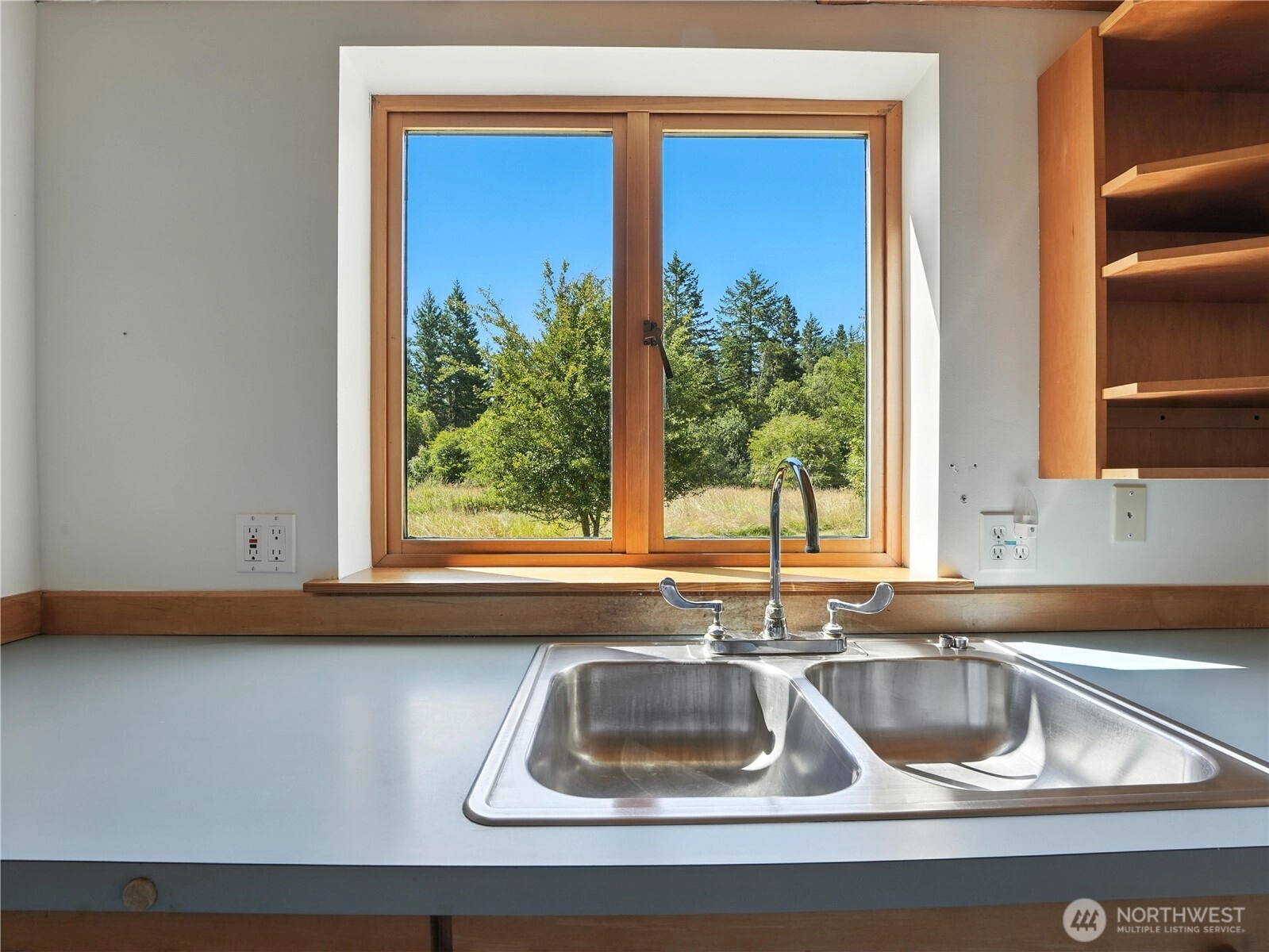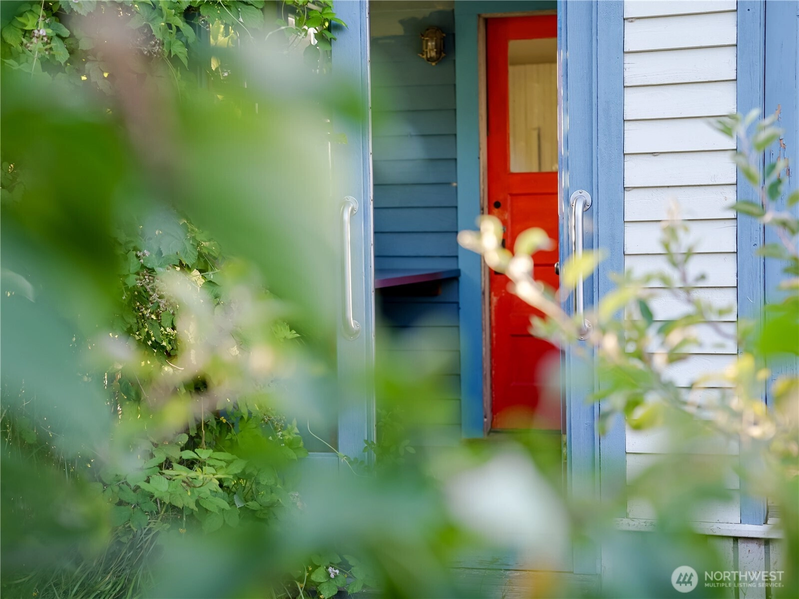 An Artists studio with an Architects cottage! This perfectly located North end retreat features a 1935 creators studio and a 1997 Ted Bower designed "Cabbage", a cross between a cabin and a cottage. The studio, with swaths of color gets flooded with light, has options for expanded living or creating. The Cabbage, with 2 beds, 1.25 baths and 1,100sf is the perfect island get away. Skylights, dutch doors to a patio overlooking the fielded and wooded 10 acres, a courtyard with apple trees between the studio and Cabbage all create a sense of privacy from the outside, but connection between the two homes. A third structure, the "Coterie" is perfect for a yoga studio or separate office. Cabbage is great one level living with primary on main.