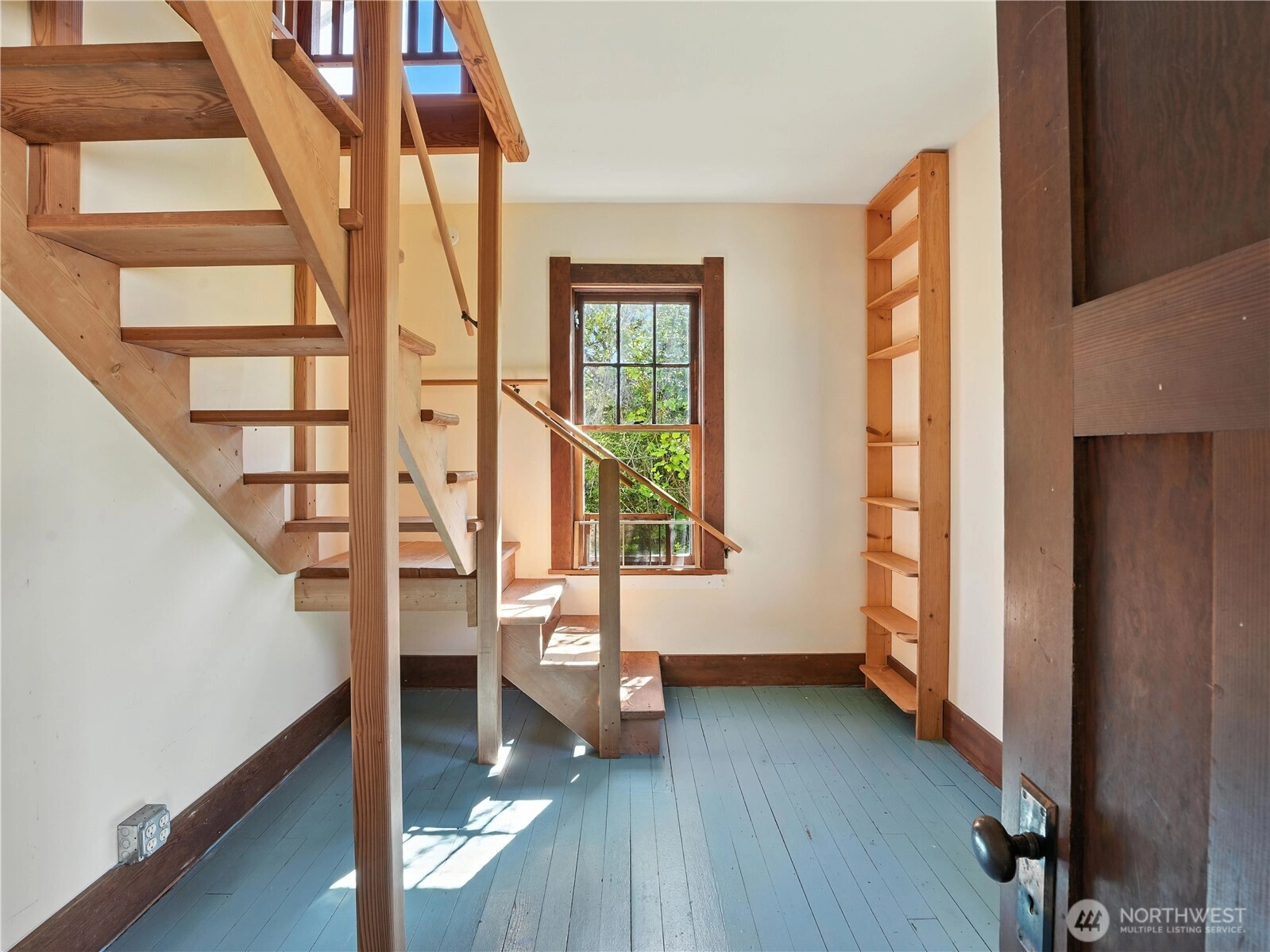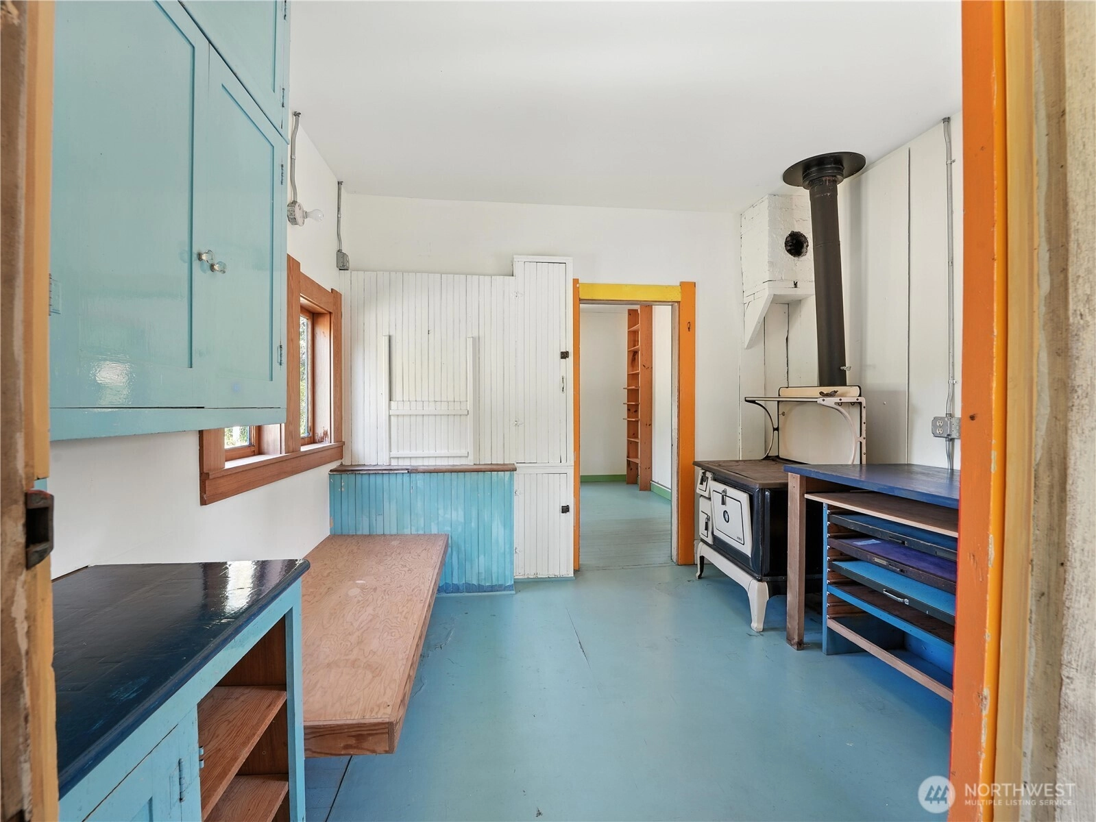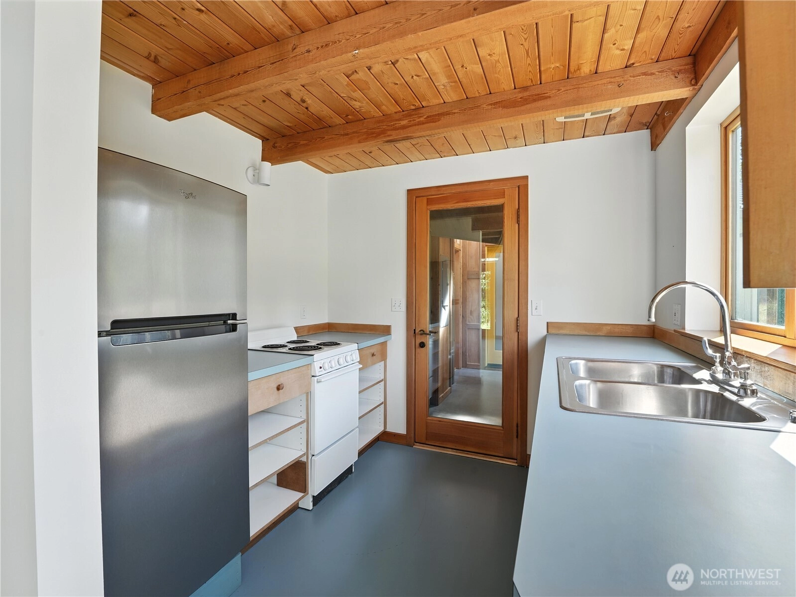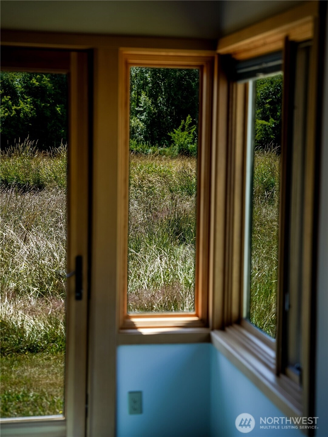 An Artists studio with an Architects cottage! This perfectly located North end retreat features a 1935 creators studio and a 1997 Ted Bower designed "Cabbage", a cross between a cabin and a cottage. The studio, with swaths of color gets flooded with light, has options for expanded living or creating. The Cabbage, with 2 beds, 1.25 baths and 1,100sf is the perfect island get away. Skylights, dutch doors to a patio overlooking the fielded and wooded 10 acres, a courtyard with apple trees between the studio and Cabbage all create a sense of privacy from the outside, but connection between the two homes. A third structure, the "Coterie" is perfect for a yoga studio or separate office. Cabbage is great one level living with primary on main.