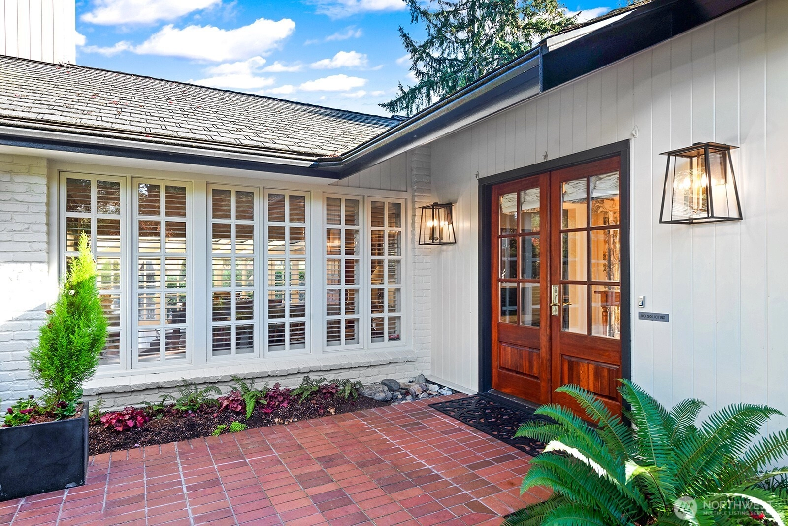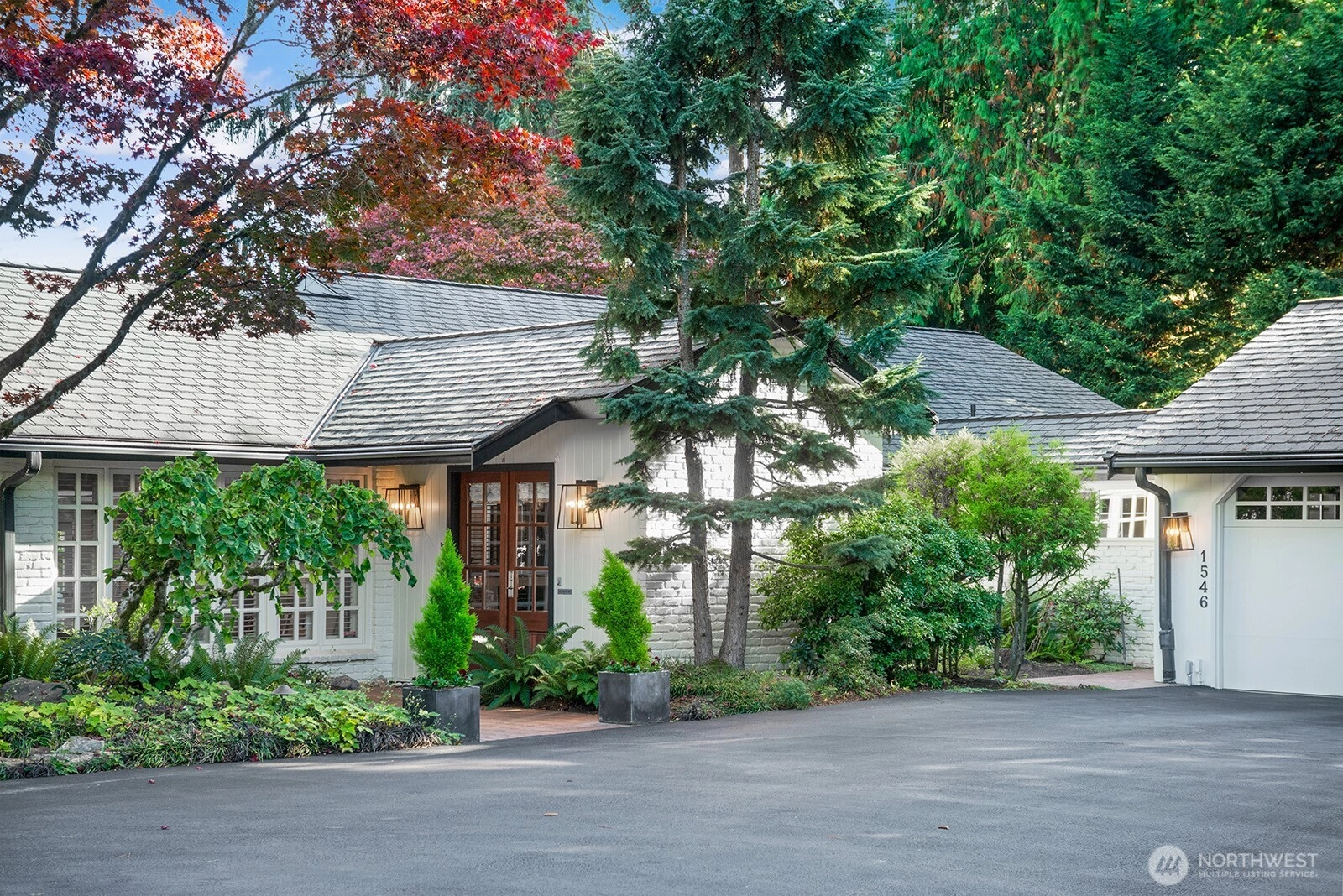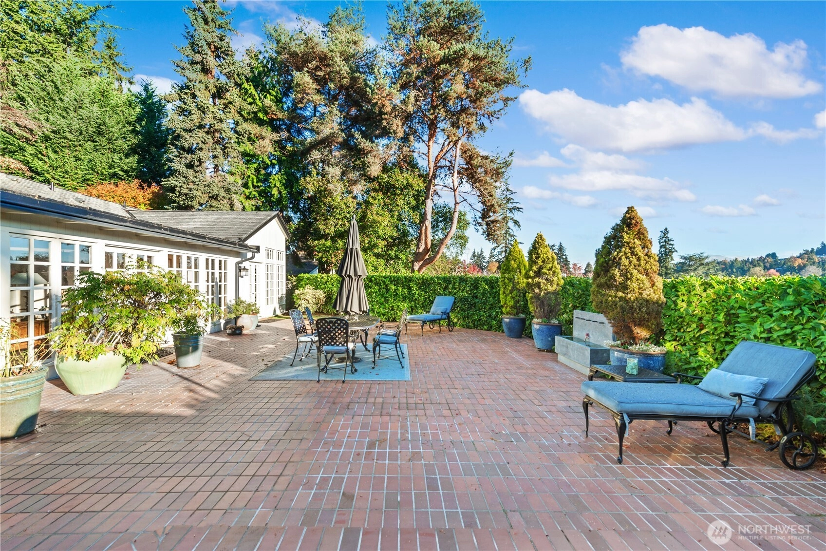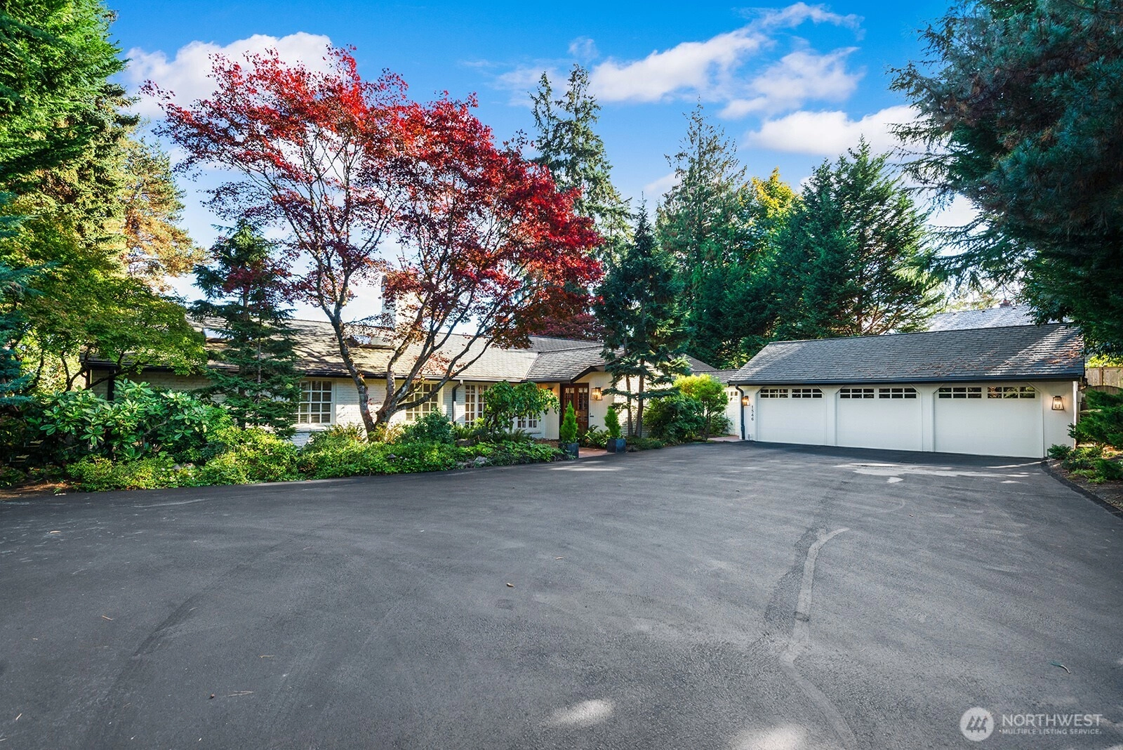 One level living built by John Hill and remodel/addition designed by Burr Richards, Architect. Large rooms, high ceilings, significant primary suite with double bathrooms and closets. Architectural design to maximize appreciation of this uniquely private setting. Eastern views of Clyde Hill lights and beautiful sunrises. Lovely private yard with verdant mature gardens and expansive patio. 3 car garage with large storage area / workshop area. Significant driveway parking for guests. Easy access to Overlake Golf and Country Club and Medina Parks.