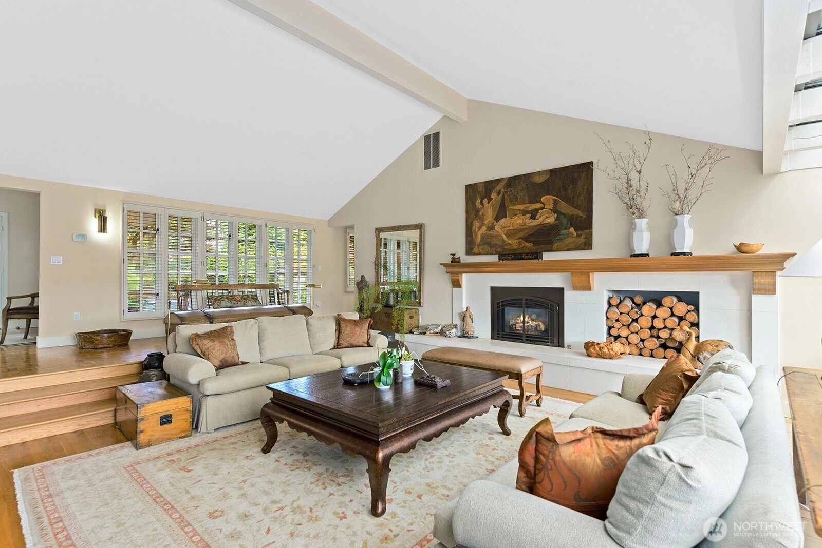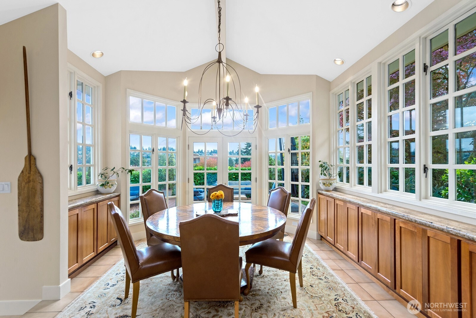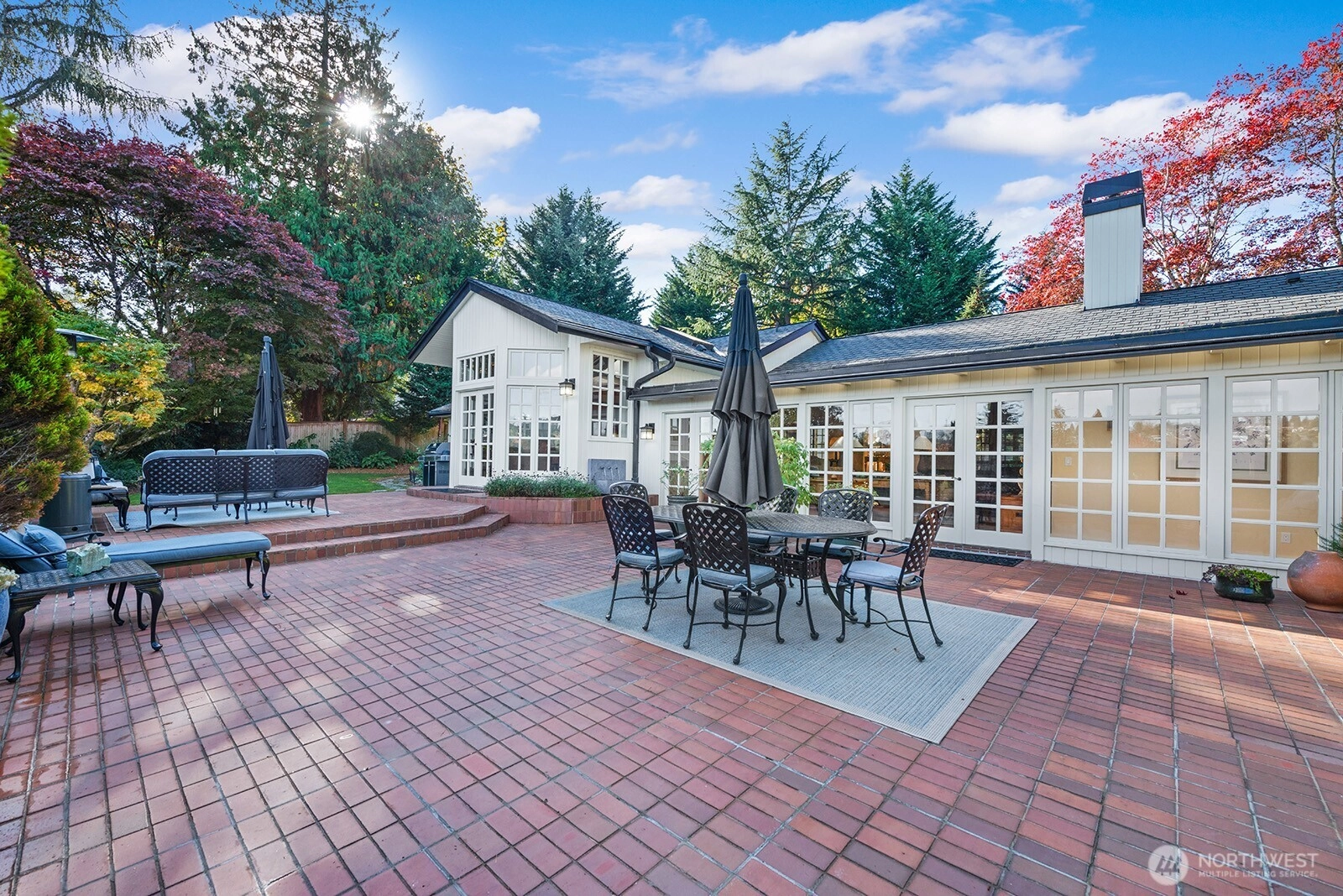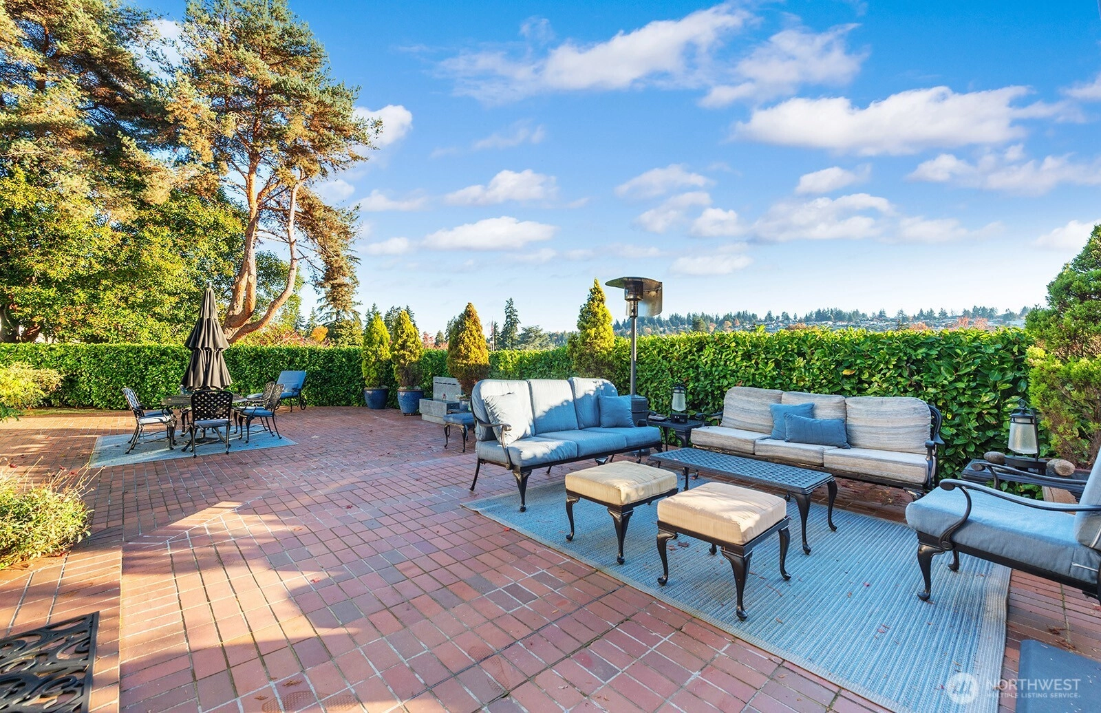 One level living built by John Hill and remodel/addition designed by Burr Richards, Architect. Large rooms, high ceilings, significant primary suite with double bathrooms and closets. Architectural design to maximize appreciation of this uniquely private setting. Eastern views of Clyde Hill lights and beautiful sunrises. Lovely private yard with verdant mature gardens and expansive patio. 3 car garage with large storage area / workshop area. Significant driveway parking for guests. Easy access to Overlake Golf and Country Club and Medina Parks.