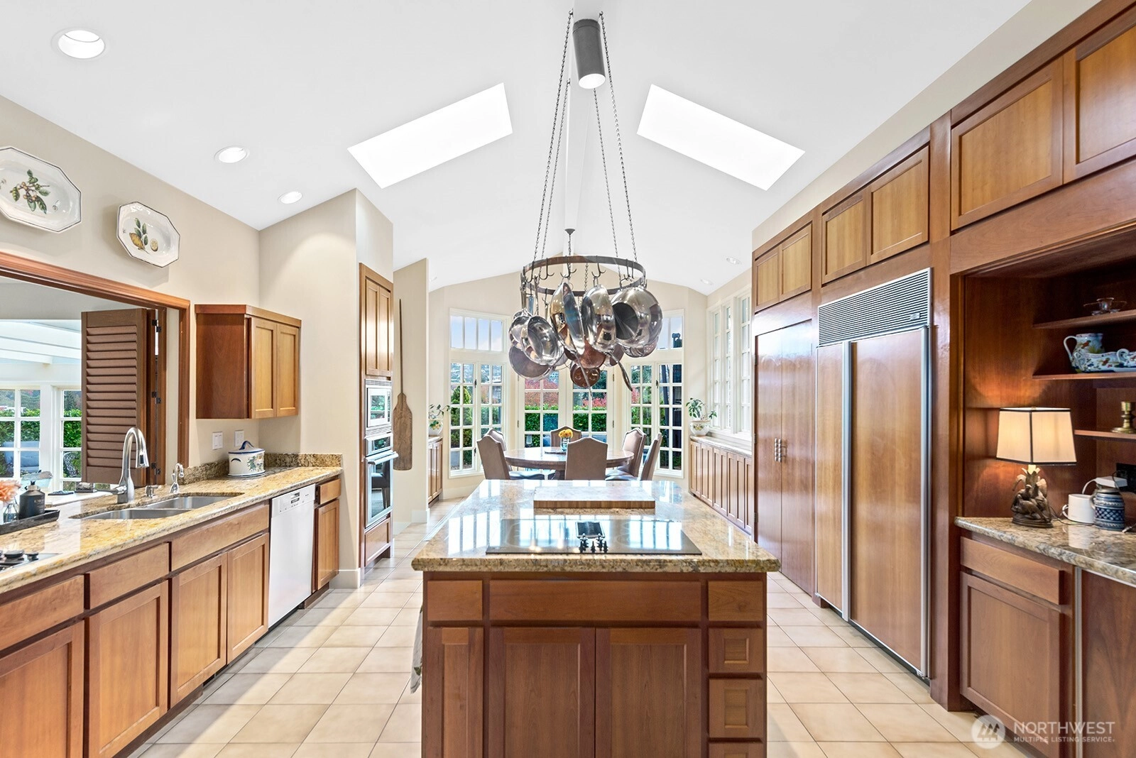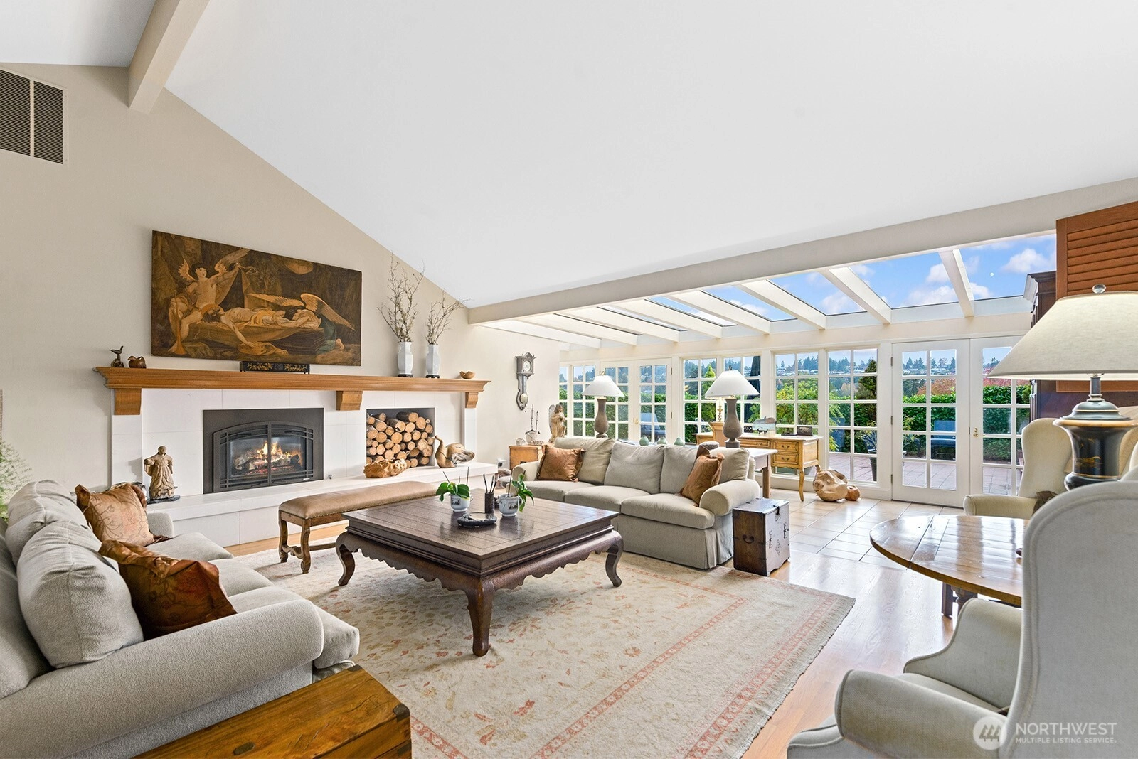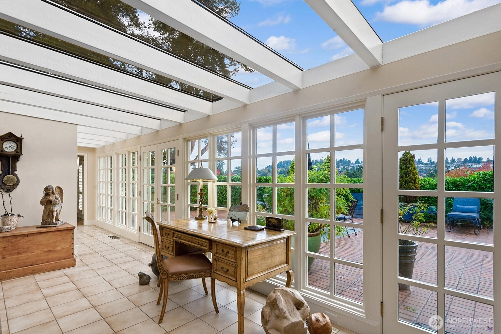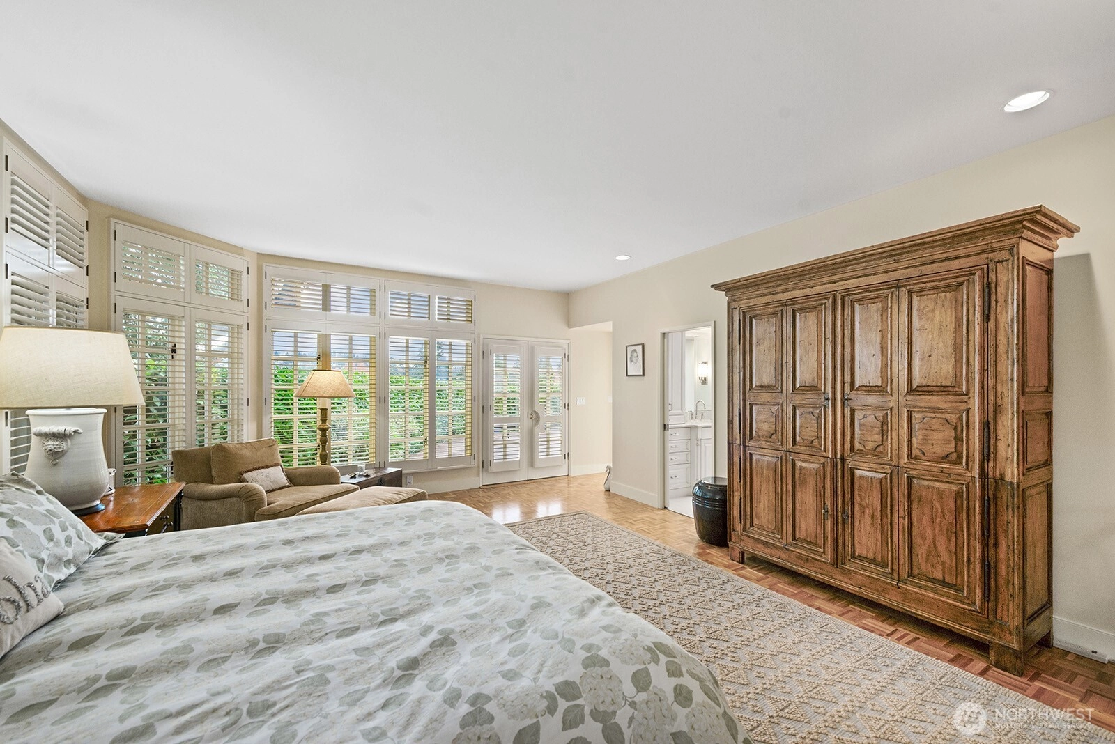 One level living built by John Hill and remodel/addition designed by Burr Richards, Architect. Large rooms, high ceilings, significant primary suite with double bathrooms and closets. Architectural design to maximize appreciation of this uniquely private setting. Eastern views of Clyde Hill lights and beautiful sunrises. Lovely private yard with verdant mature gardens and expansive patio. 3 car garage with large storage area / workshop area. Significant driveway parking for guests. Easy access to Overlake Golf and Country Club and Medina Parks.