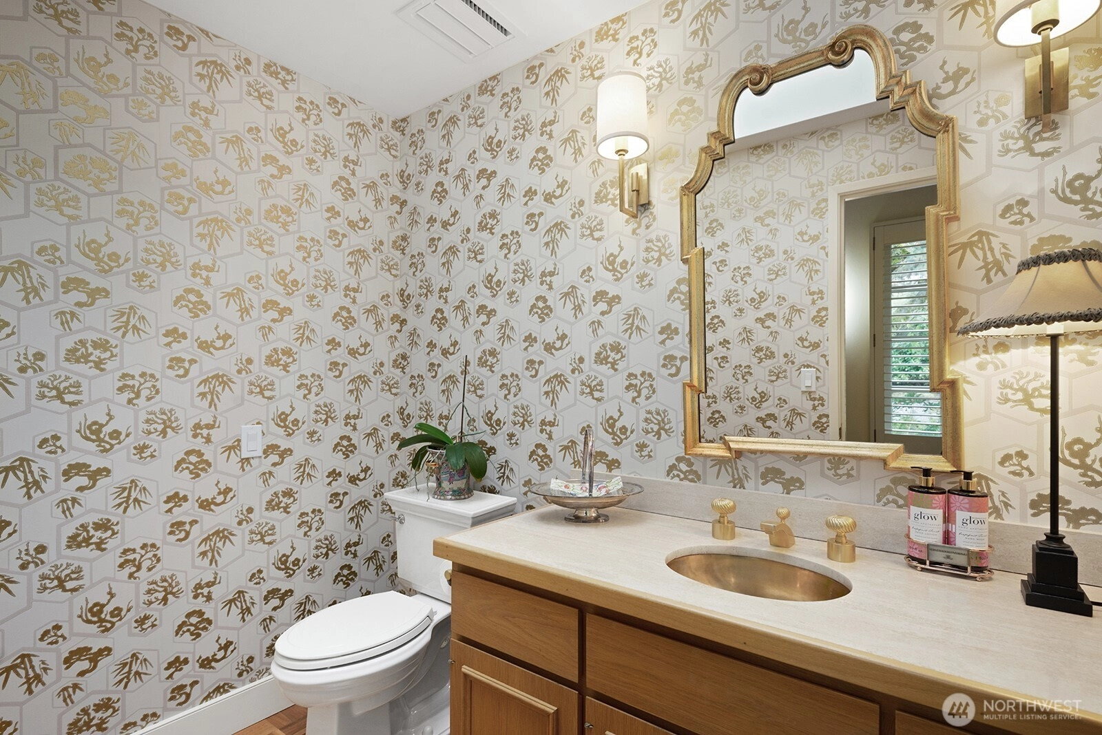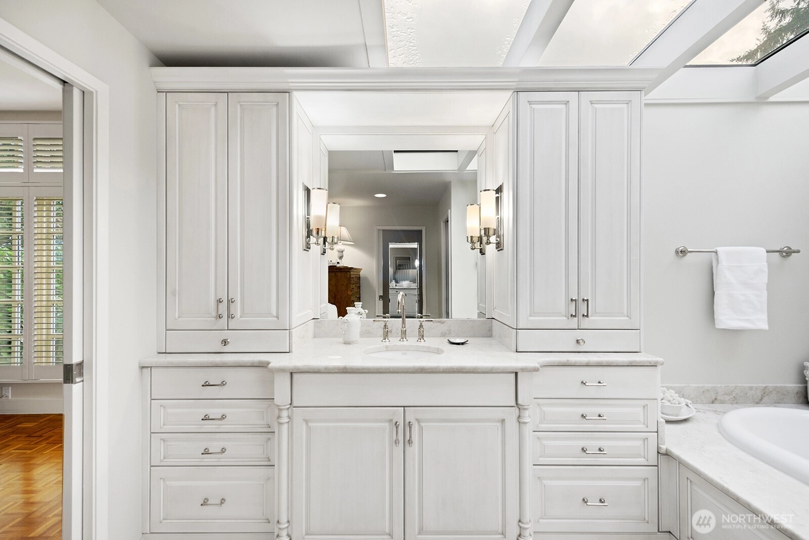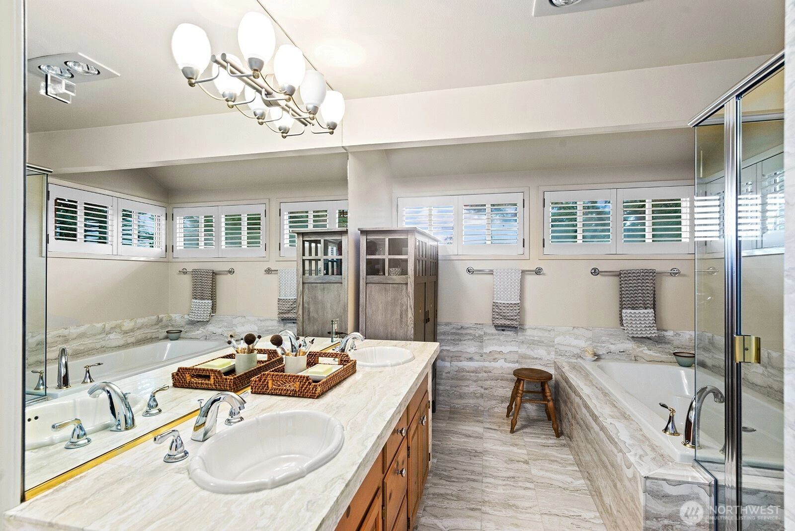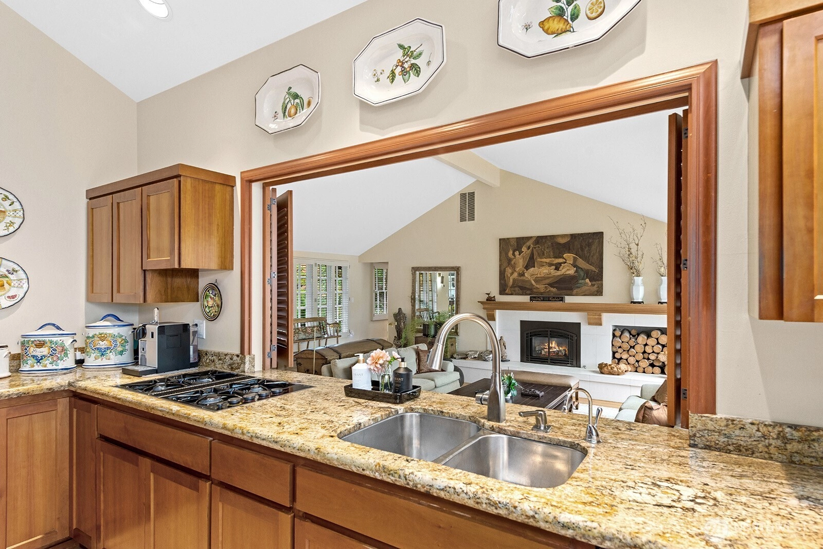 One level living built by John Hill and remodel/addition designed by Burr Richards, Architect. Large rooms, high ceilings, significant primary suite with double bathrooms and closets. Architectural design to maximize appreciation of this uniquely private setting. Eastern views of Clyde Hill lights and beautiful sunrises. Lovely private yard with verdant mature gardens and expansive patio. 3 car garage with large storage area / workshop area. Significant driveway parking for guests. Easy access to Overlake Golf and Country Club and Medina Parks.