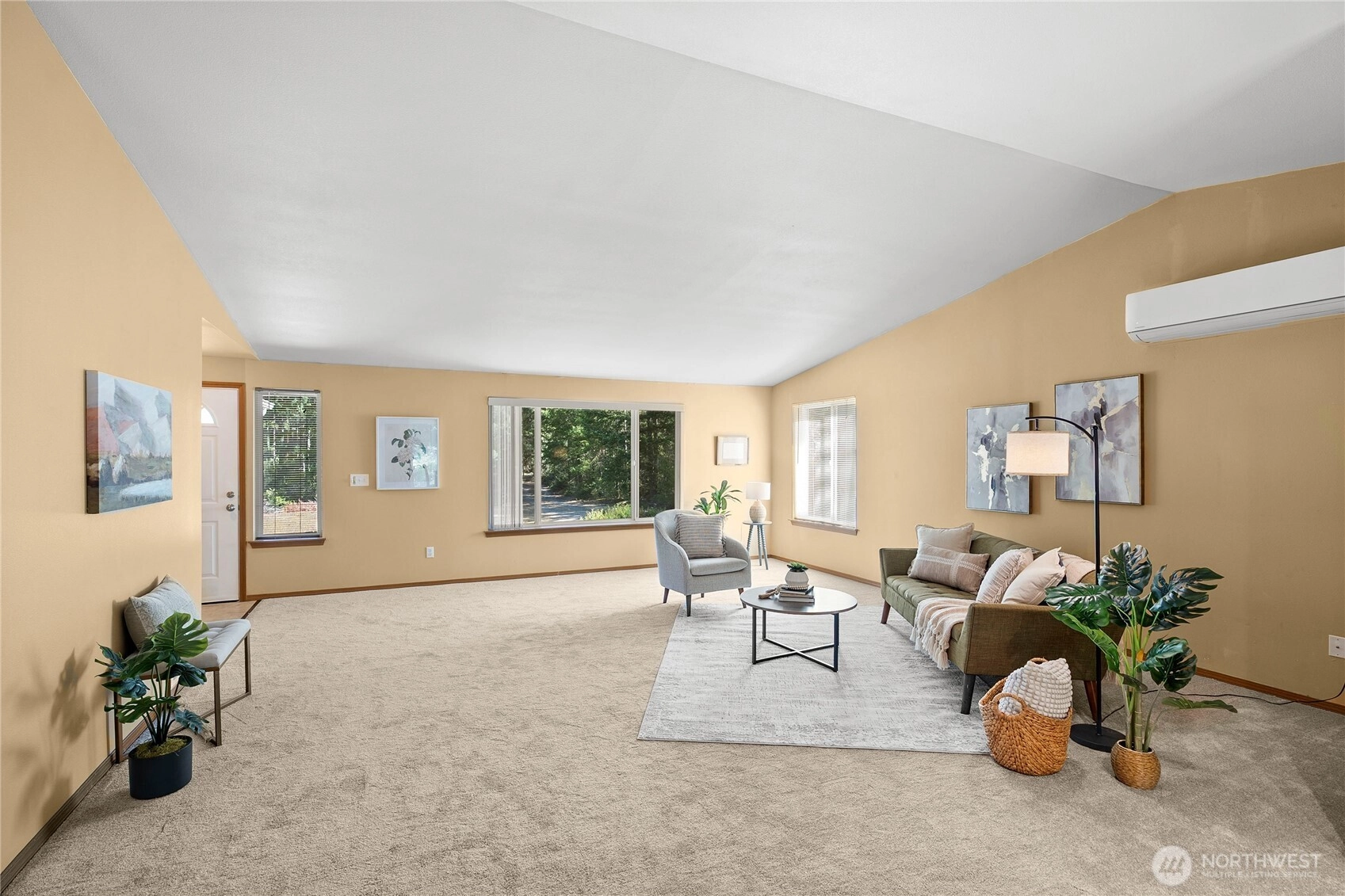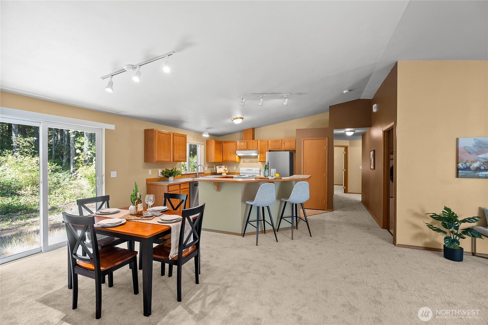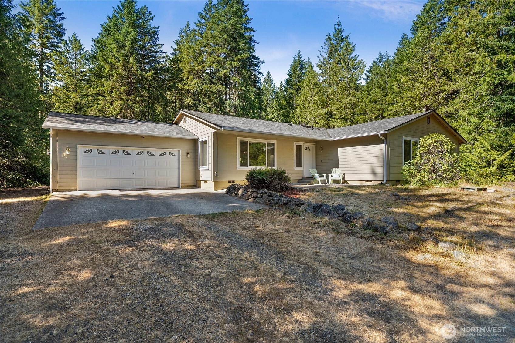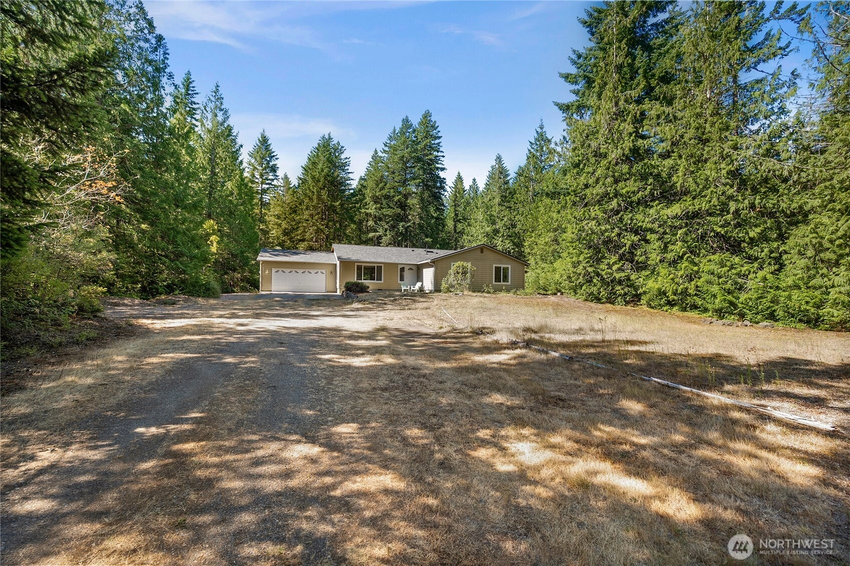 This well-built 4-bedroom, 2-bathroom rambler sits on a spacious 2.8-acre lot with a brand new 50-year roof and all-new carpet. The open layout includes a large kitchen with ample counter space and storage, plus vaulted ceilings and big windows in the living area. A large shed offers space for tools, storage, or hobbies. Keep the natural vegetation or clear for animals, gardens, or a mini farm. Located near Silverdale and just 30 minutes from Poulsbo and Bremerton, this home offers a quiet, rural setting with quick access to town. Includes cable broadband