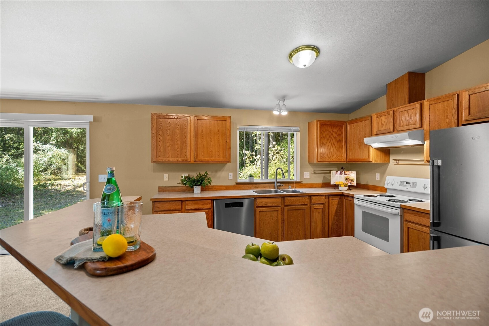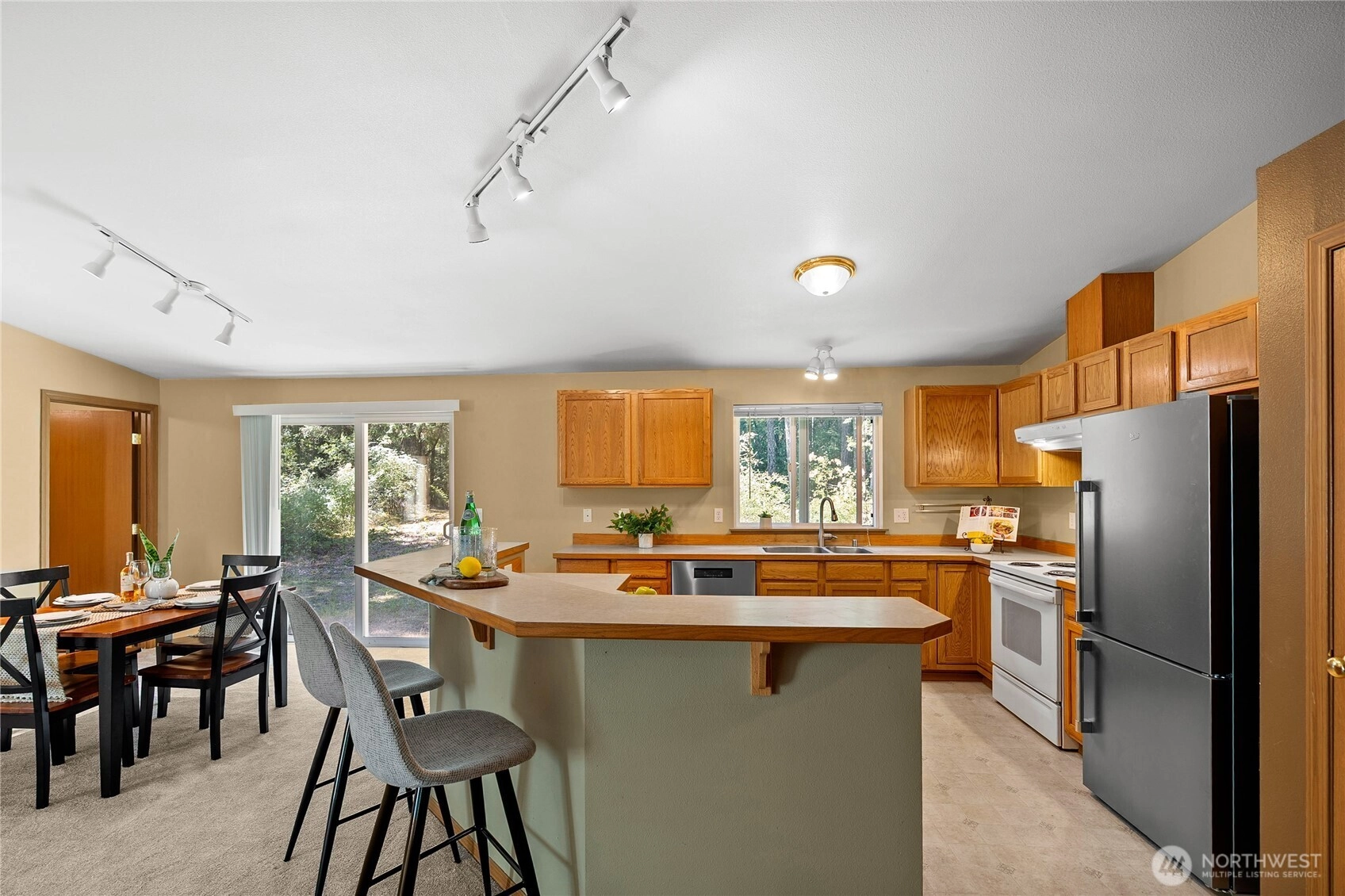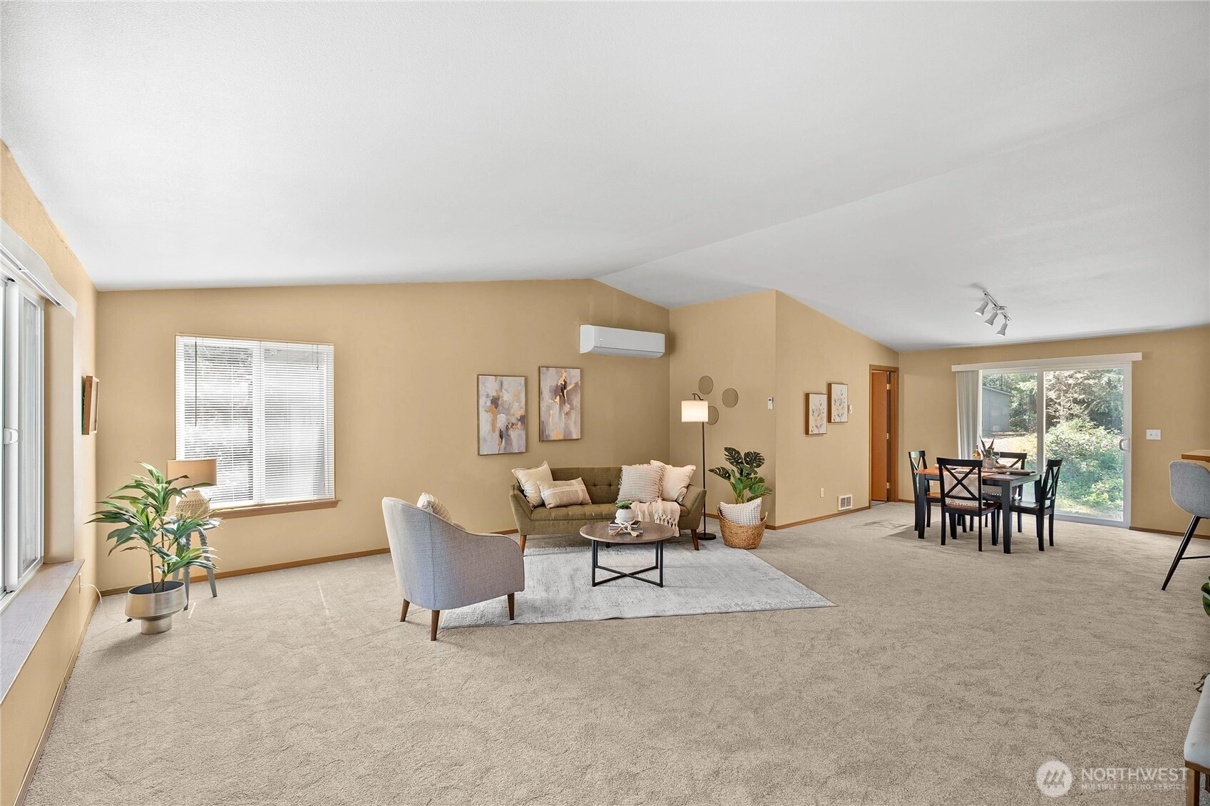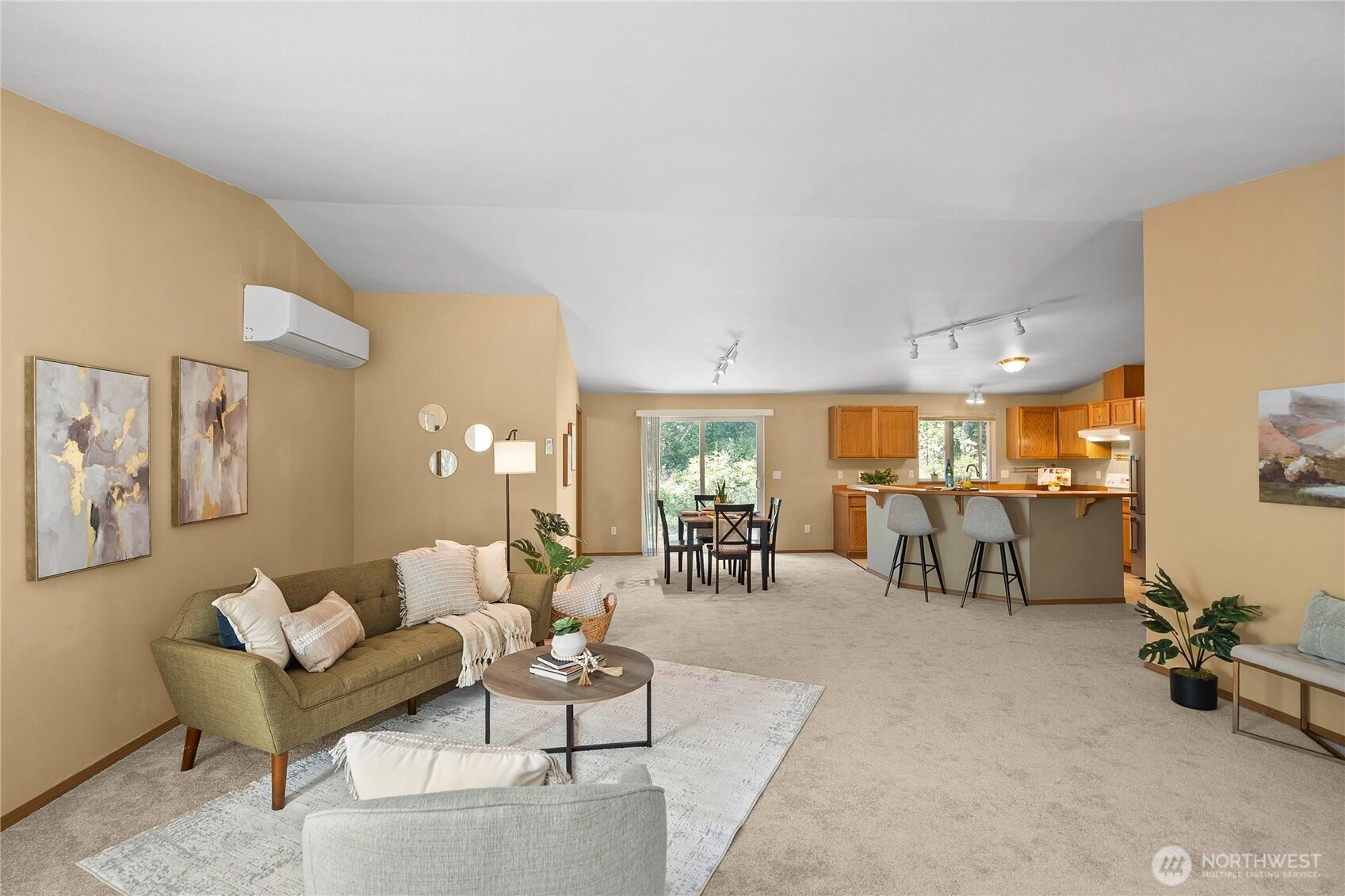 This well-built 4-bedroom, 2-bathroom rambler sits on a spacious 2.8-acre lot with a brand new 50-year roof and all-new carpet. The open layout includes a large kitchen with ample counter space and storage, plus vaulted ceilings and big windows in the living area. A large shed offers space for tools, storage, or hobbies. Keep the natural vegetation or clear for animals, gardens, or a mini farm. Located near Silverdale and just 30 minutes from Poulsbo and Bremerton, this home offers a quiet, rural setting with quick access to town. Includes cable broadband