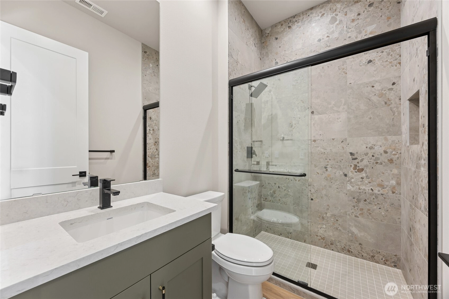 Legacy Farms Estates is a boutique community of 7 luxury homes, ideally located north of Kirkland in Woodinville Wine Country. This stunning corner-lot residence includes a 3-car garage, east-facing front door, and backs to environmentally protected greenbelt for privacy and views. The main floor offers a spacious great room, formal dining room, den, and a main floor bedroom. The gourmet kitchen is perfect for entertaining, with generous space and storage. Upstairs features five bedrooms, including a large primary suite with a spa-inspired bathroom. Enjoy the perfect blend of comfort, elegance, and location—just minutes from the Eastrail and Sammamish River Trail systems. Move-in ready!