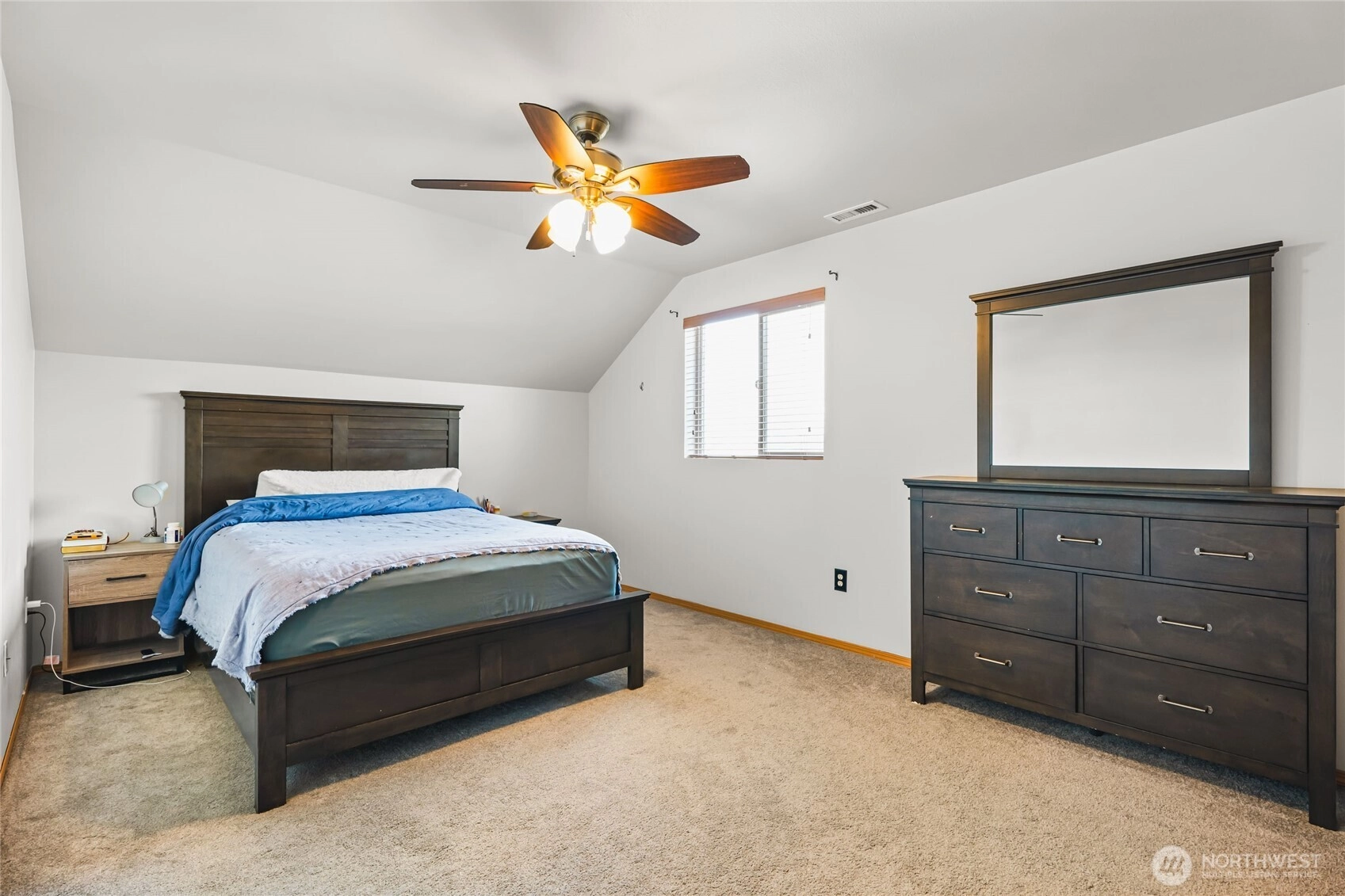 Welcome to this well maintained 3 bedroom, 2 bathroom Midland model features a bright and open floor plan with a spacious kitchen and island. The main floor primary suite offers both comfort and privacy, while the upstairs loft provides versatile space for a home office or playroom. Enjoy the covered front porch and a landscaped corner lot with lovely partial views of Mt. Rainier. A brand new A/C system ensures year round comfort. All appliances are included. Conveniently located just minutes from JBLM, shopping, and excellent schools in the Bethel School District. This home is ready to become yours!