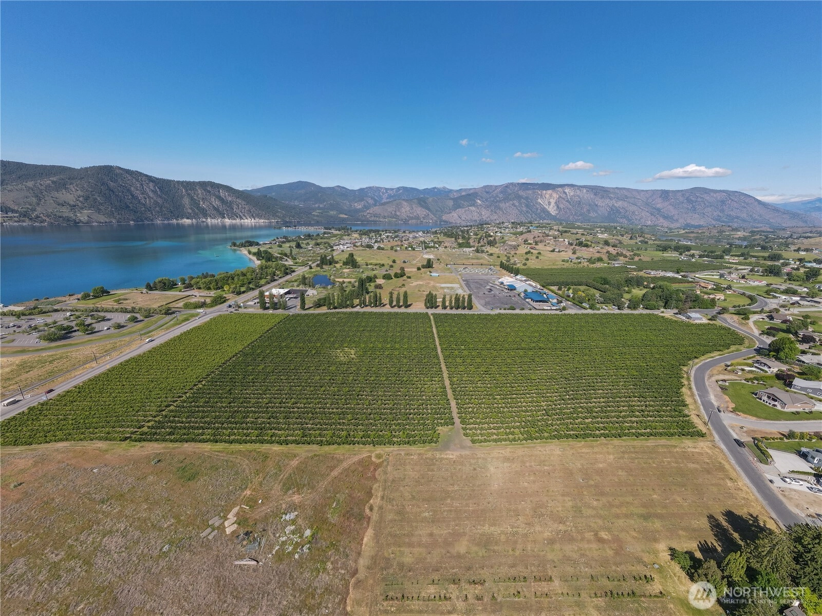Rare Development Opportunity 40 Acres in Prime Location! Don't miss this unique chance to own 40 acres of UR1-zoned land (allowing up to 4 lots per acre), ideally situated directly across from the Chelan PUD public boat launch, park, and Mill Bay Casino. The gently sloping terrain offers ideal conditions for development, with the potential to capture breathtaking views of Lake Chelan and the surrounding foothills. Centrally located between the City of Chelan and Manson, this property offers both convenience and incredible scenic appeal. Do not walk on the property. This is a working apple orchard.