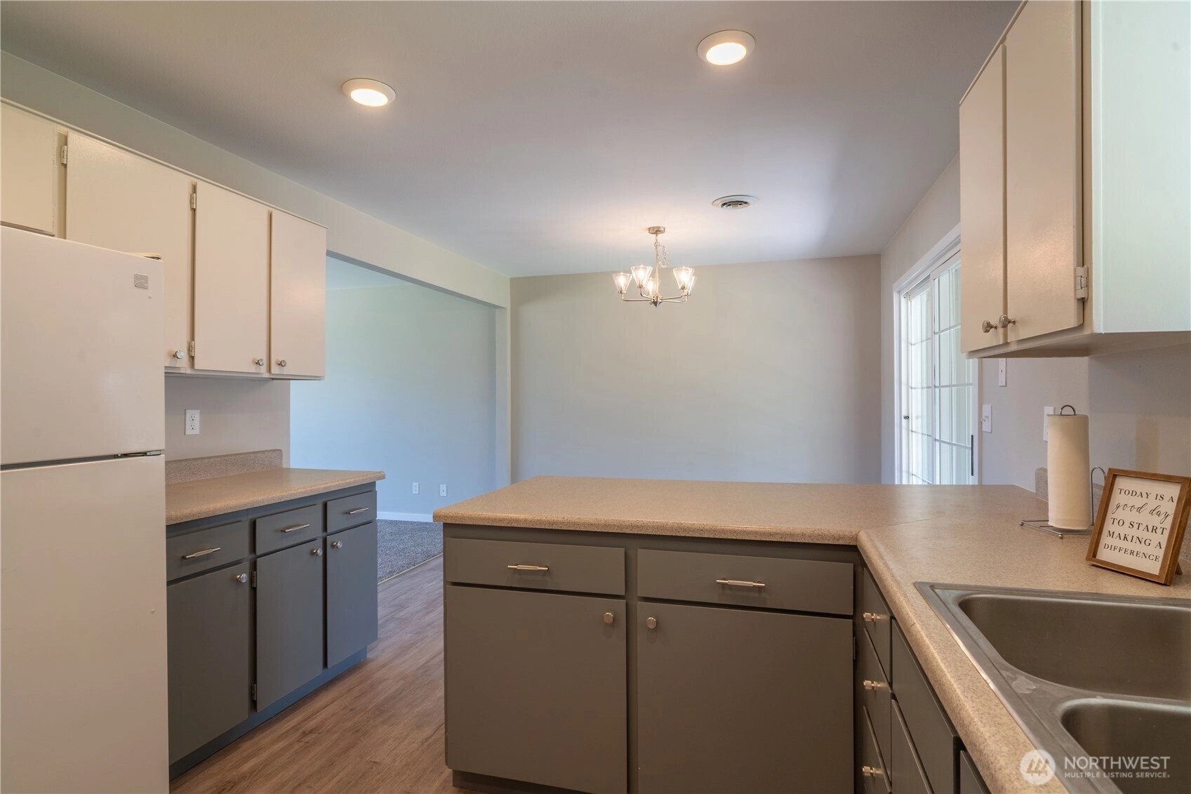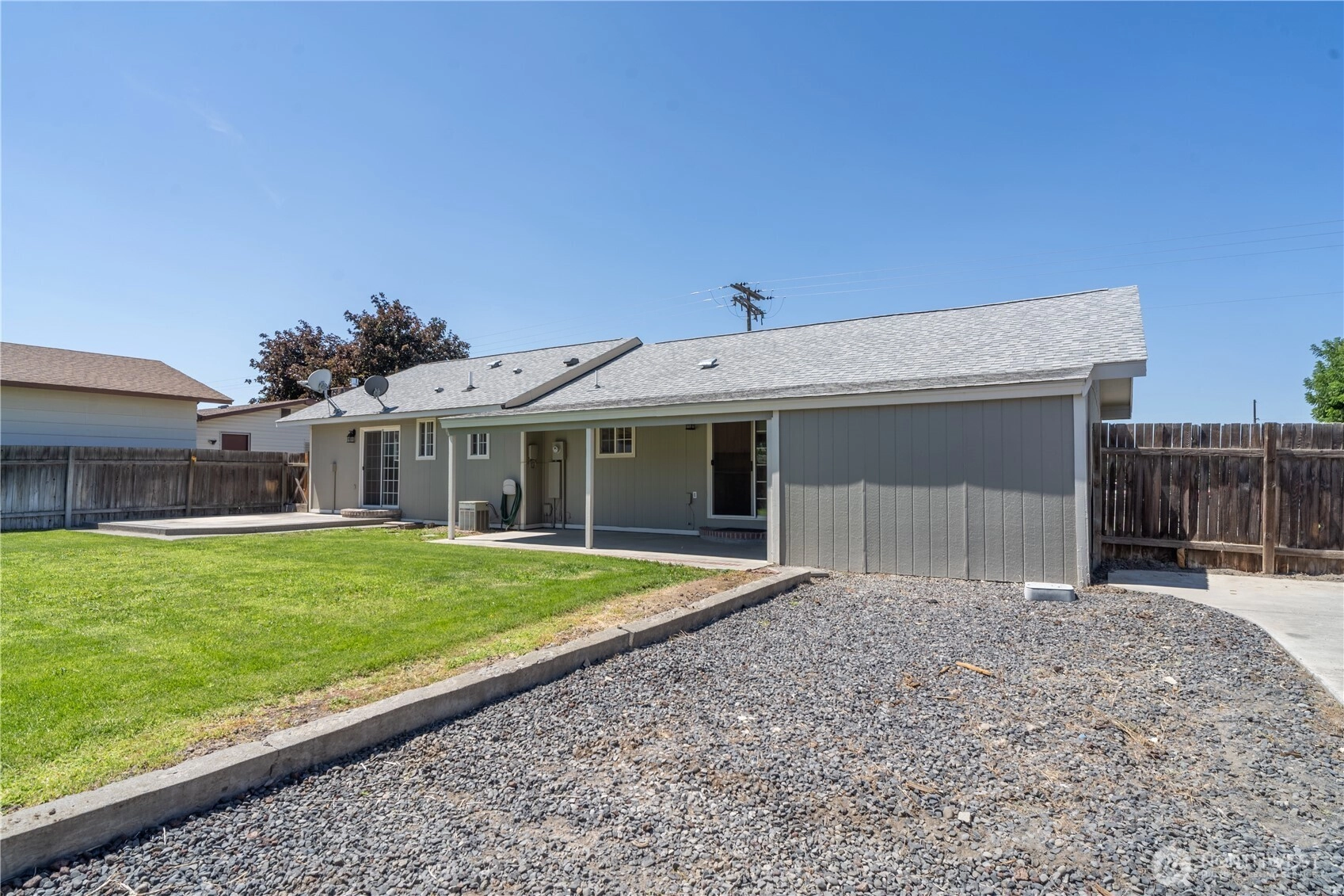Room with a View! Move-in Ready, 3-bed, 2-bath home with a view of Beasley Hill. Home has been recently updated with fresh interior and exterior paint, new flooring and bathroom updates. Open kitchen, with window looking into the backyard, includes a breakfast bar and all appliances. Primary suite includes a 3/4 bath and sliding glass door to back patio. Fenced backyard with room to play. Covered back patio (east facing) is the perfect setting for enjoyable outdoor summer evenings. Large driveway provides ample off street parking. Extra deep garage (32') provides parking and storage/work space. Automatic underground irrigation system. Washer dryer hookups. Electric forced heating and air conditioning. Quiet end of D St NE.